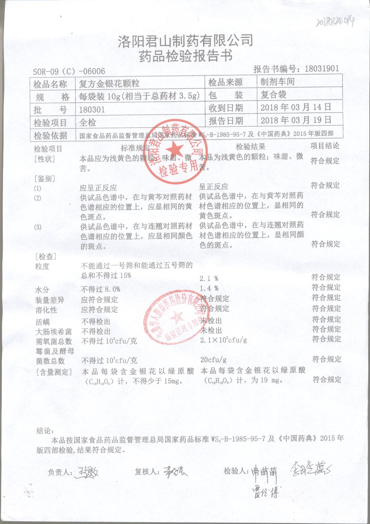 | 復(fù)方金銀花顆粒 | 10g | 180301 | 查看詳情 |