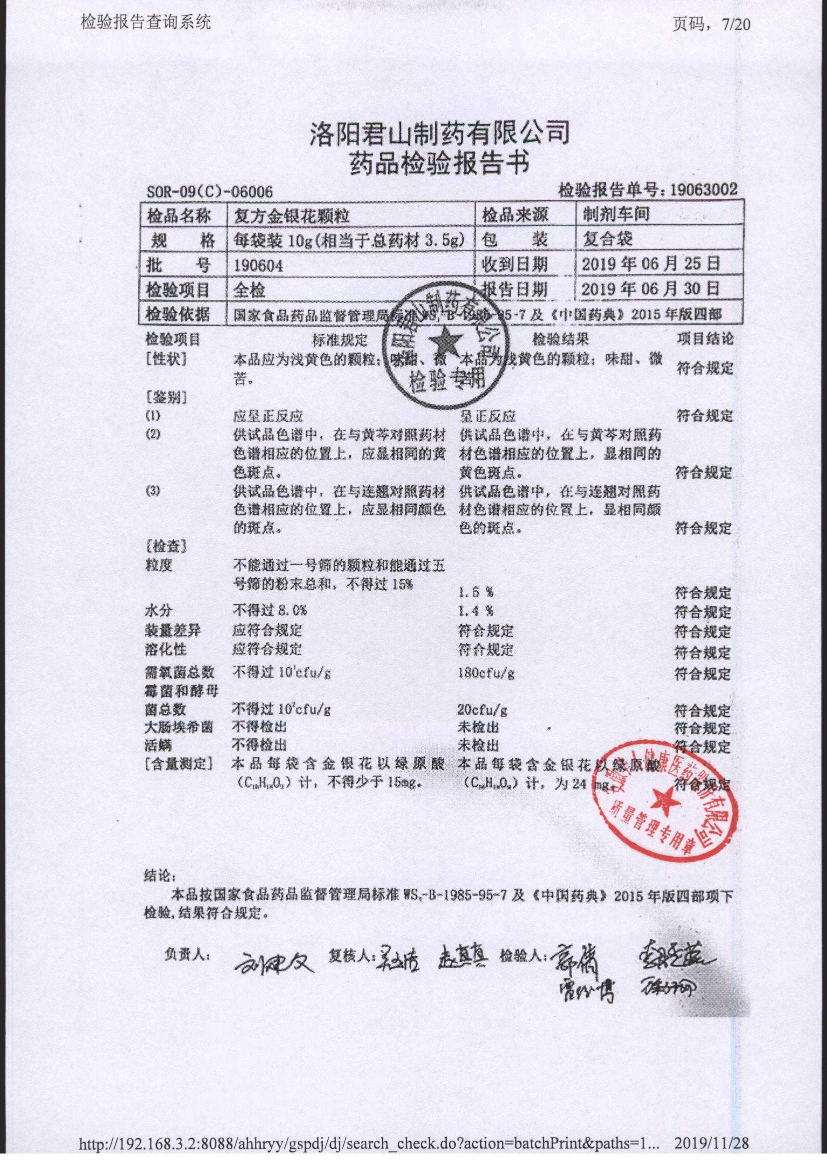 | 復(fù)方金銀花顆粒 | 10g | 190604 | 查看詳情 |