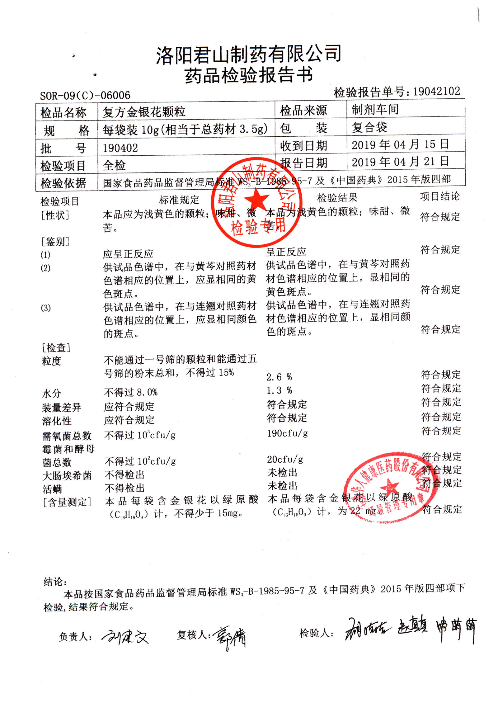 | 復(fù)方金銀花顆粒 | 10g | 190501 | 查看詳情 |