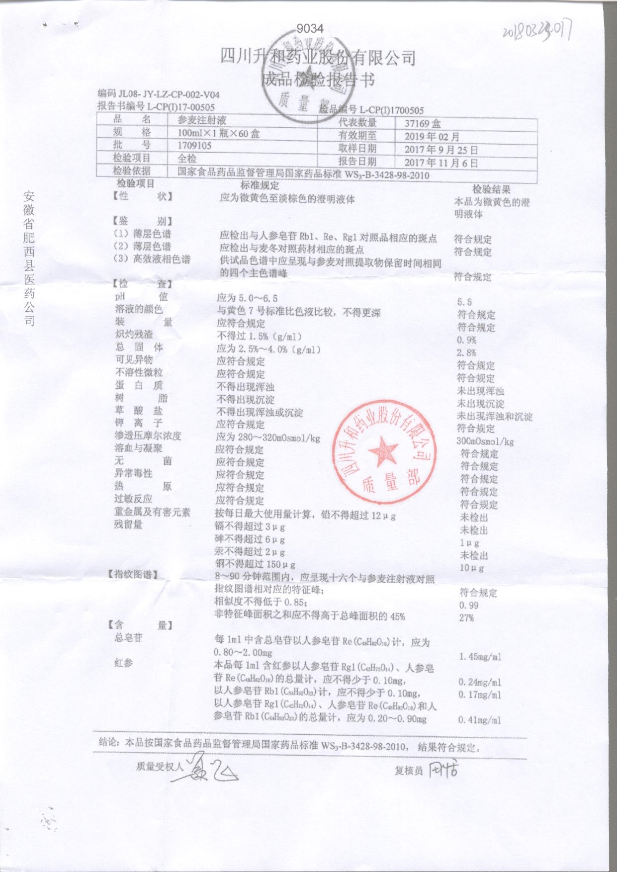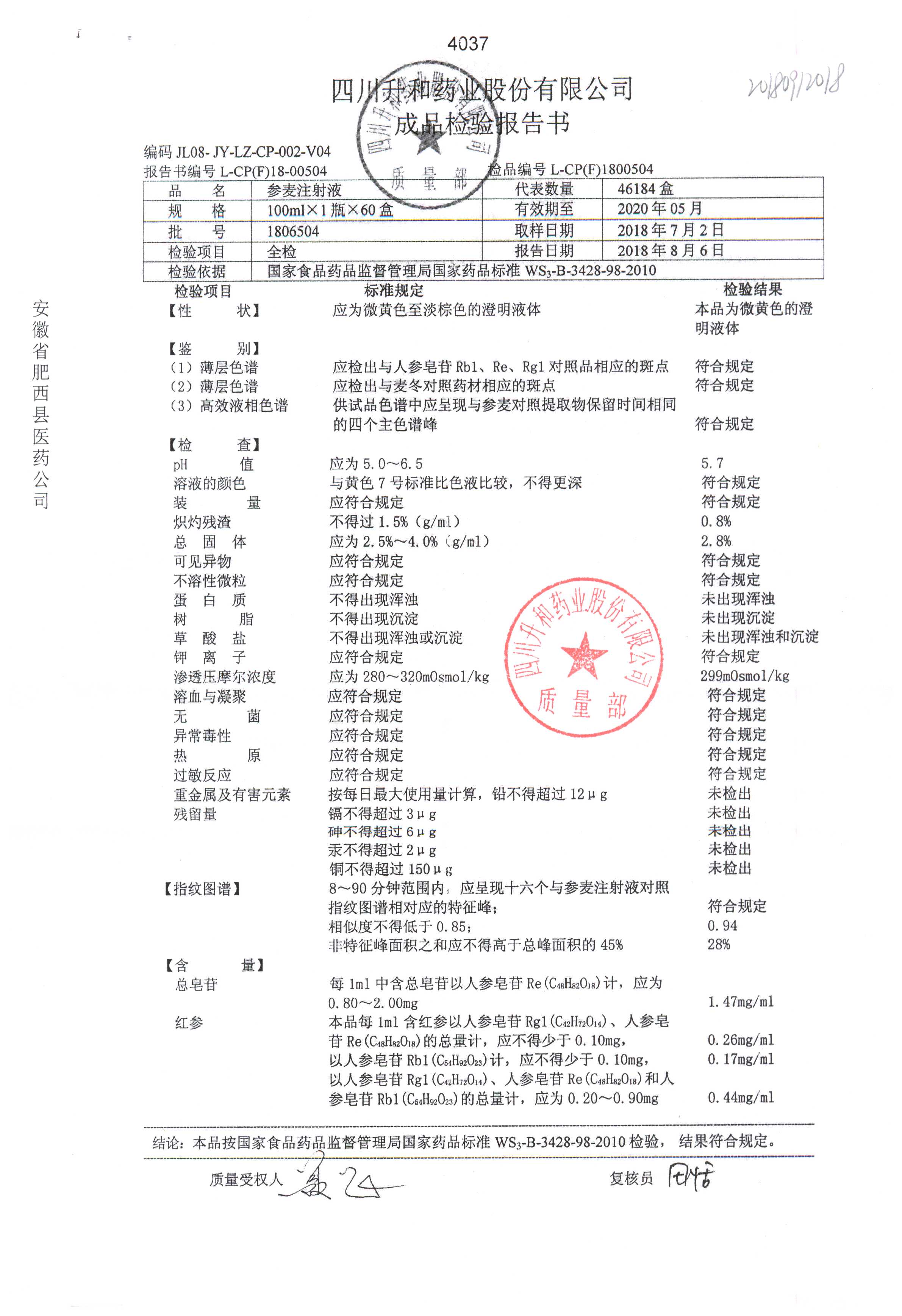 | 參麥注射液 | 100ml*1瓶 | 1803101 | 查看詳情 |