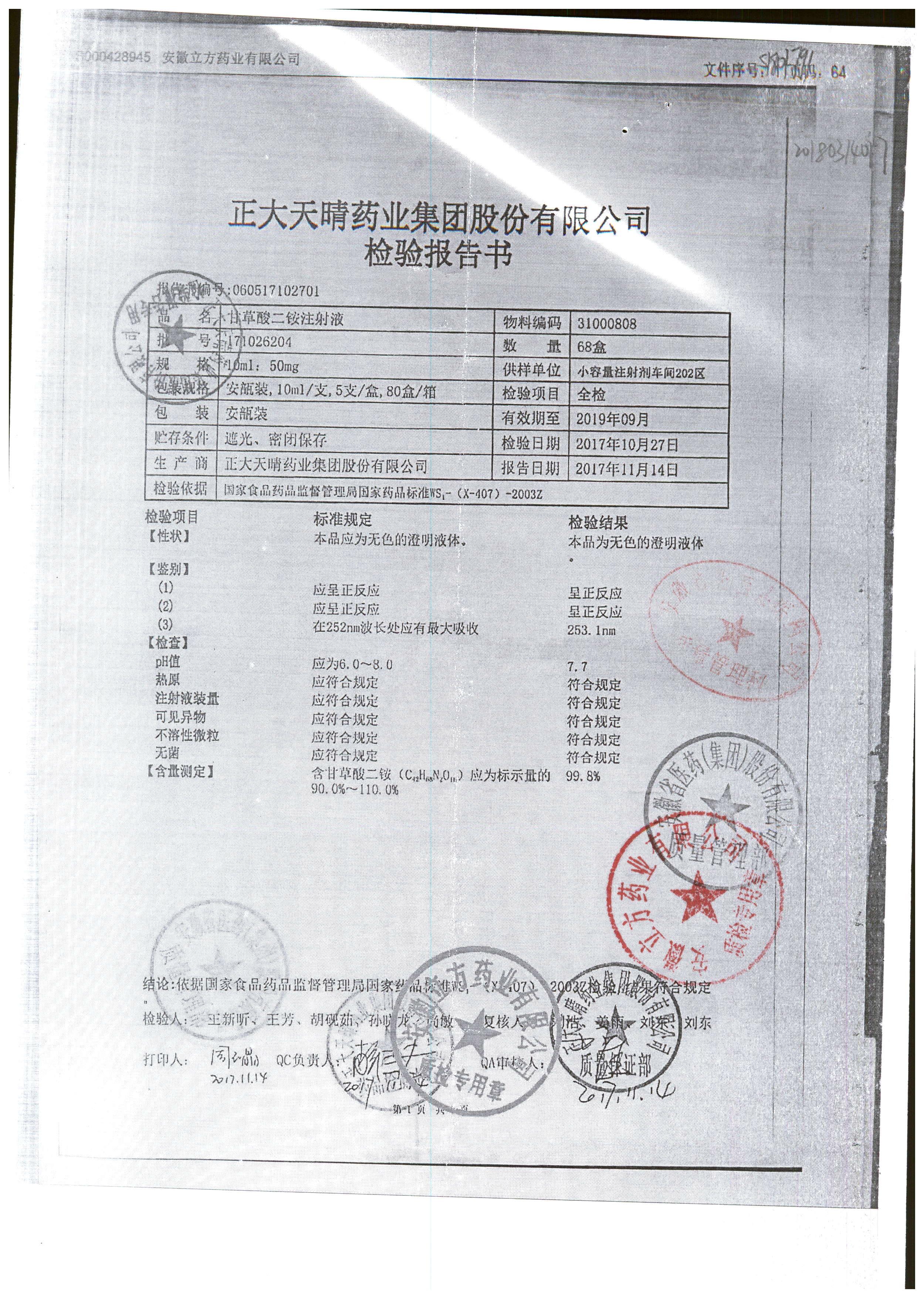 | 甘草酸二胺注射液 | 10ml:50mg | 171026204 | 查看詳情 |