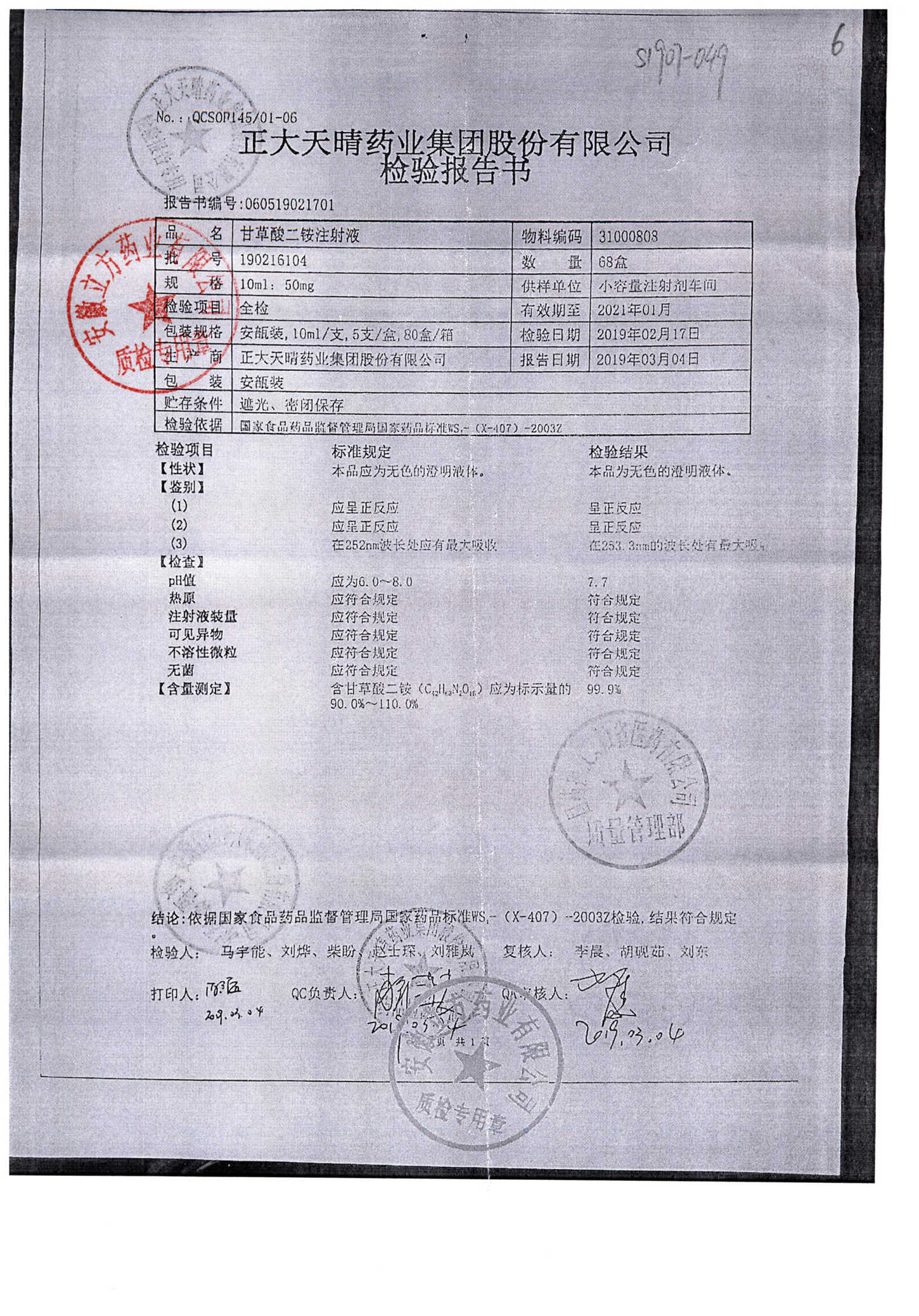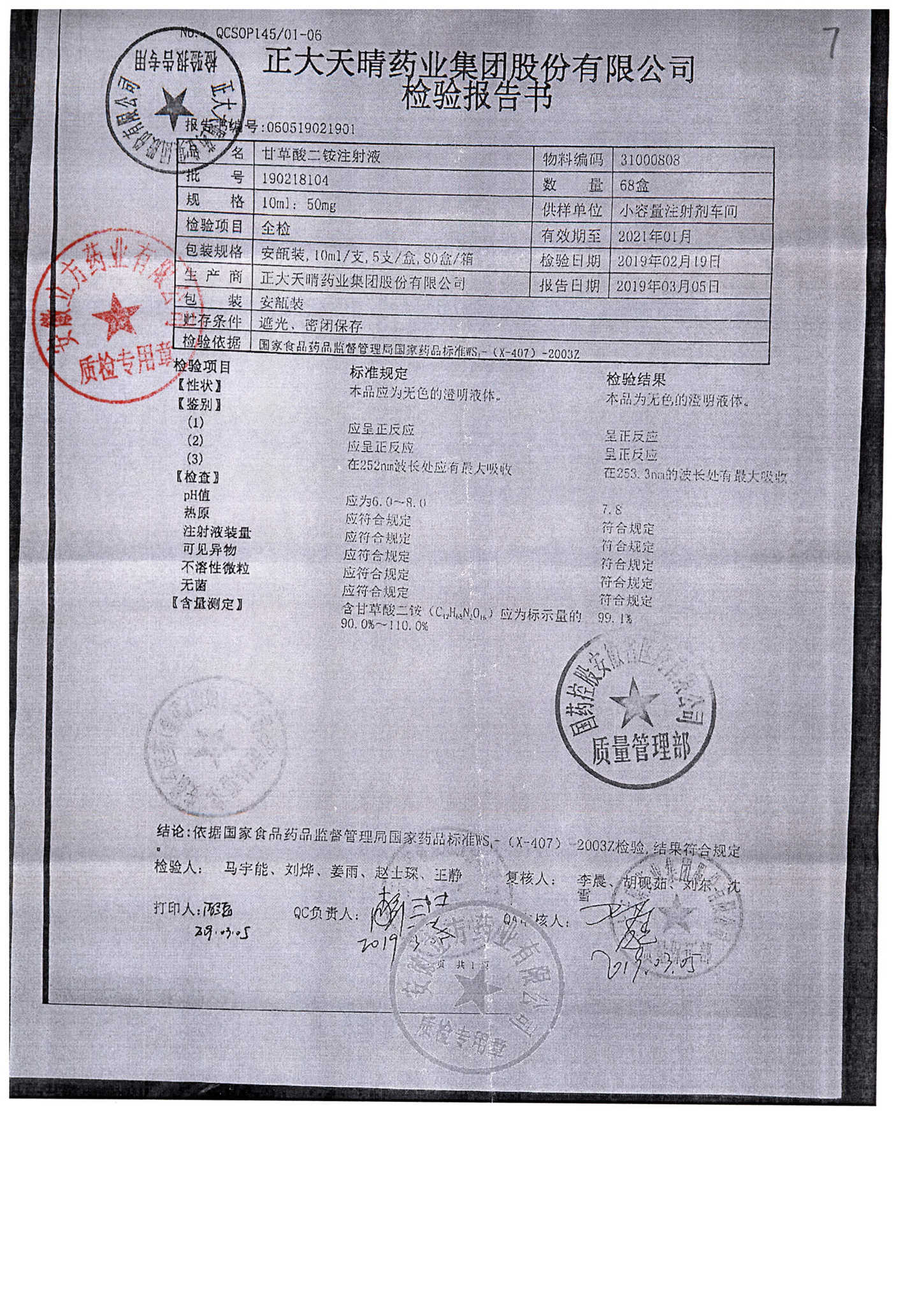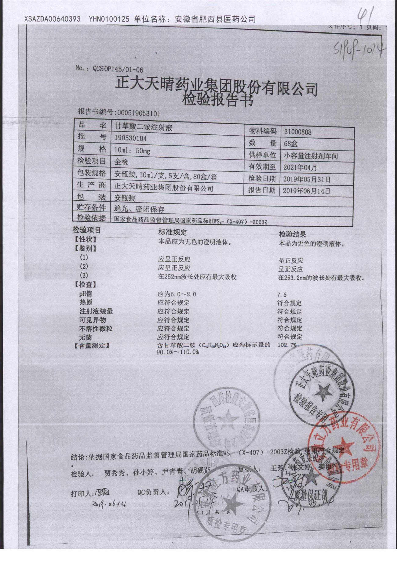 | 甘草酸二胺注射液 | 10ml:50mg | 190402204 | 查看詳情 |