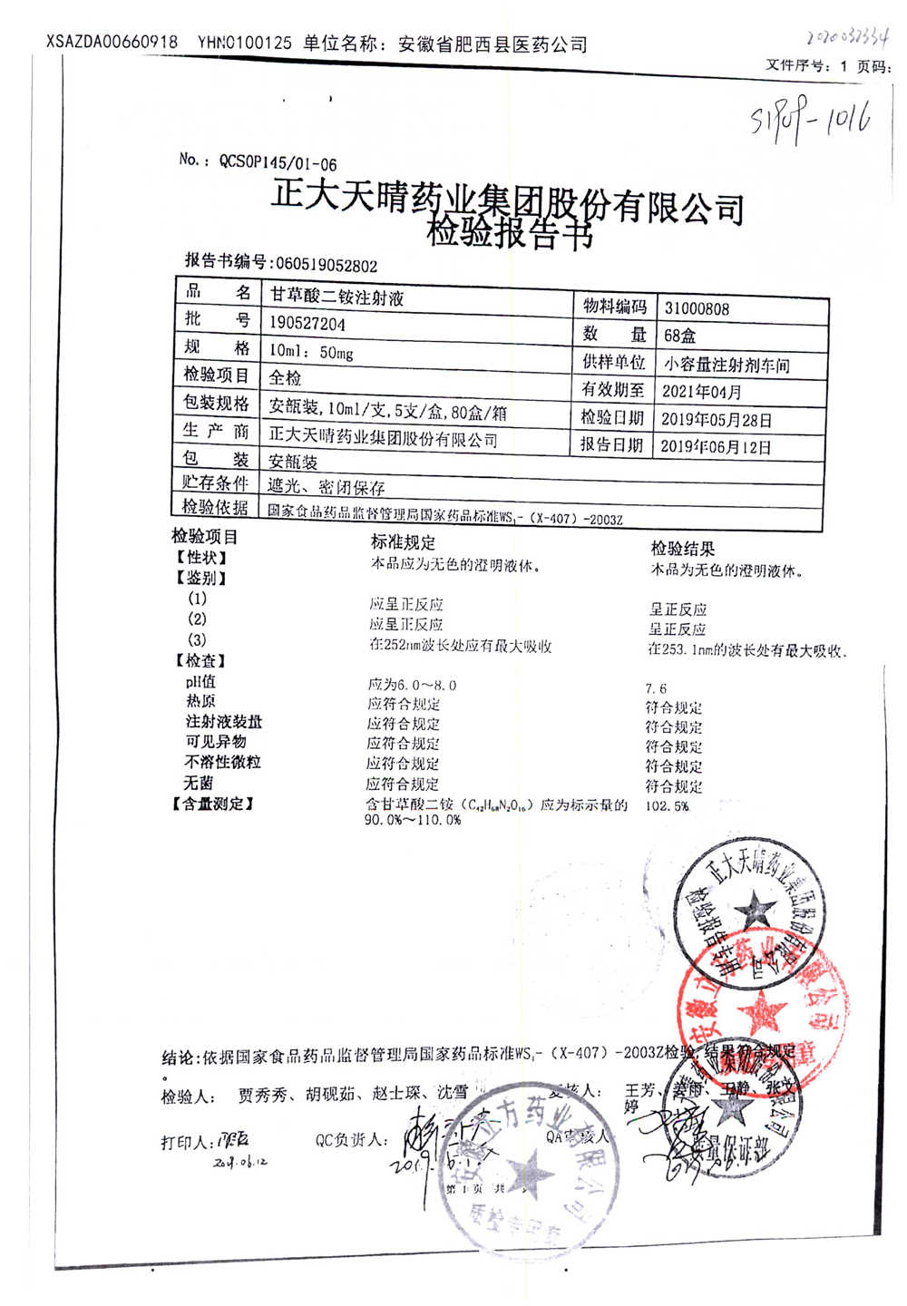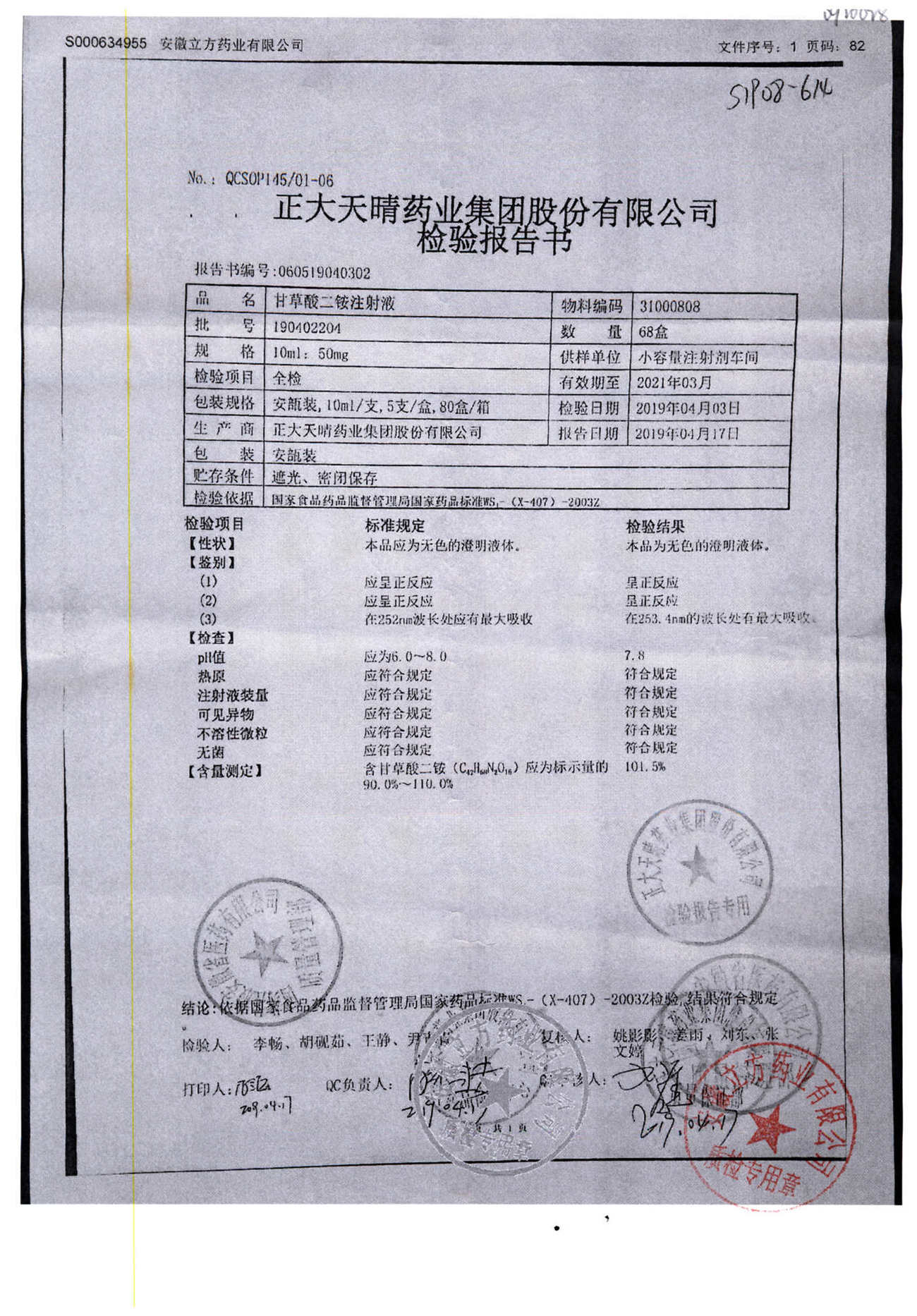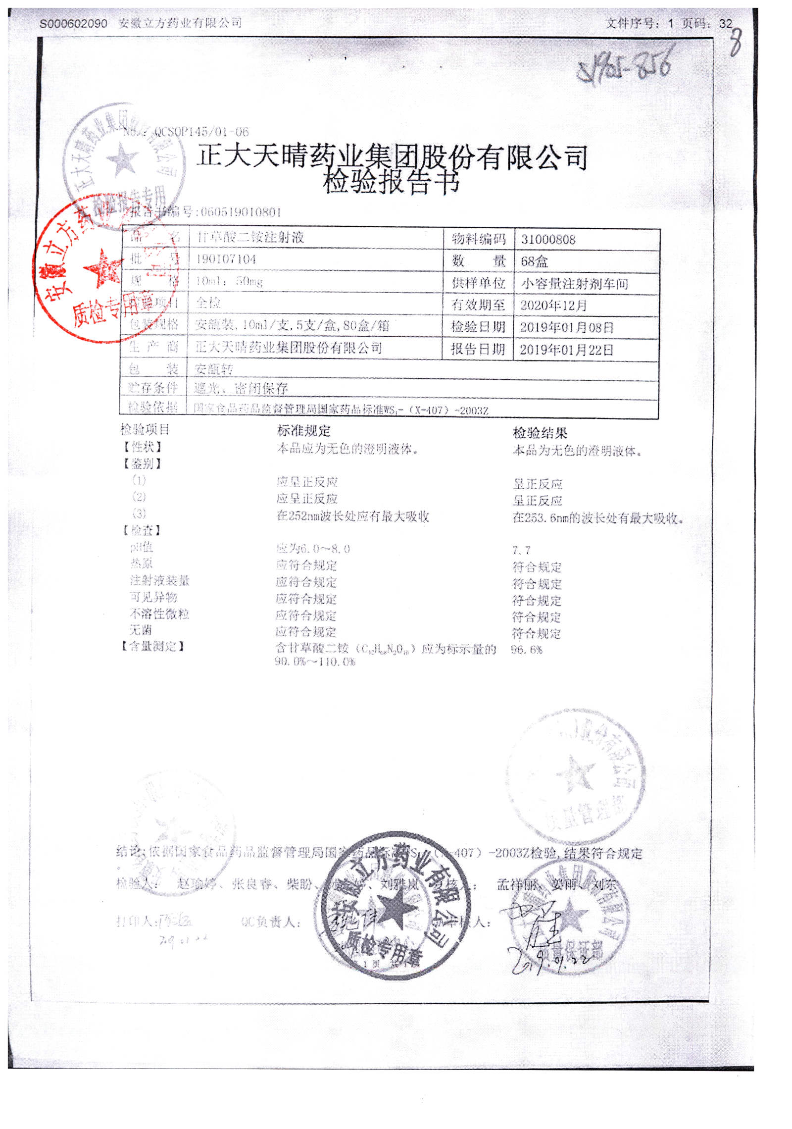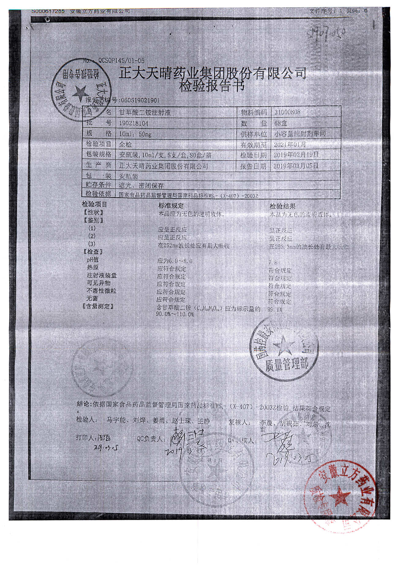 | 甘草酸二胺注射液 | 10ml:50mg | 190216104 | 查看詳情 |