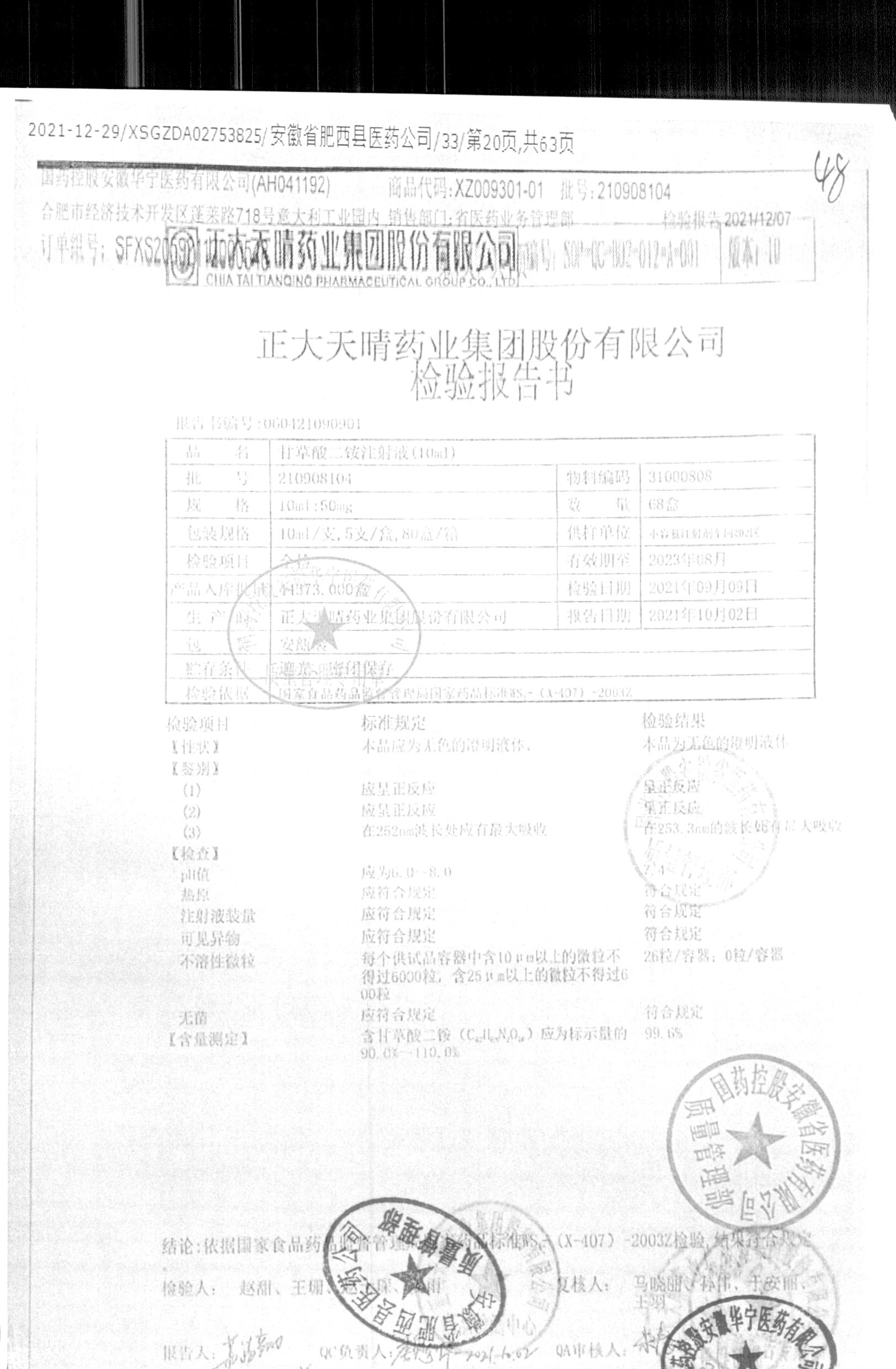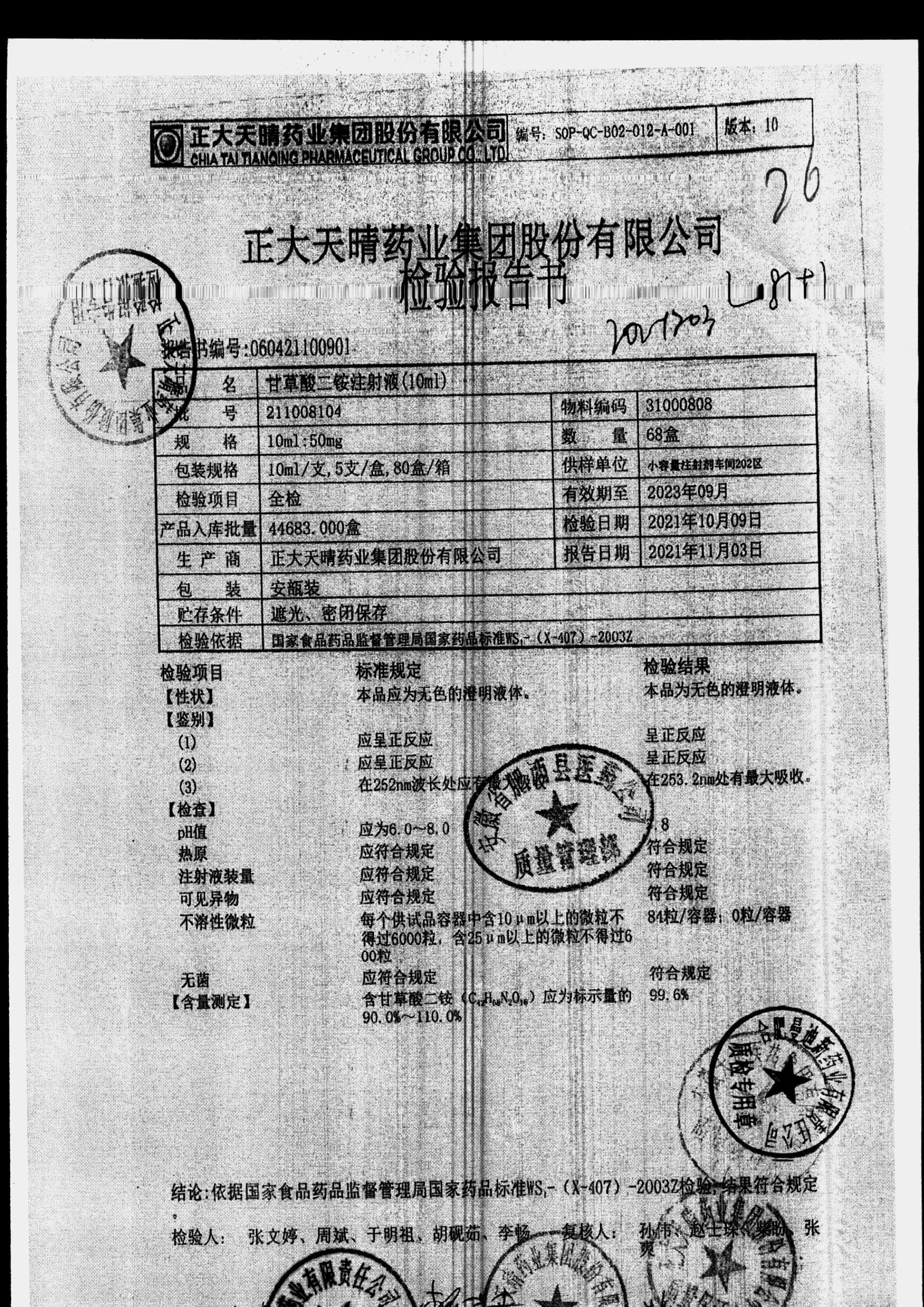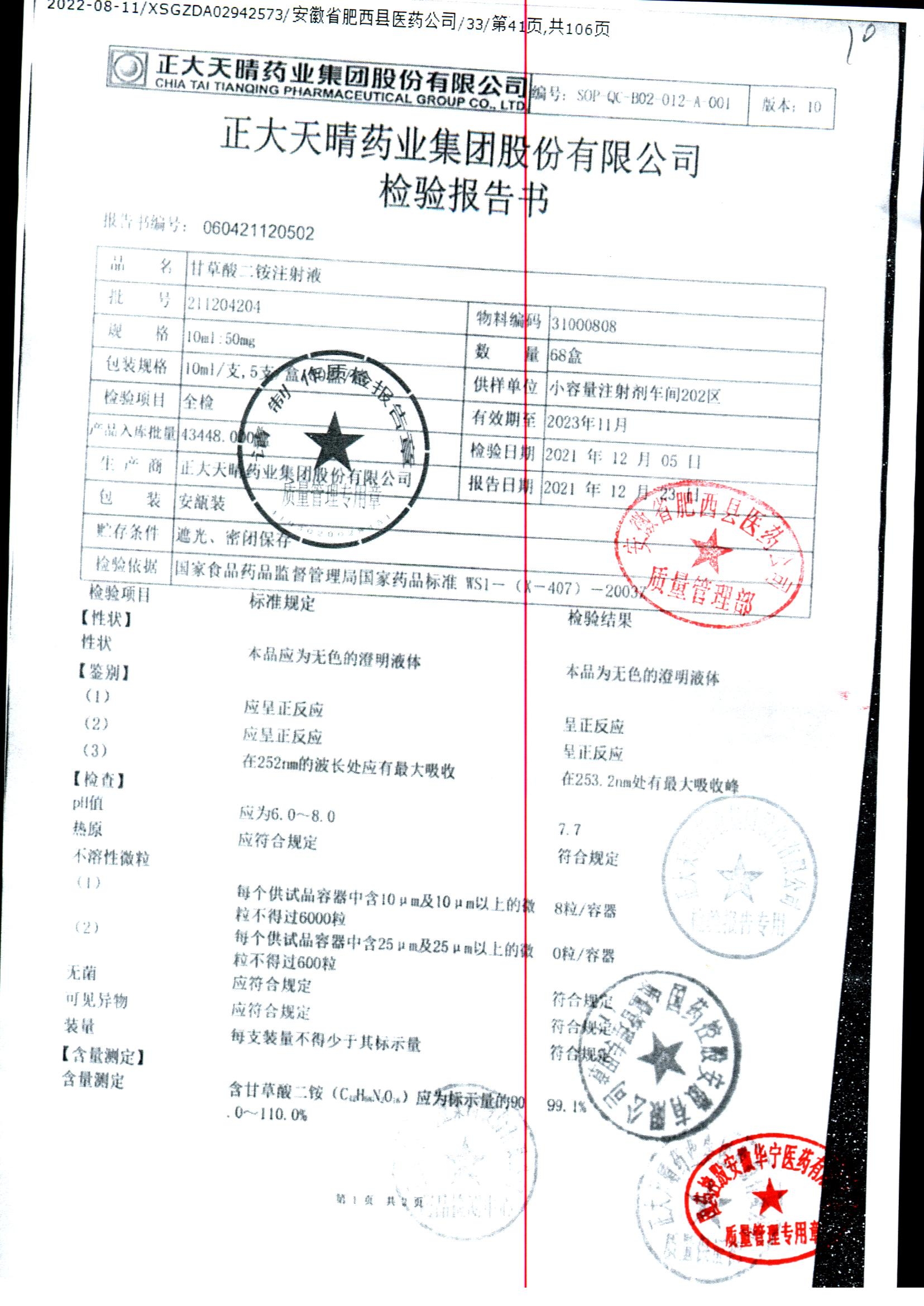 | 甘草酸二胺注射液 | 10ml:50mg | 211010204 | 查看詳情 |