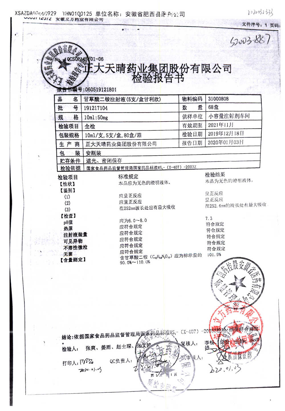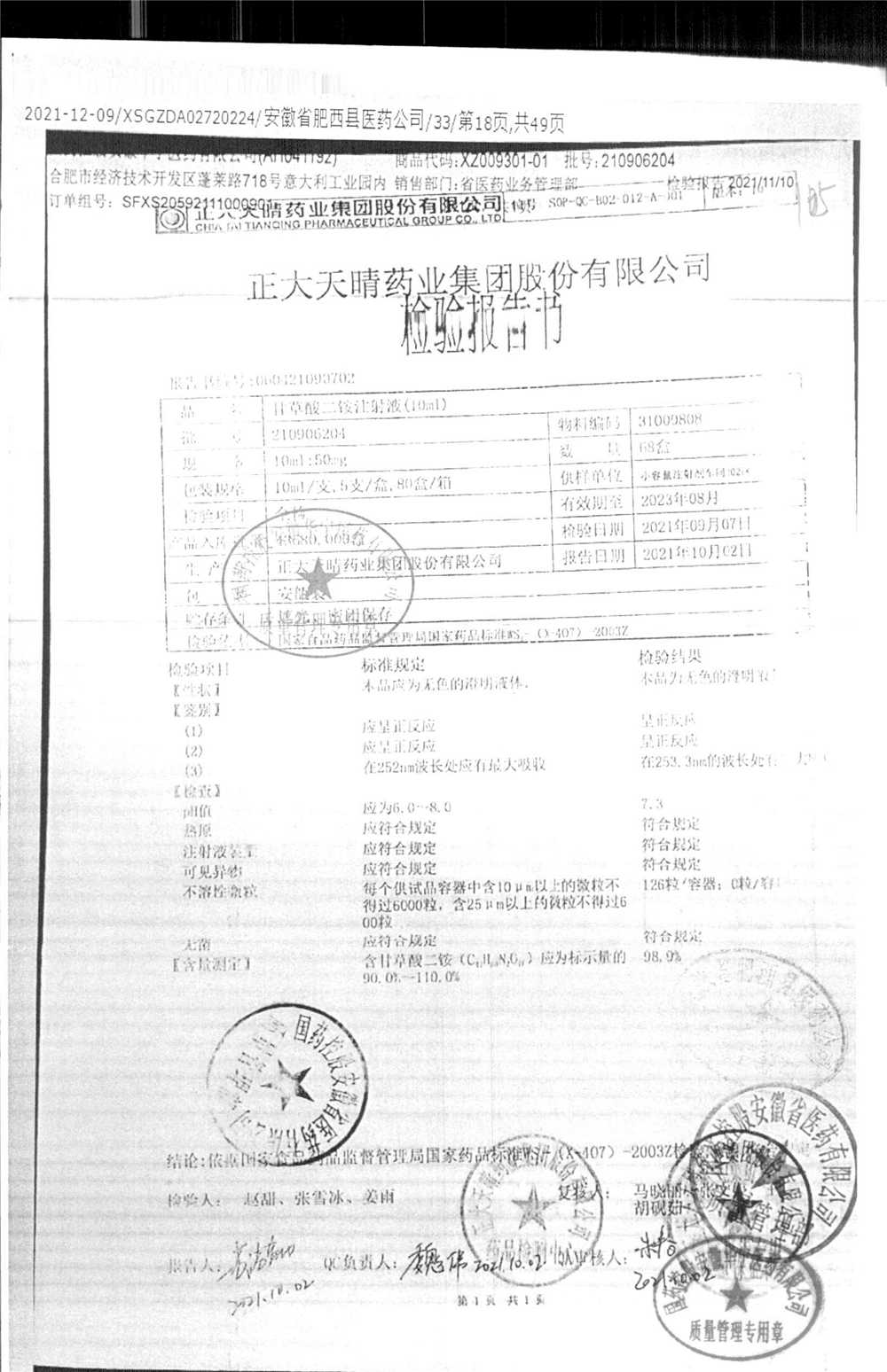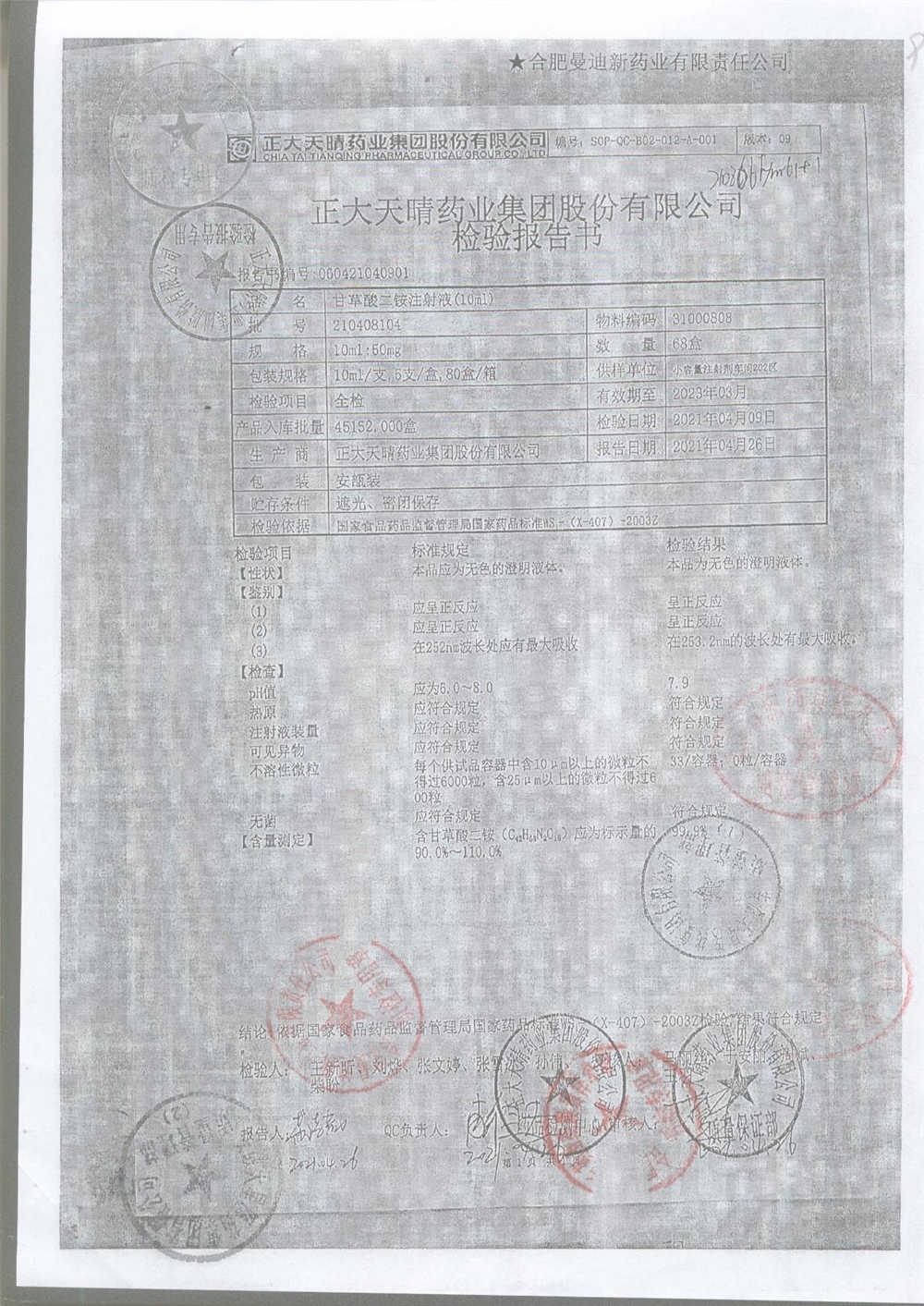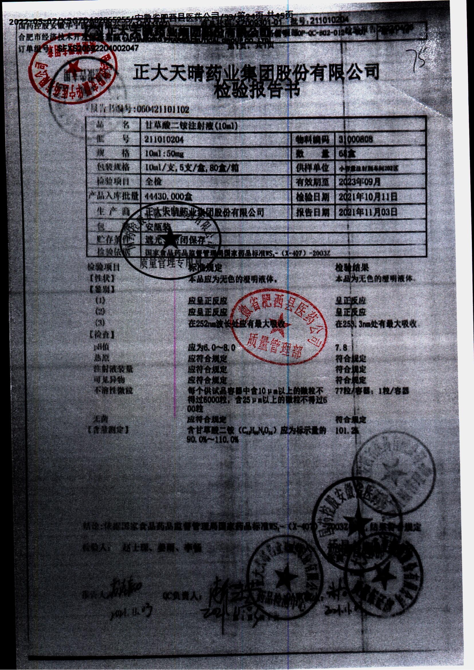 | 甘草酸二胺注射液 | 10ml:50mg | 211010204 | 查看詳情 |