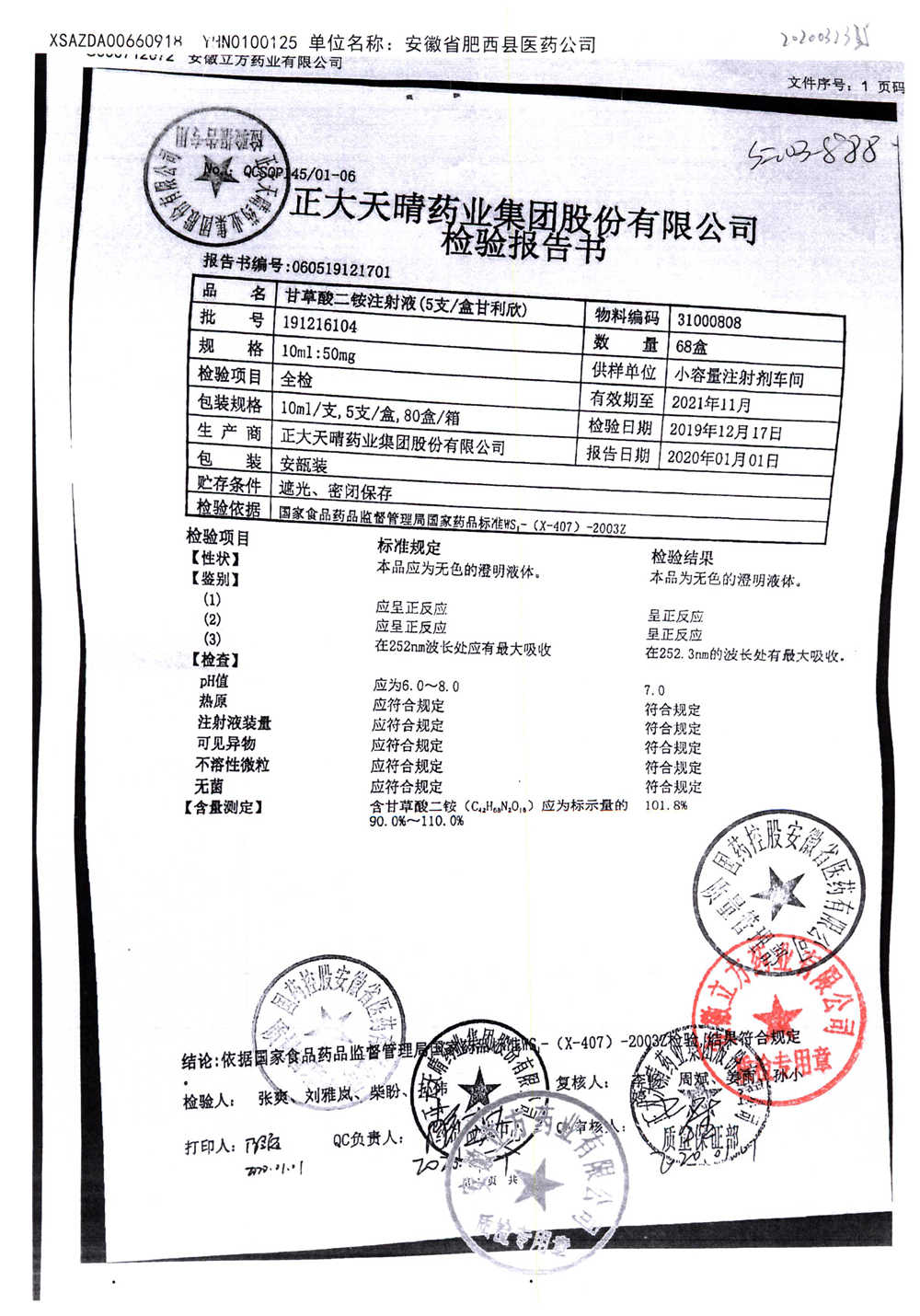 | 甘草酸二胺注射液 | 10ml:50mg | 191216104 | 查看詳情 |