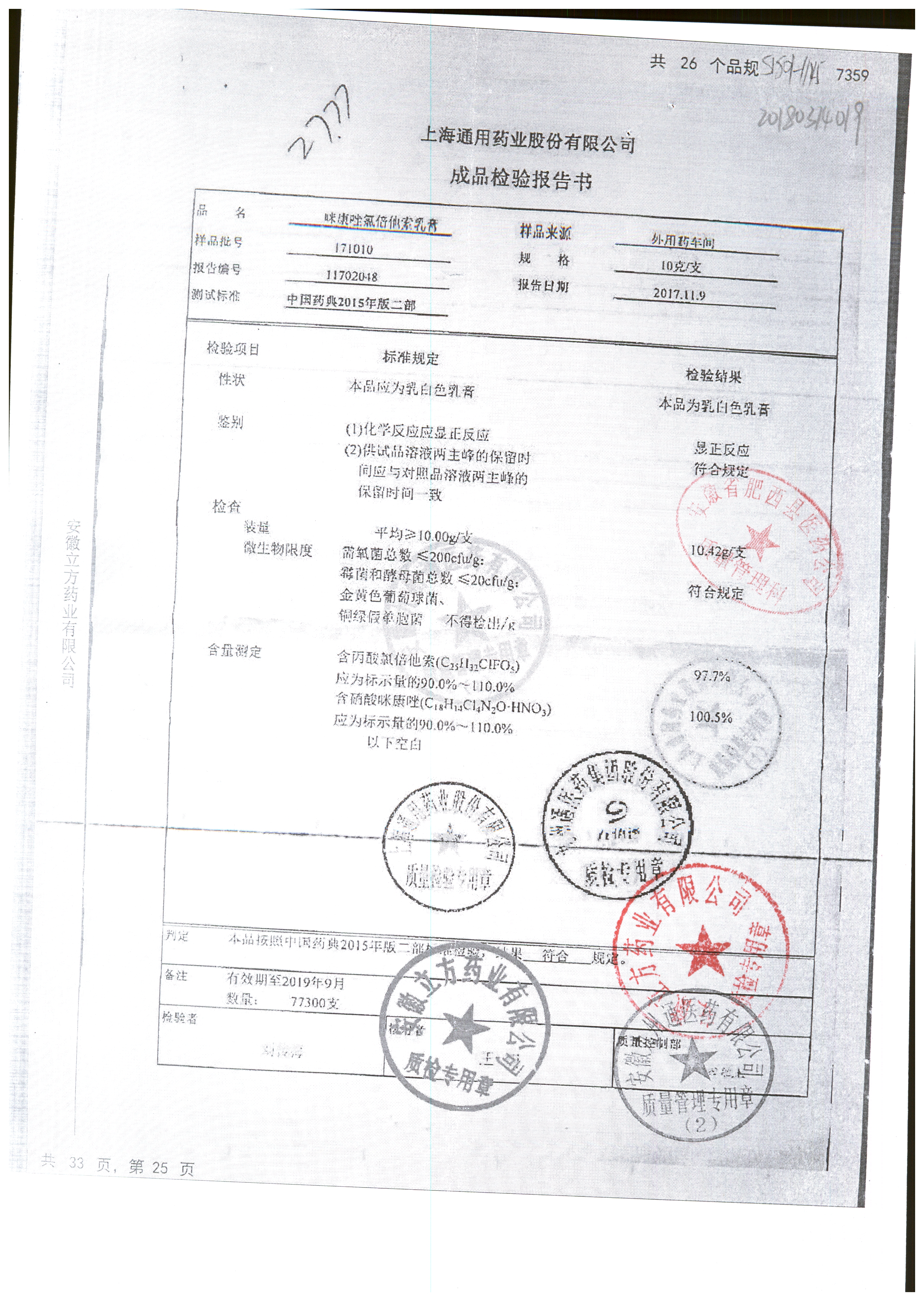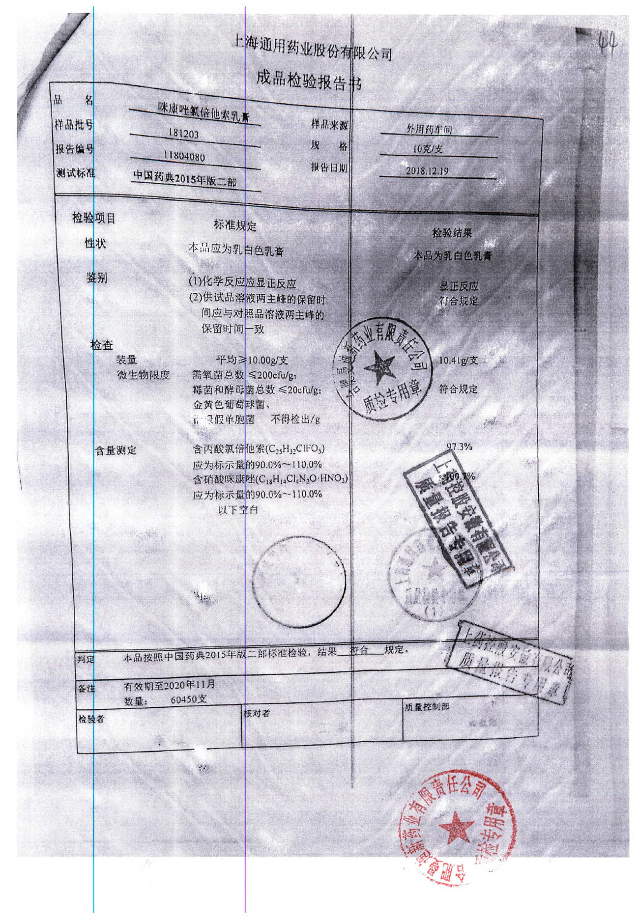 | 咪康唑氯倍他索乳膏 | 10g | 180605 | 查看詳情 |