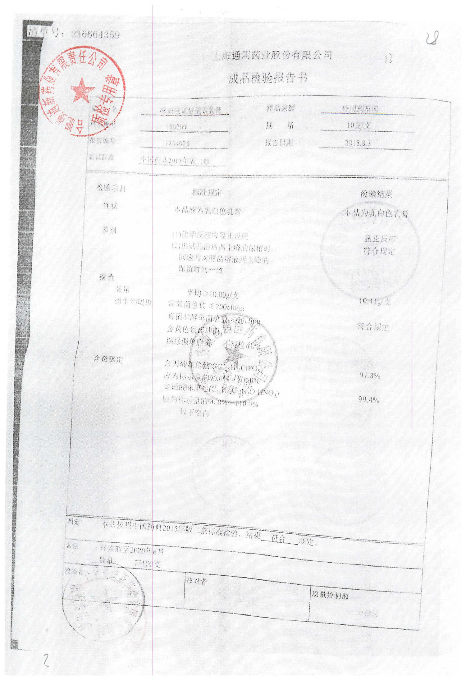 | 名稱 | 規(guī)格 | 批號(hào) | 藥檢報(bào)告 |