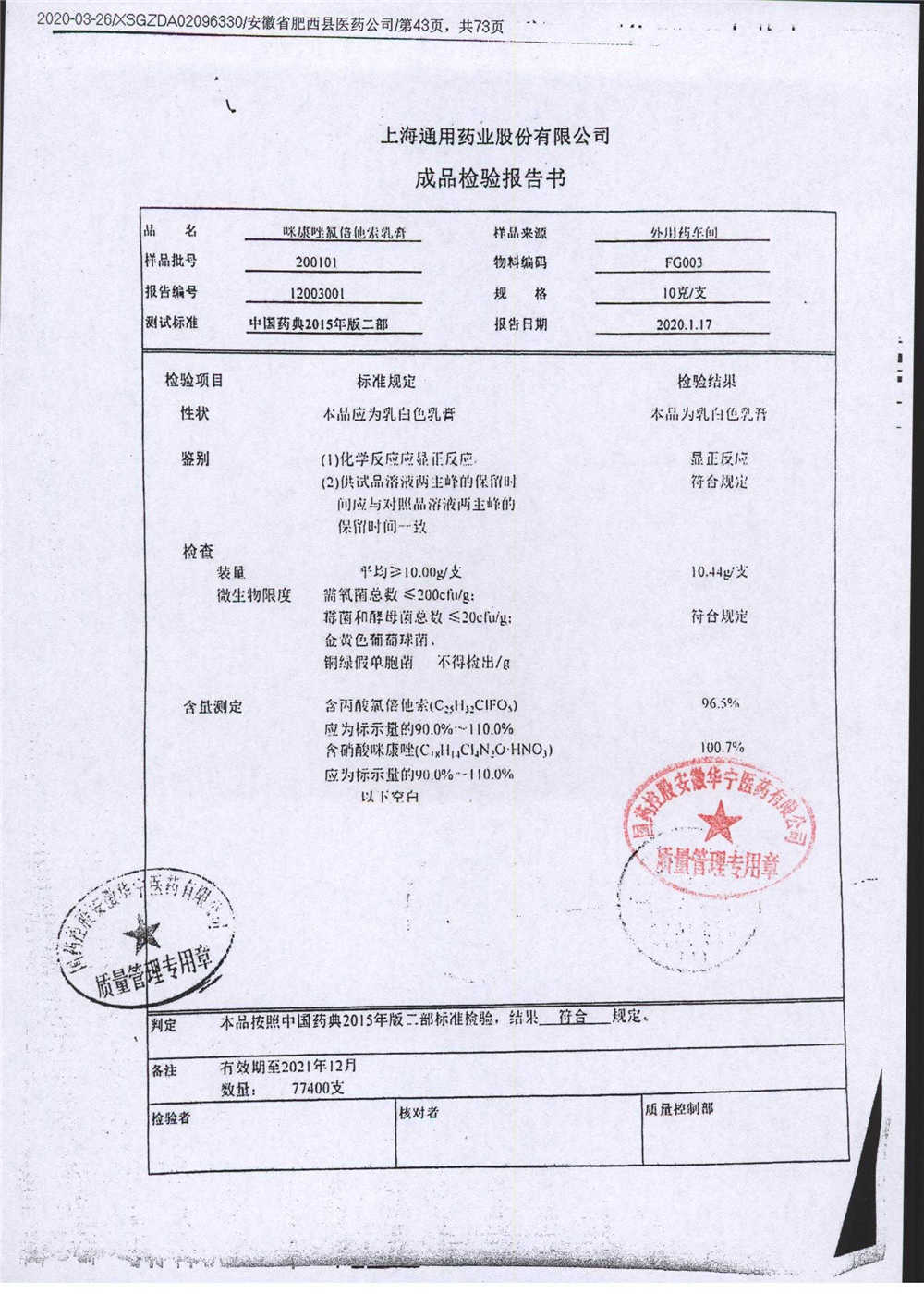 | 咪康唑氯倍他索乳膏 | 10g | 200101 | 查看詳情 |