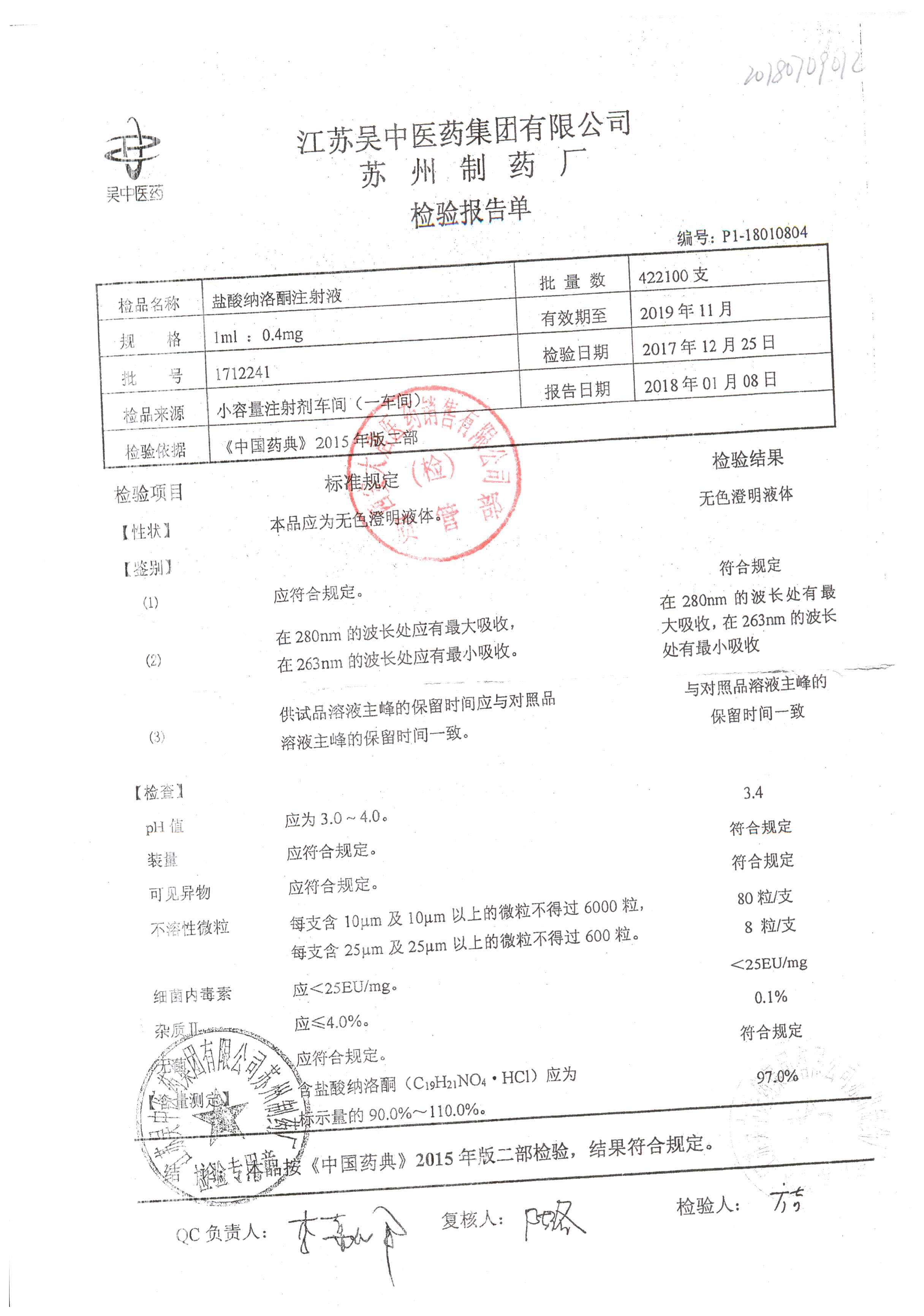 鹽酸納洛酮注射液 1ml:0.4mg 1712241 查看詳情