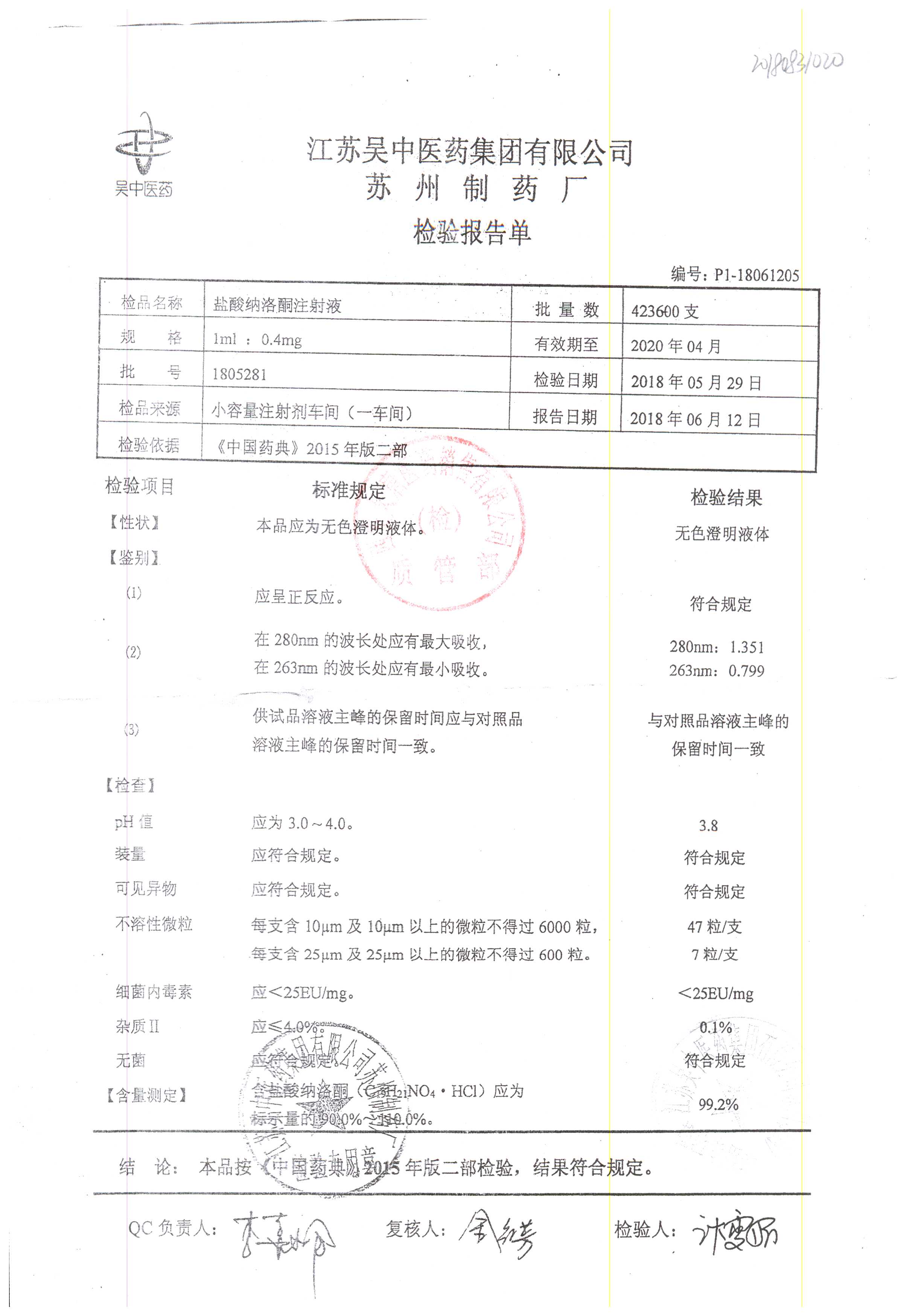 鹽酸納洛酮注射液 1ml:0.4mg 1805281 查看詳情