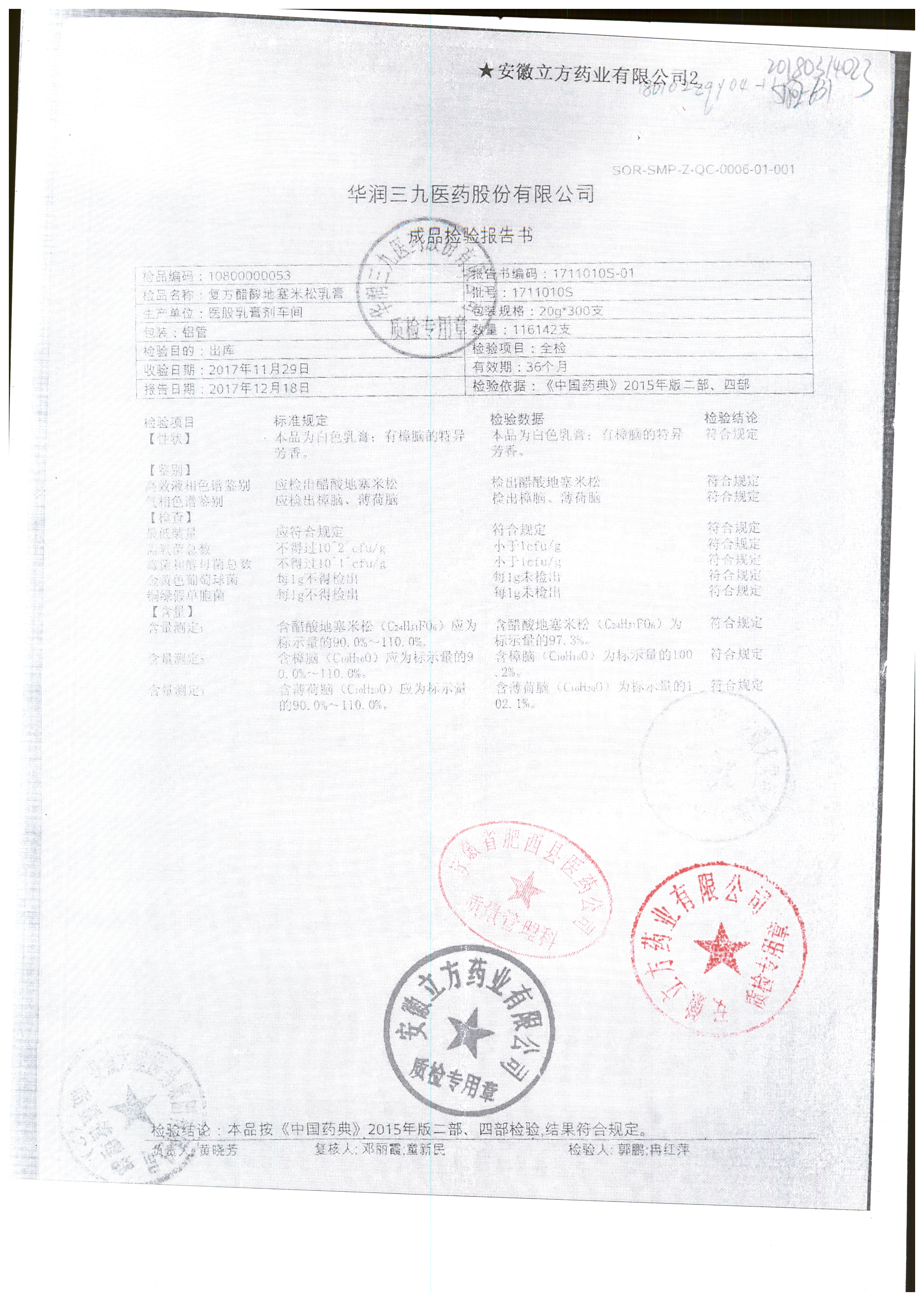 | 復(fù)方醋酸地塞米松乳膏 | 20g | 1804014S | 查看詳情 |