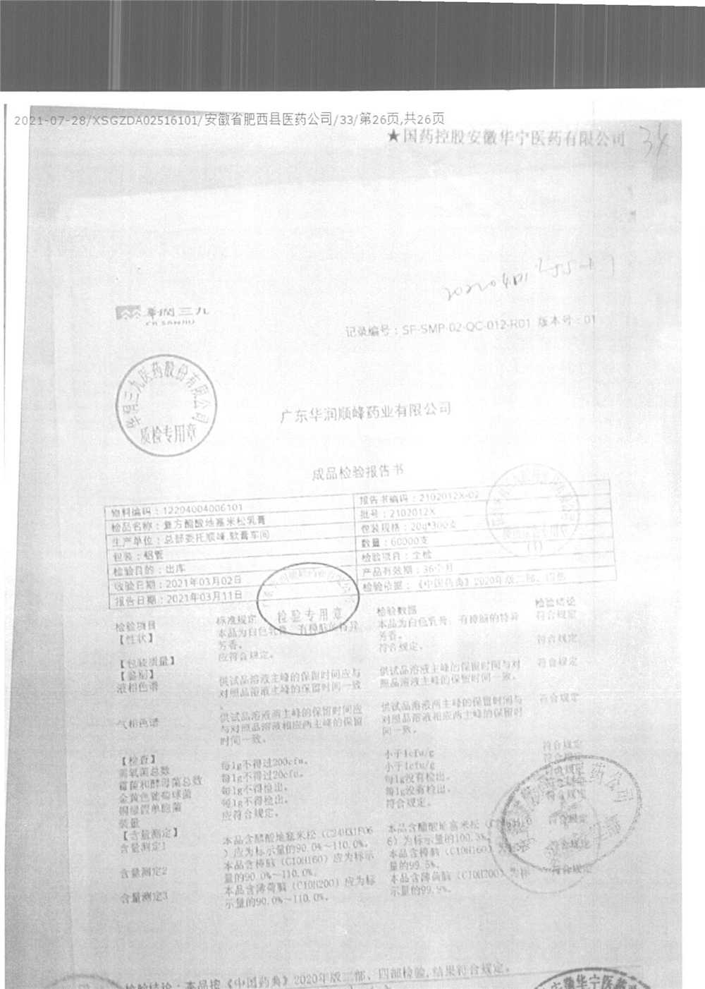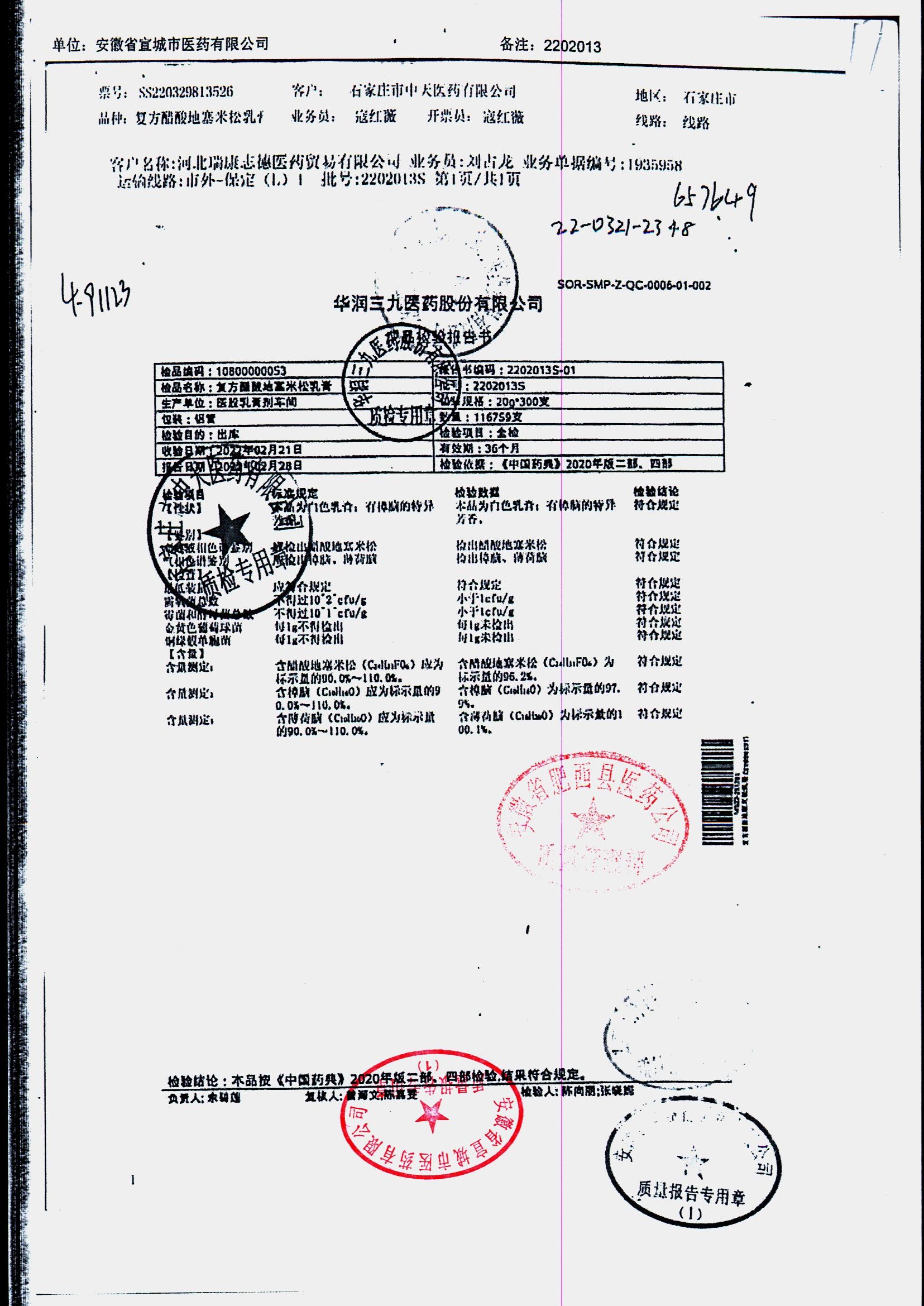| 名稱 | 規(guī)格 | 批號 | 藥檢報告 |