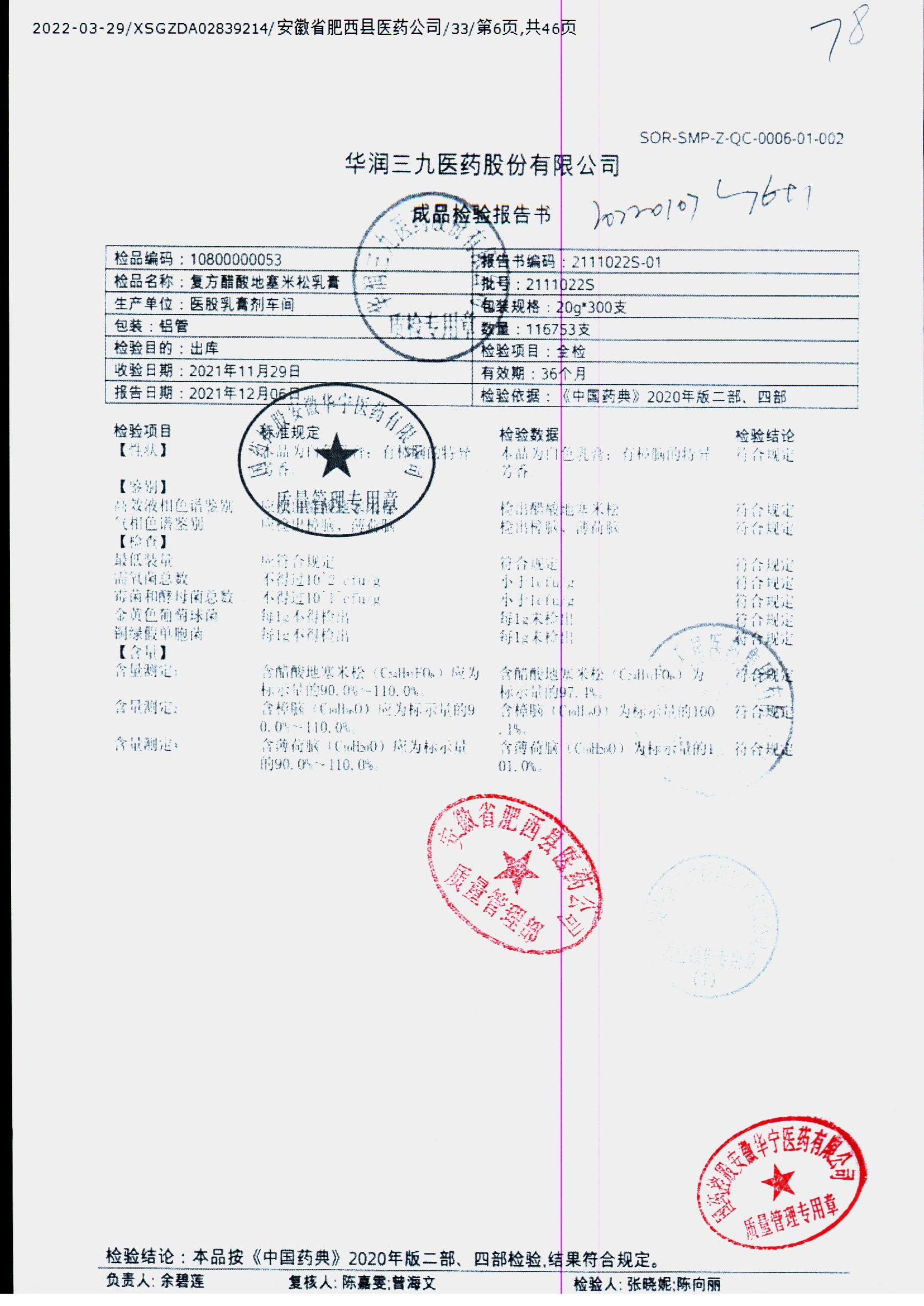 | 復(fù)方醋酸地塞米松乳膏 | 20g | 21110225-01 | 查看詳情 |