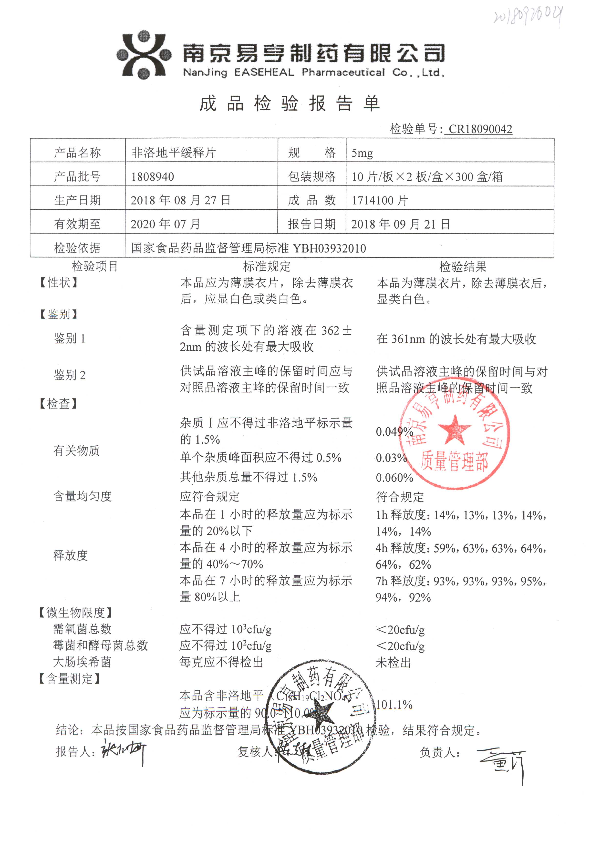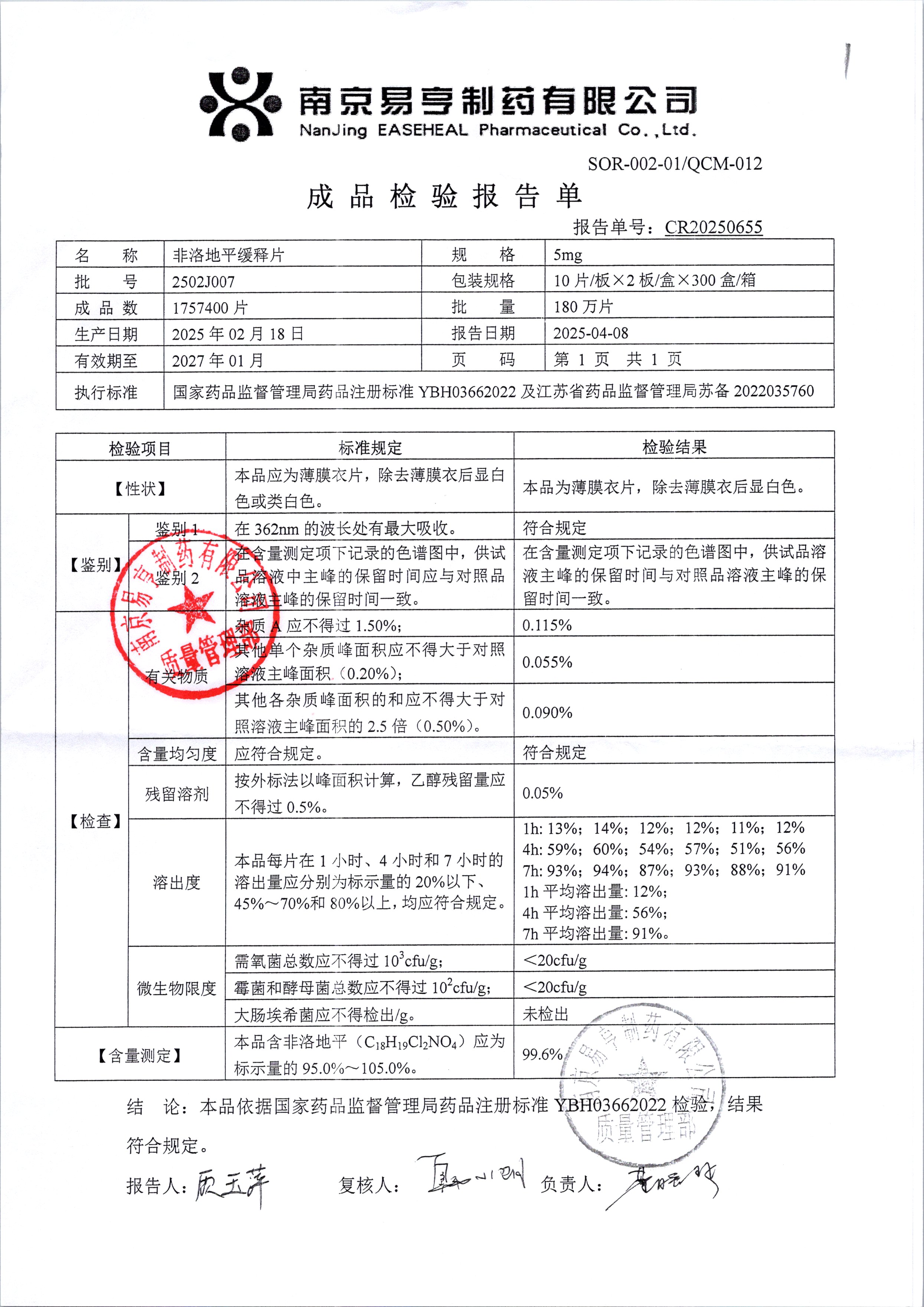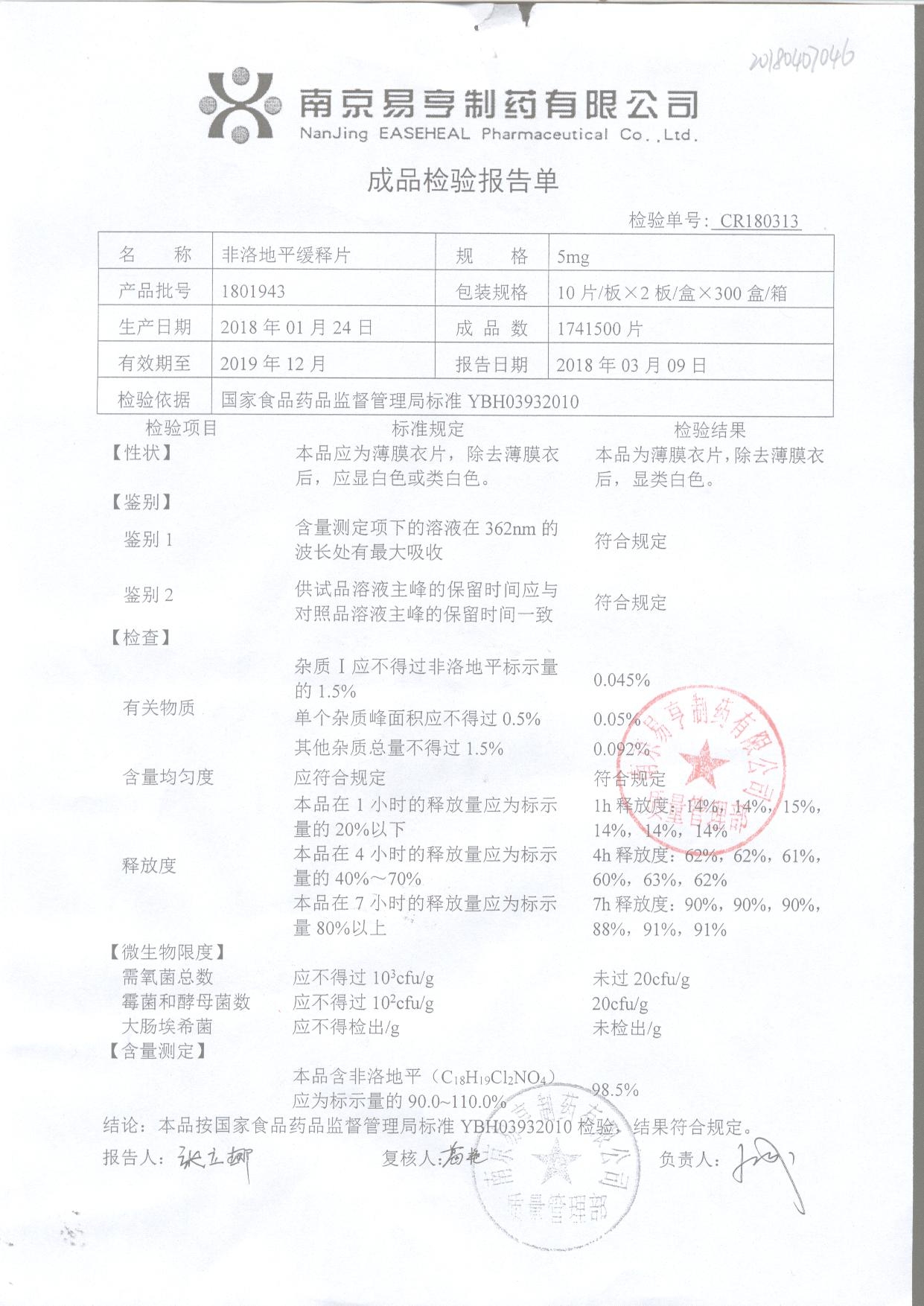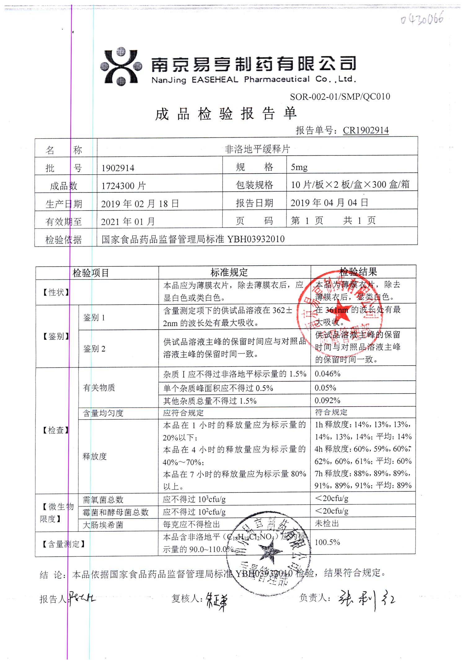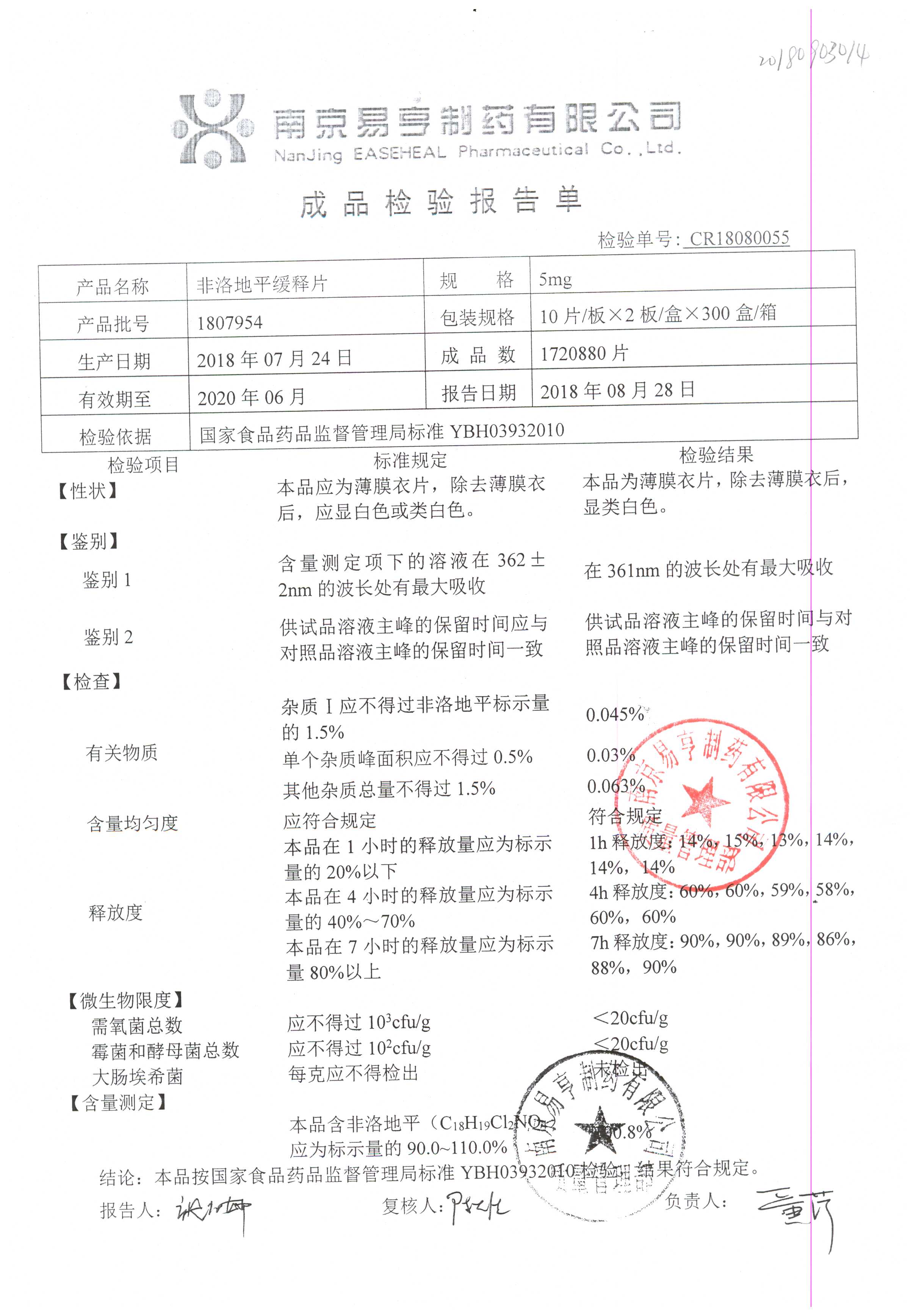 | 非洛地平緩釋片 | 5mg*20s | 2404J011 | 查看詳情 |