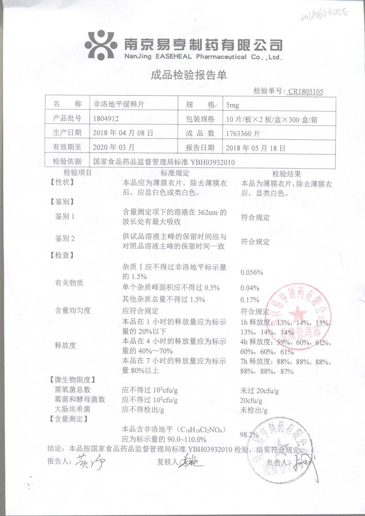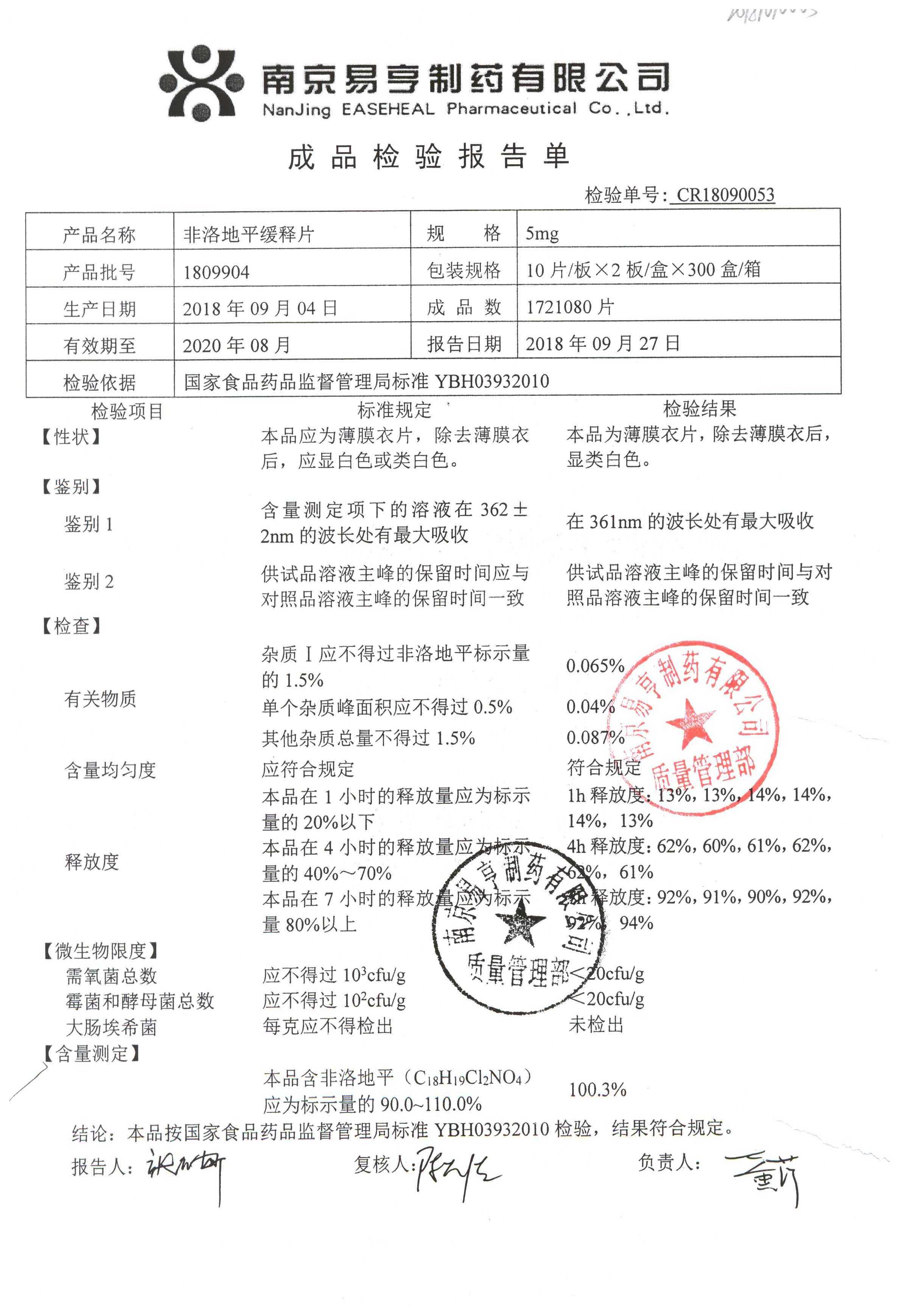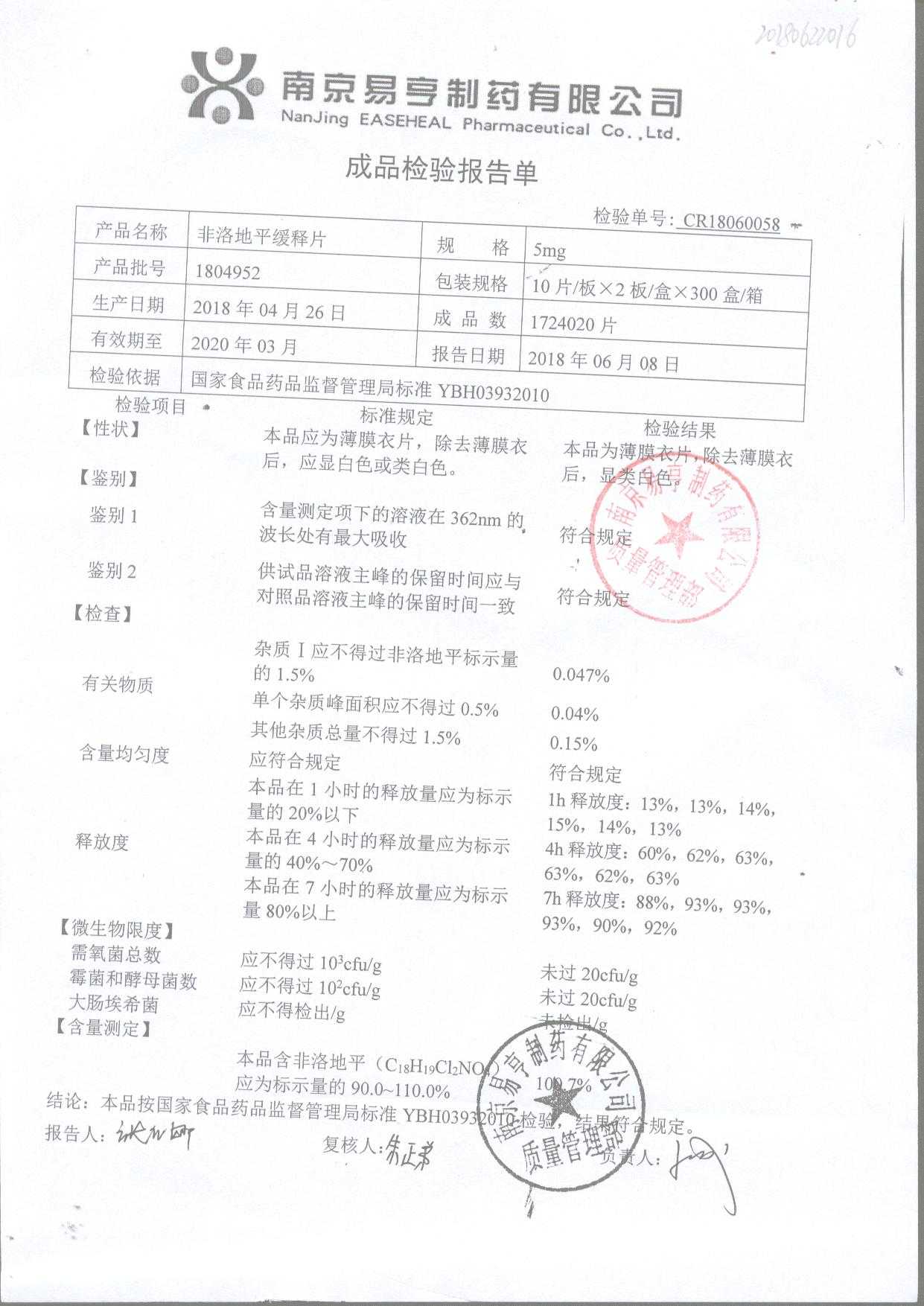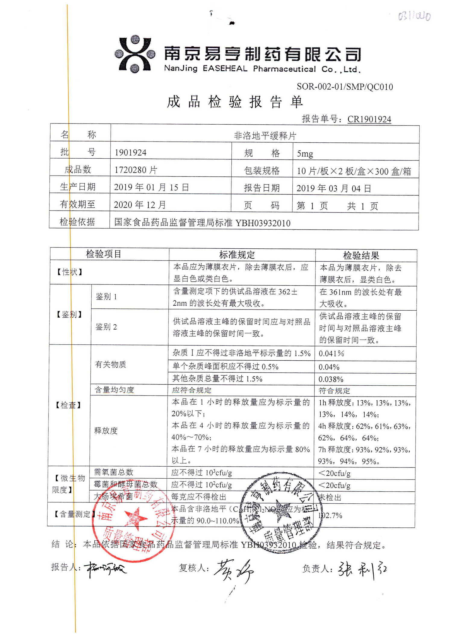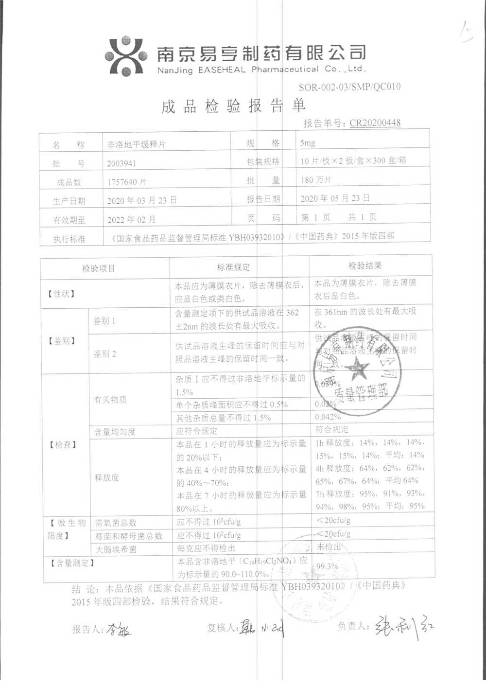 | 非洛地平緩釋片 | 5mg*20s | 2404J011 | 查看詳情 |