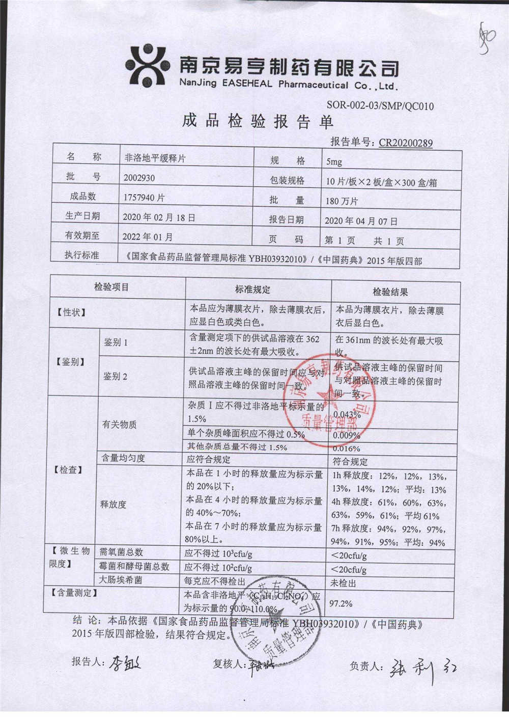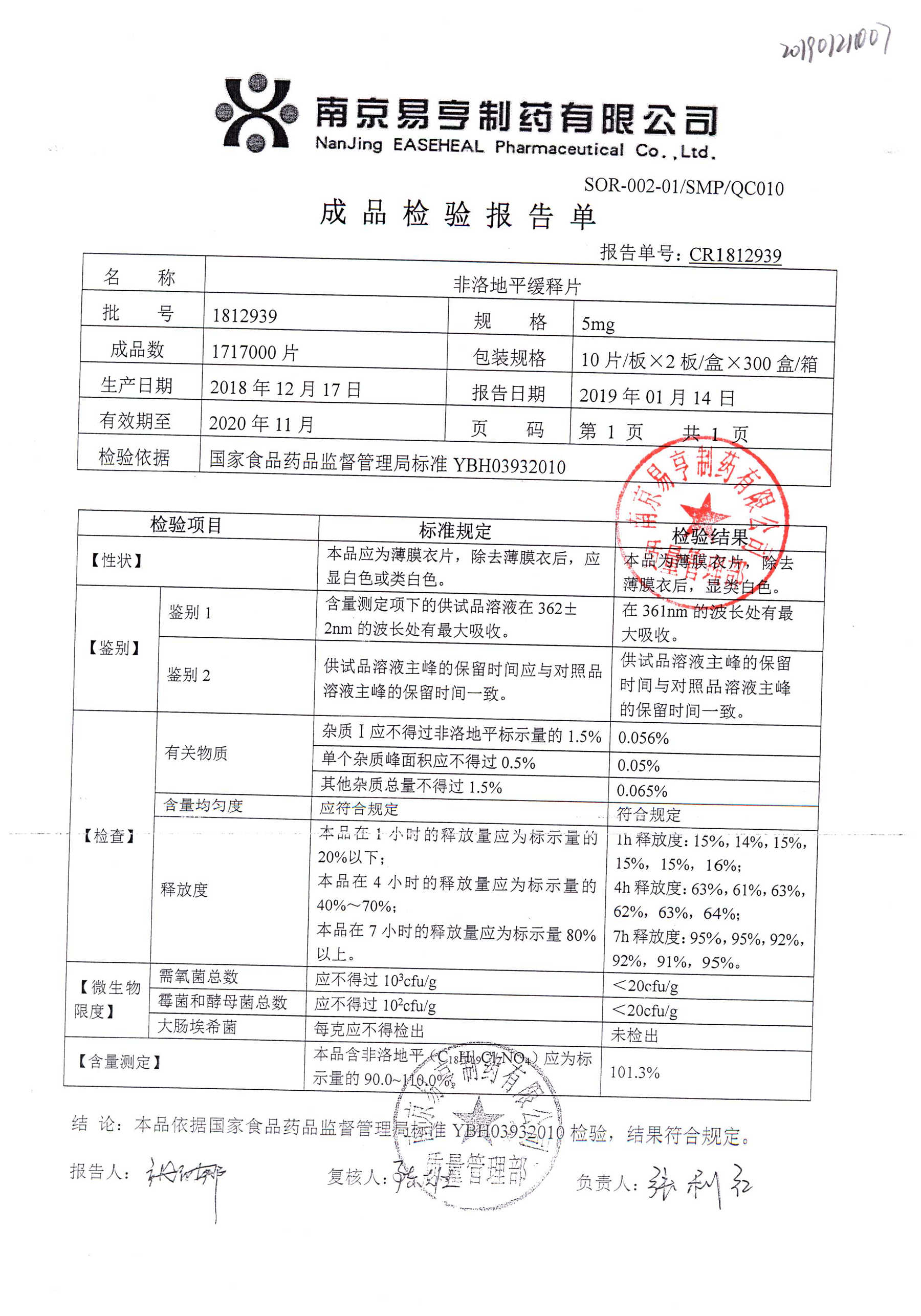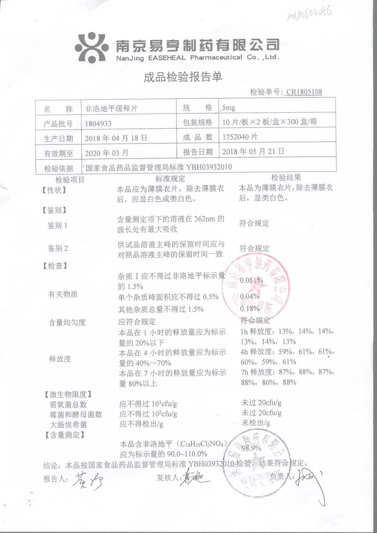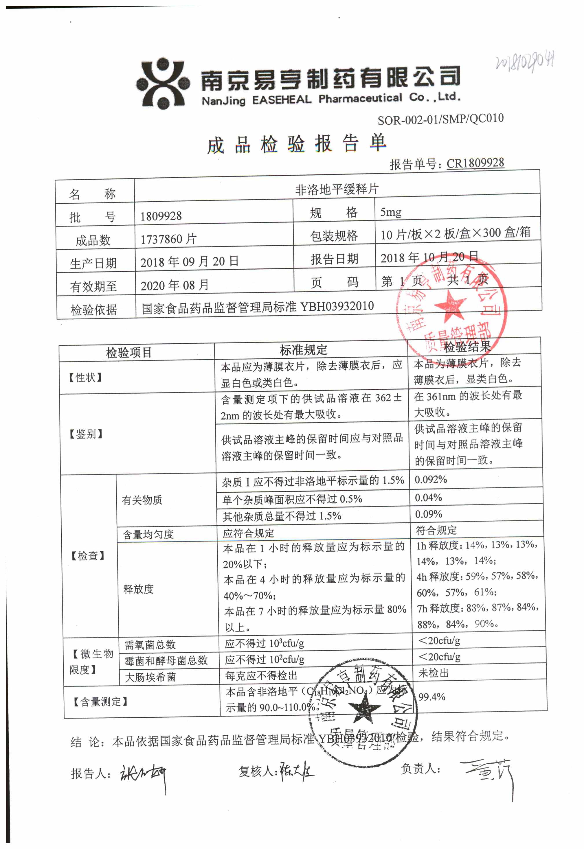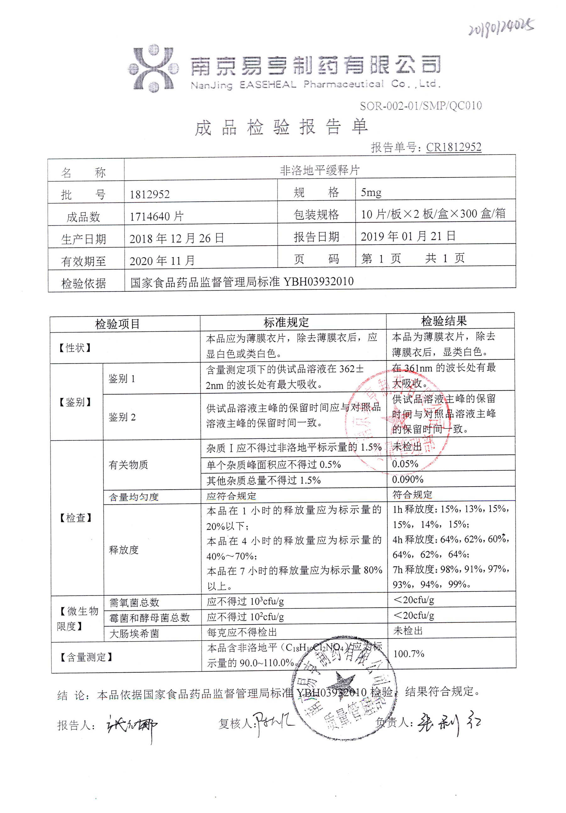 | 非洛地平緩釋片 | 5mg*20s | 2404J011 | 查看詳情 |