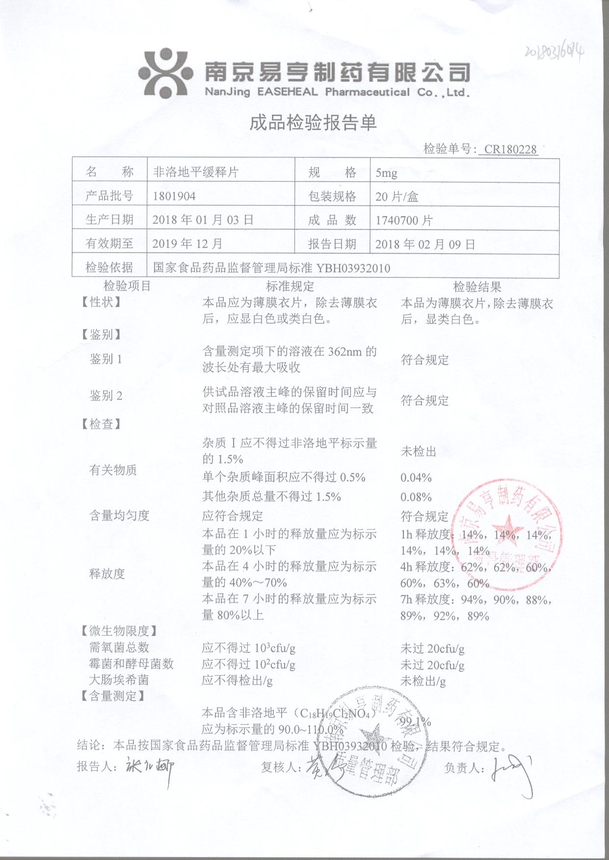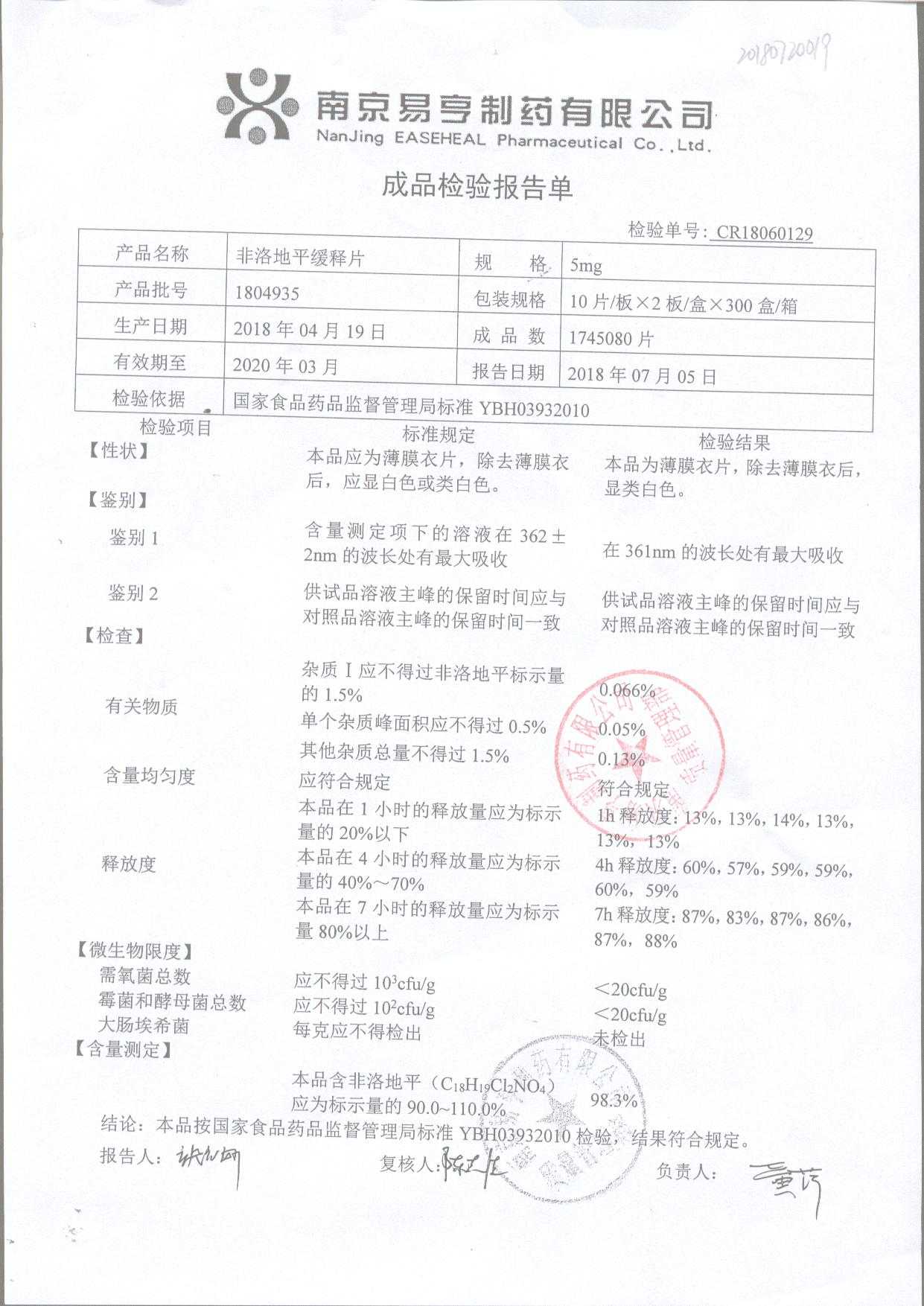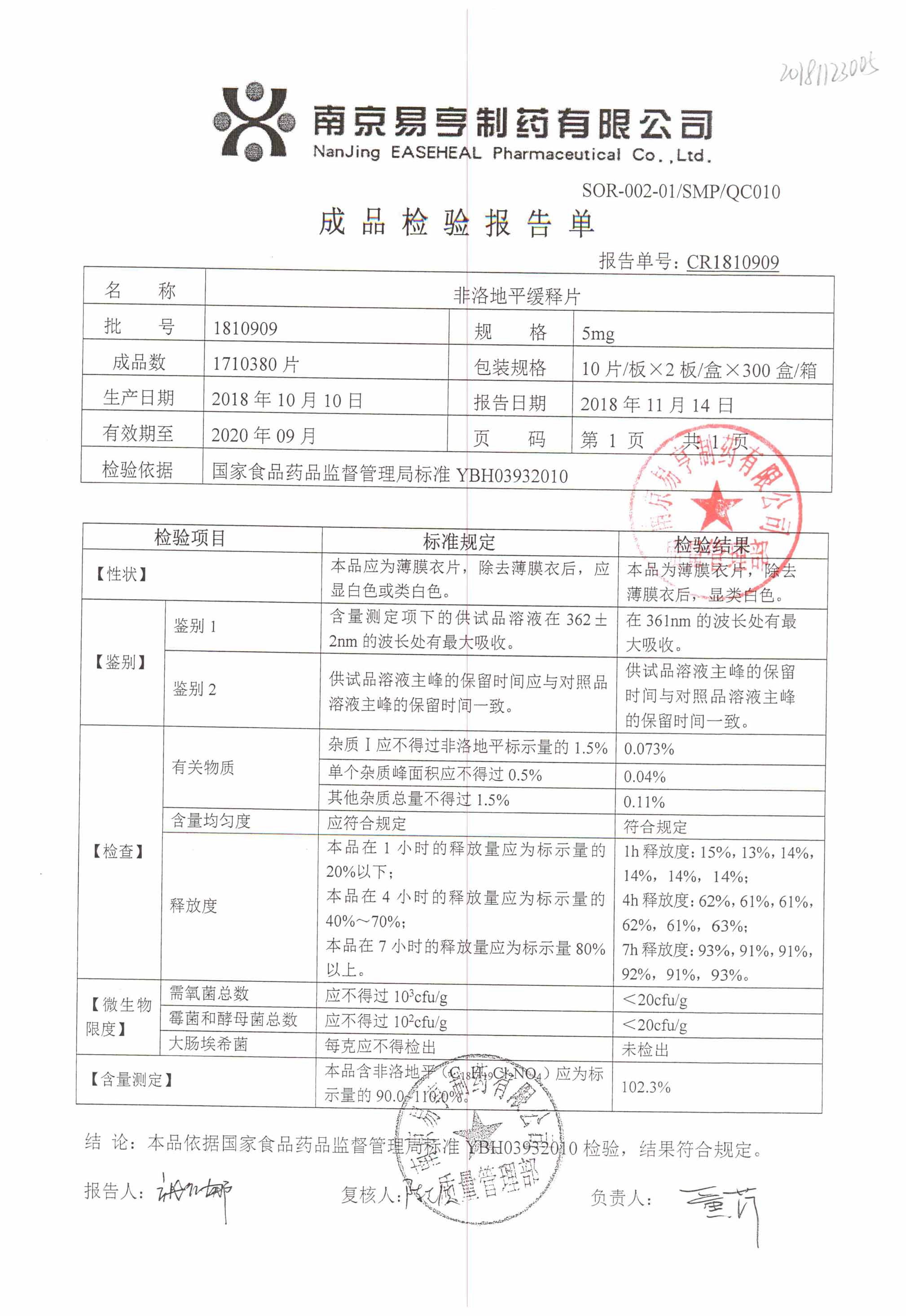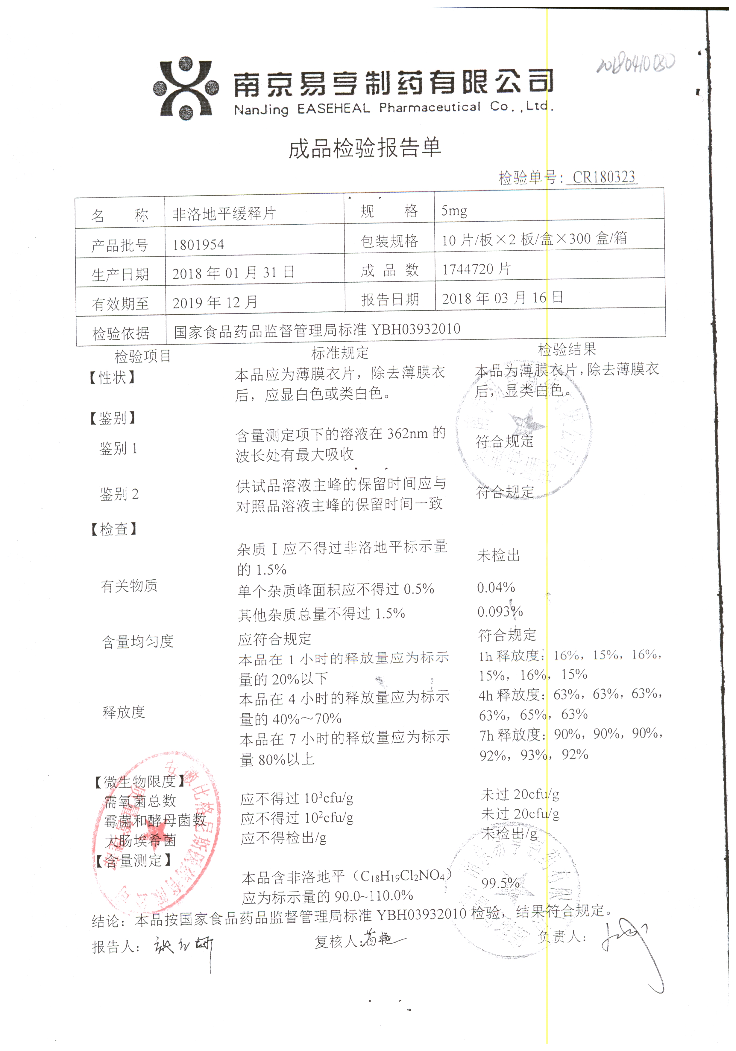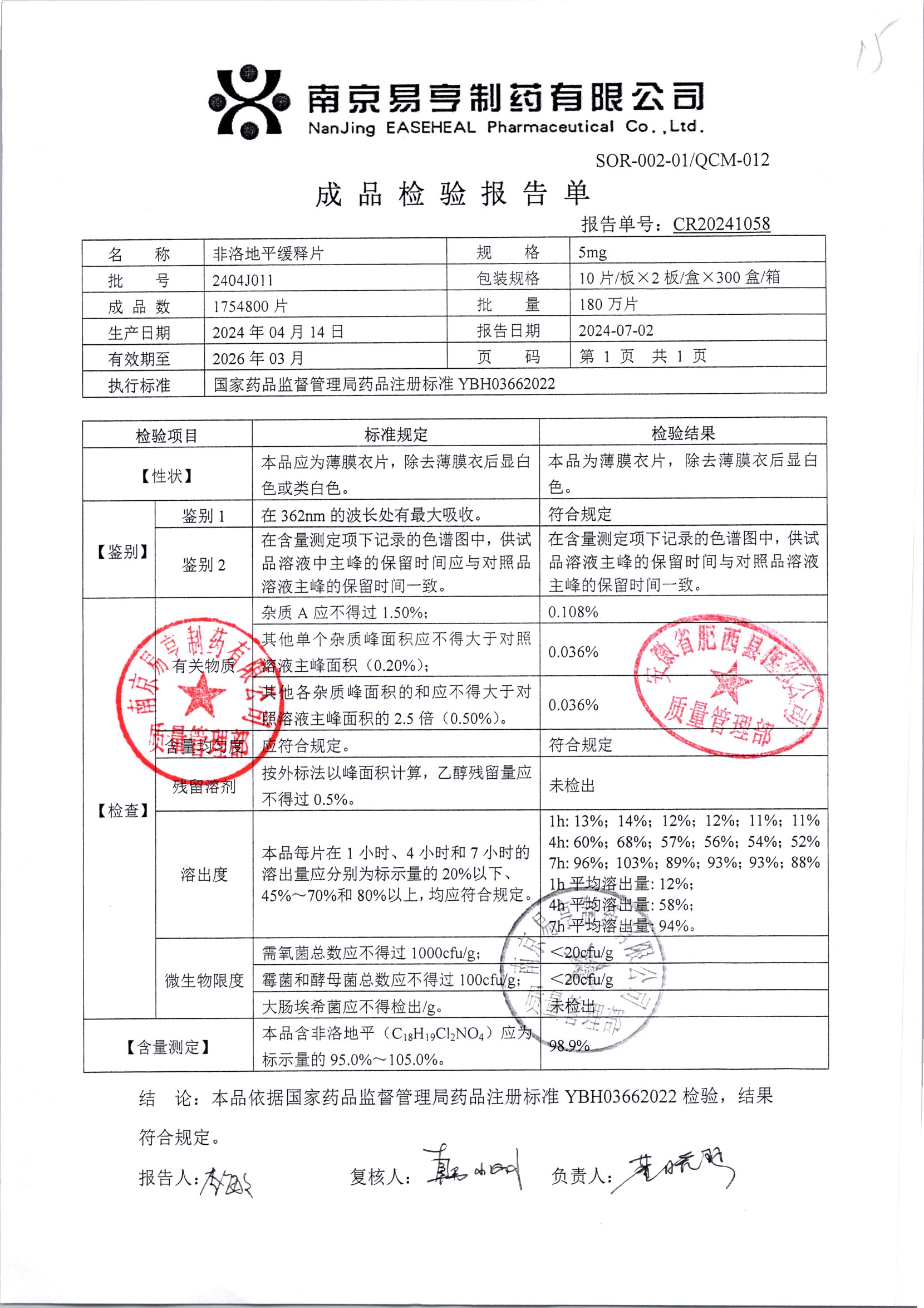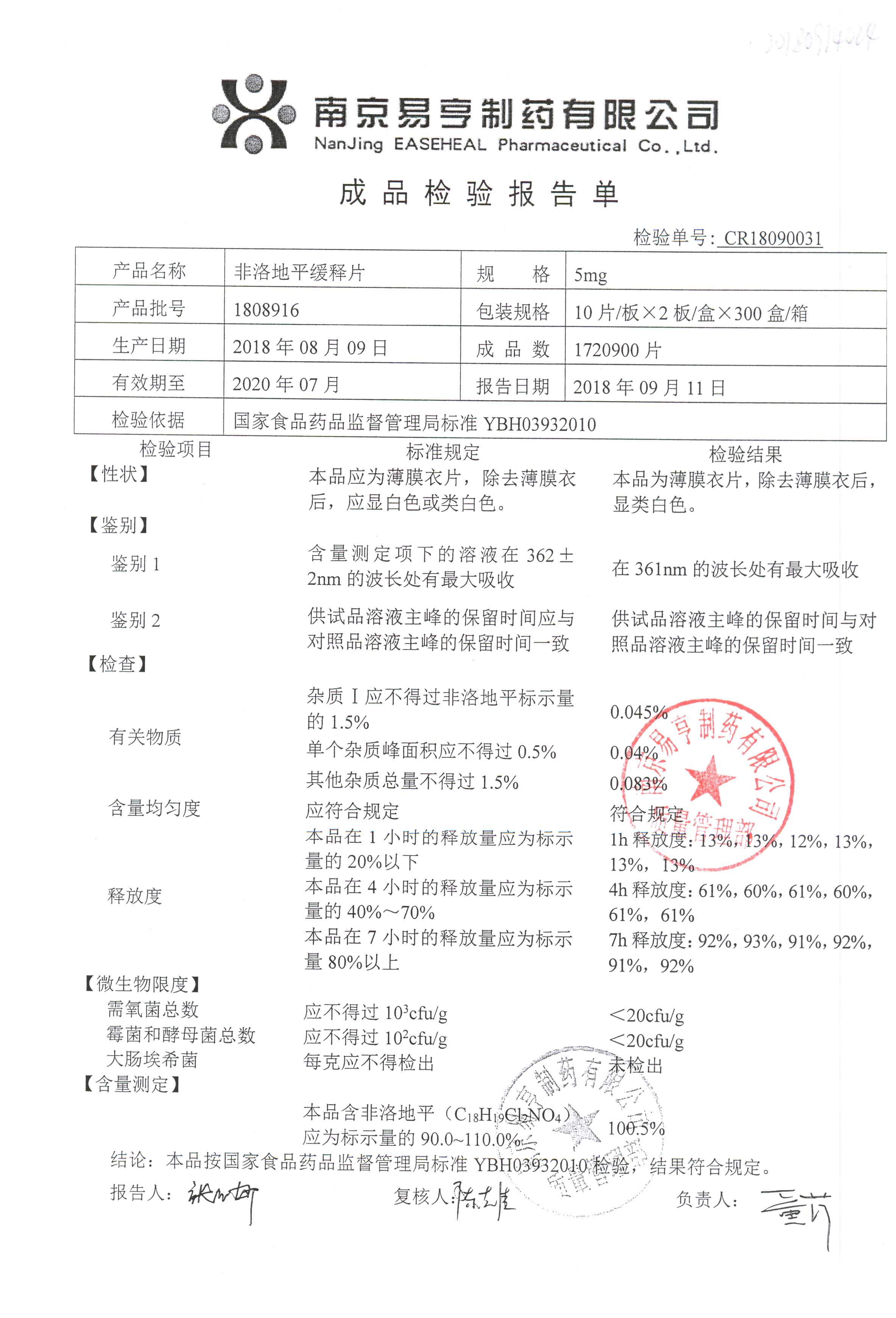| 非洛地平緩釋片 | 5mg*20s | 2404J011 | 查看詳情 |