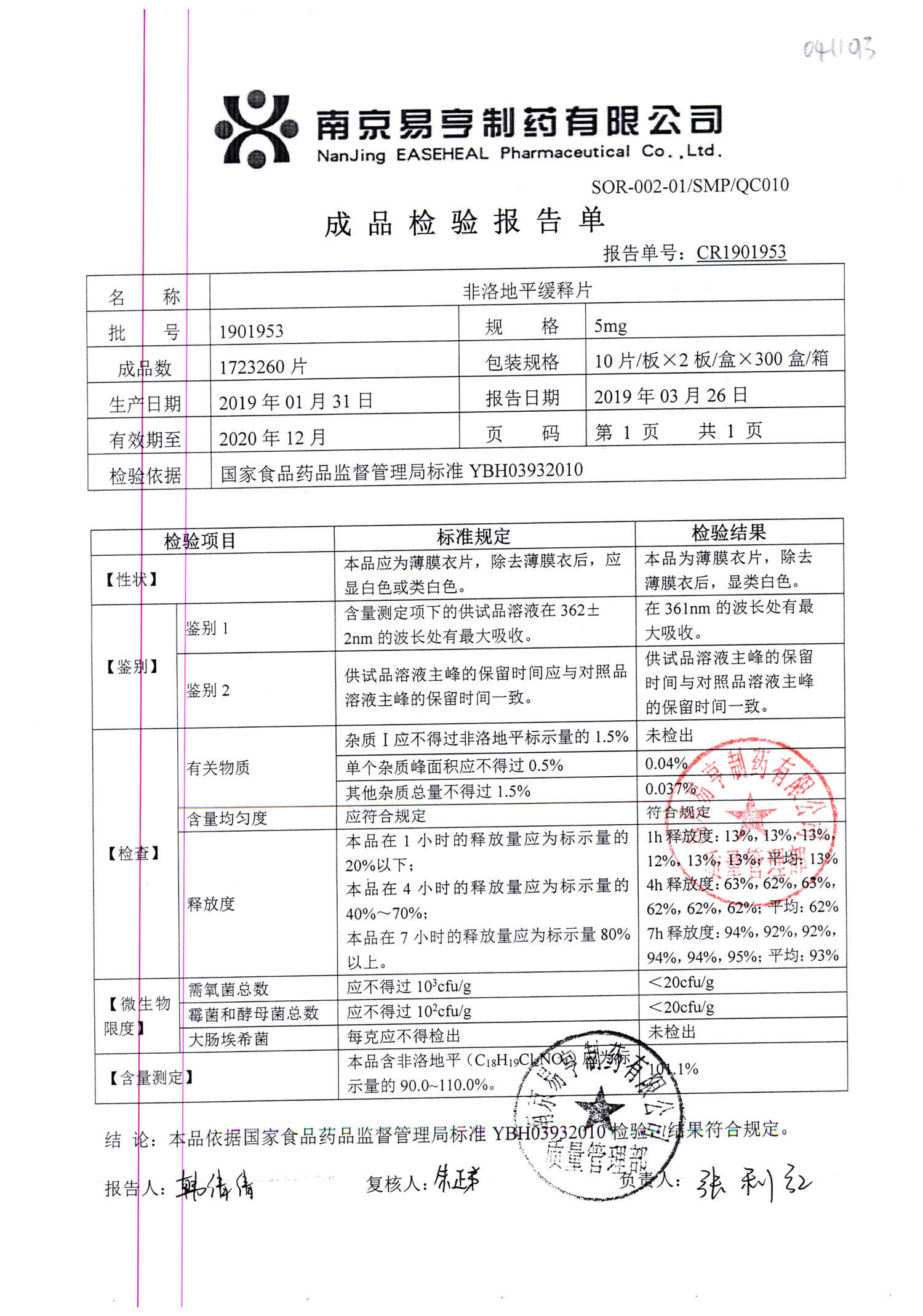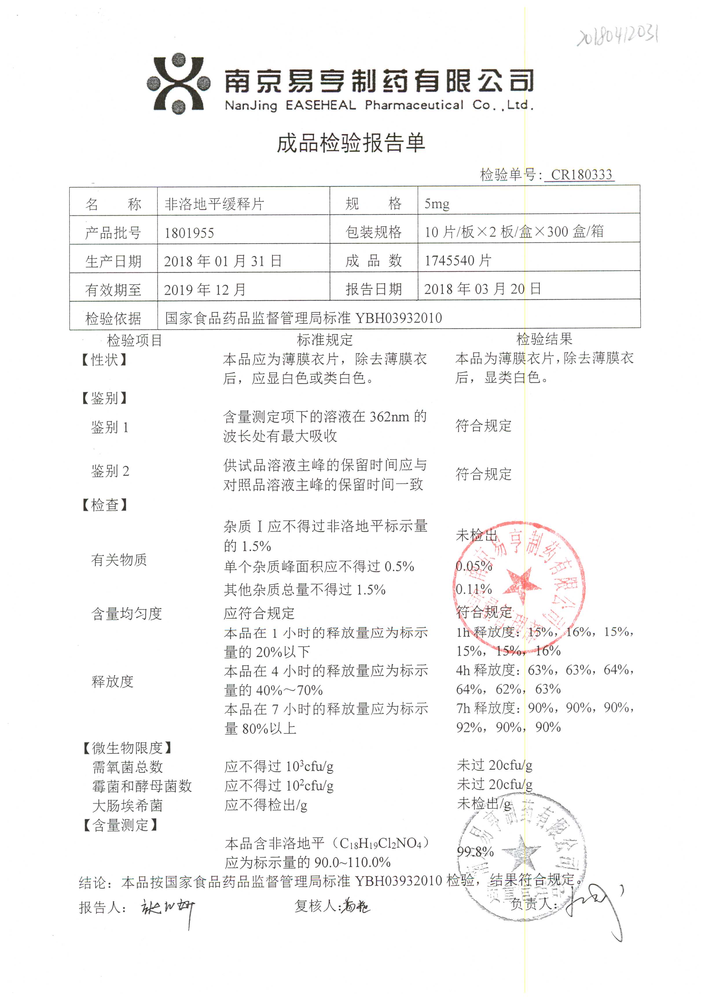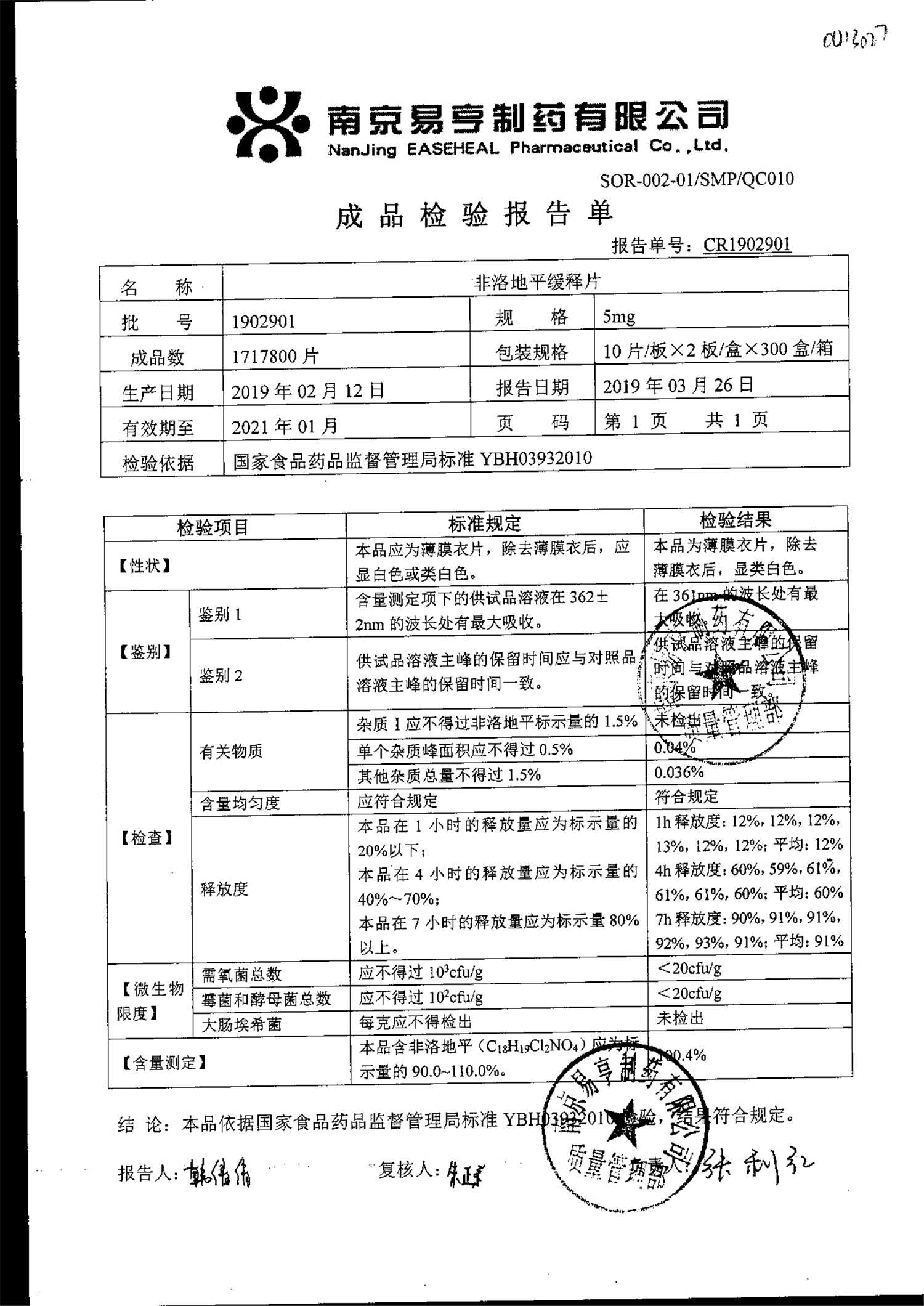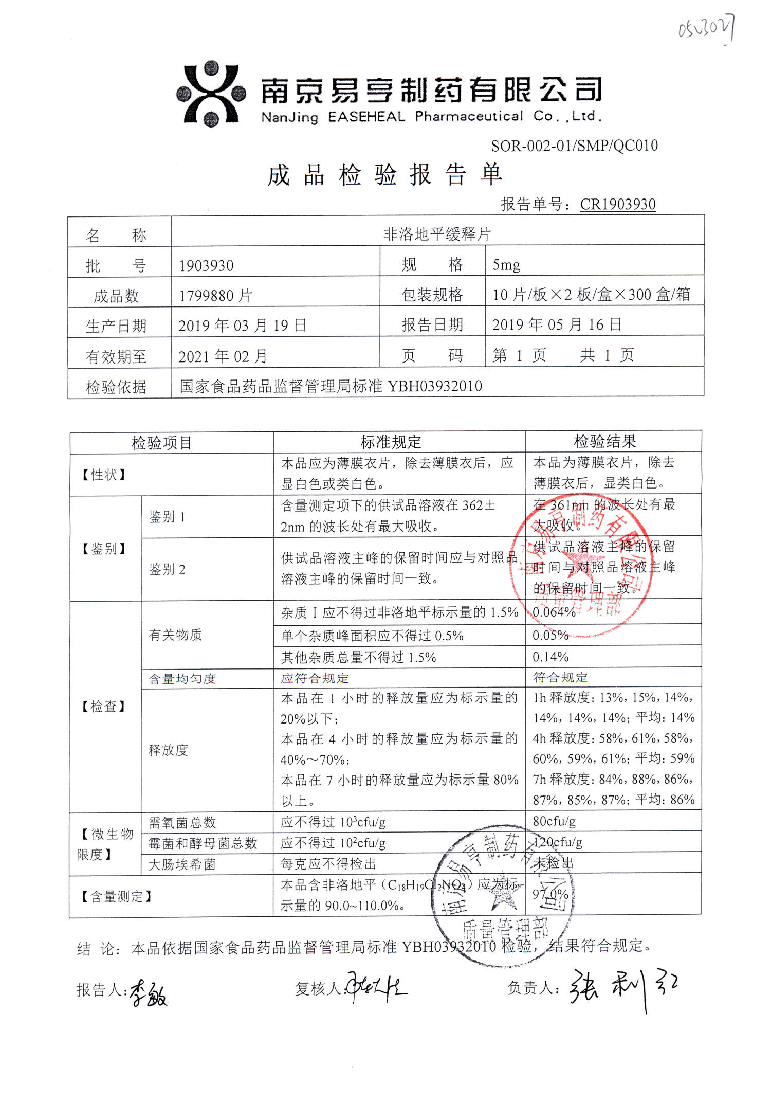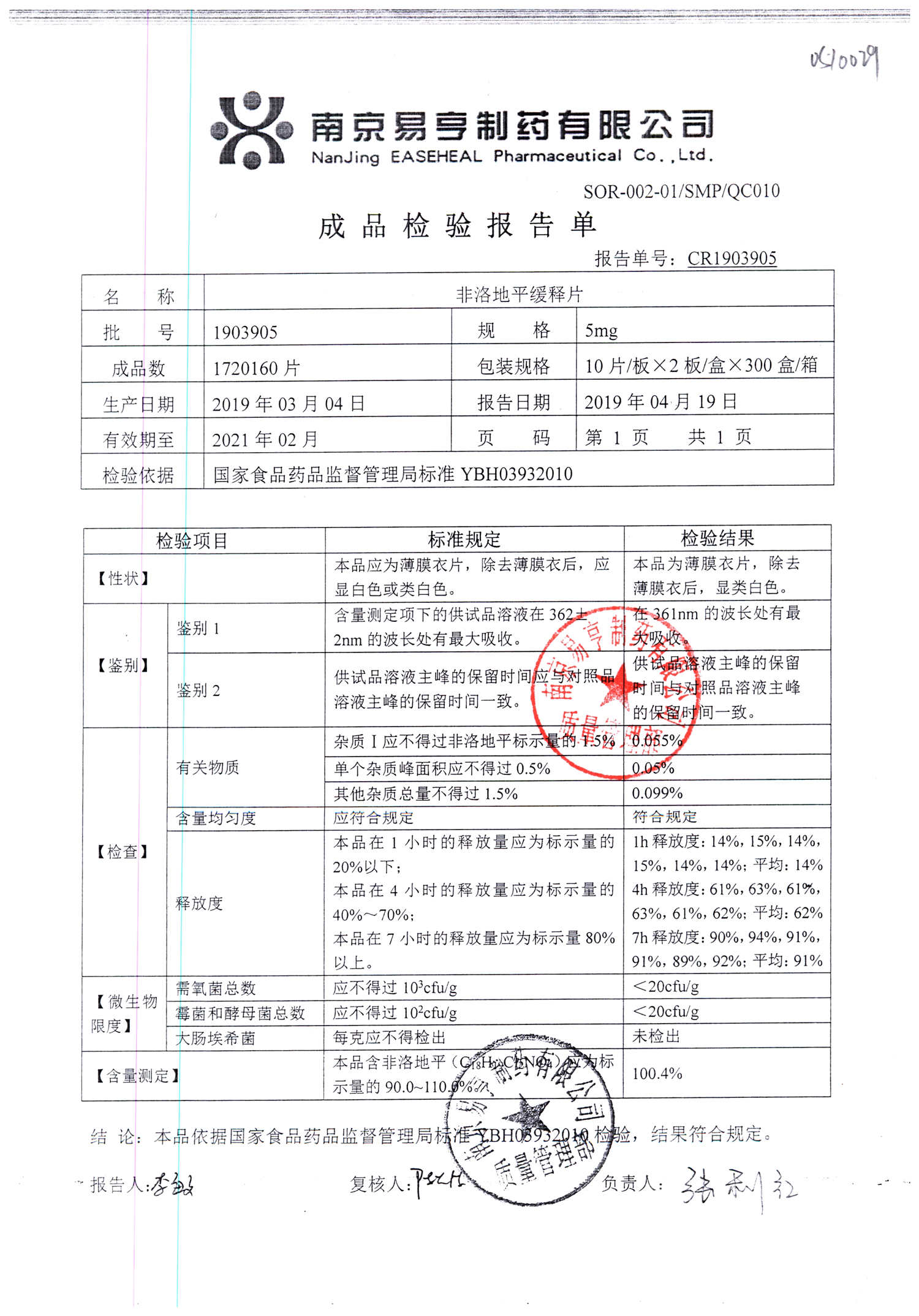 | 非洛地平緩釋片 | 5mg*20s | 2404J011 | 查看詳情 |