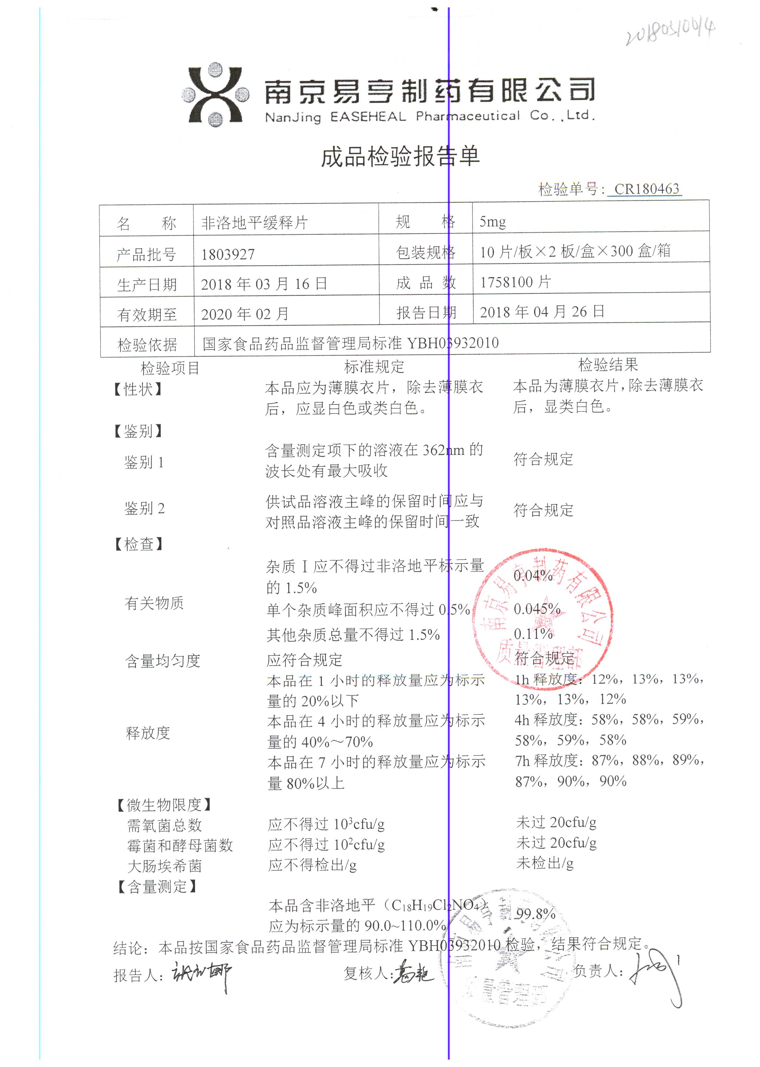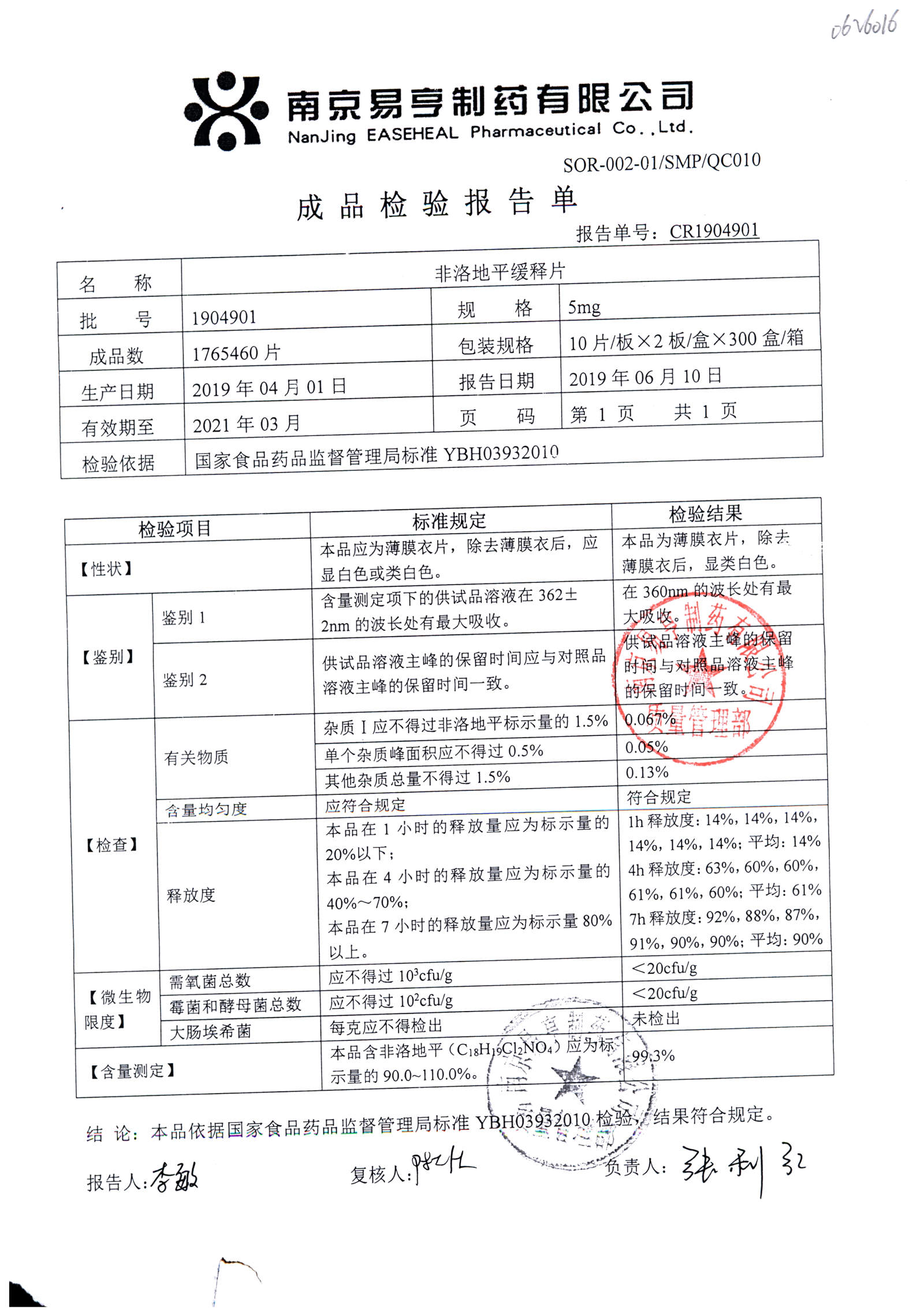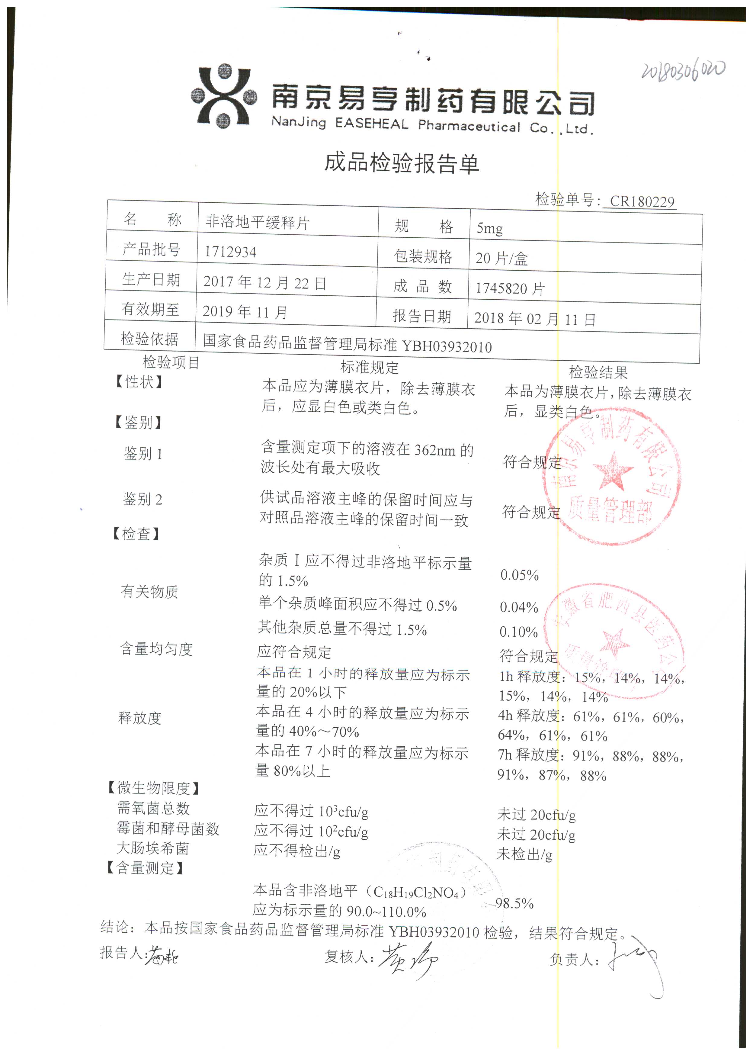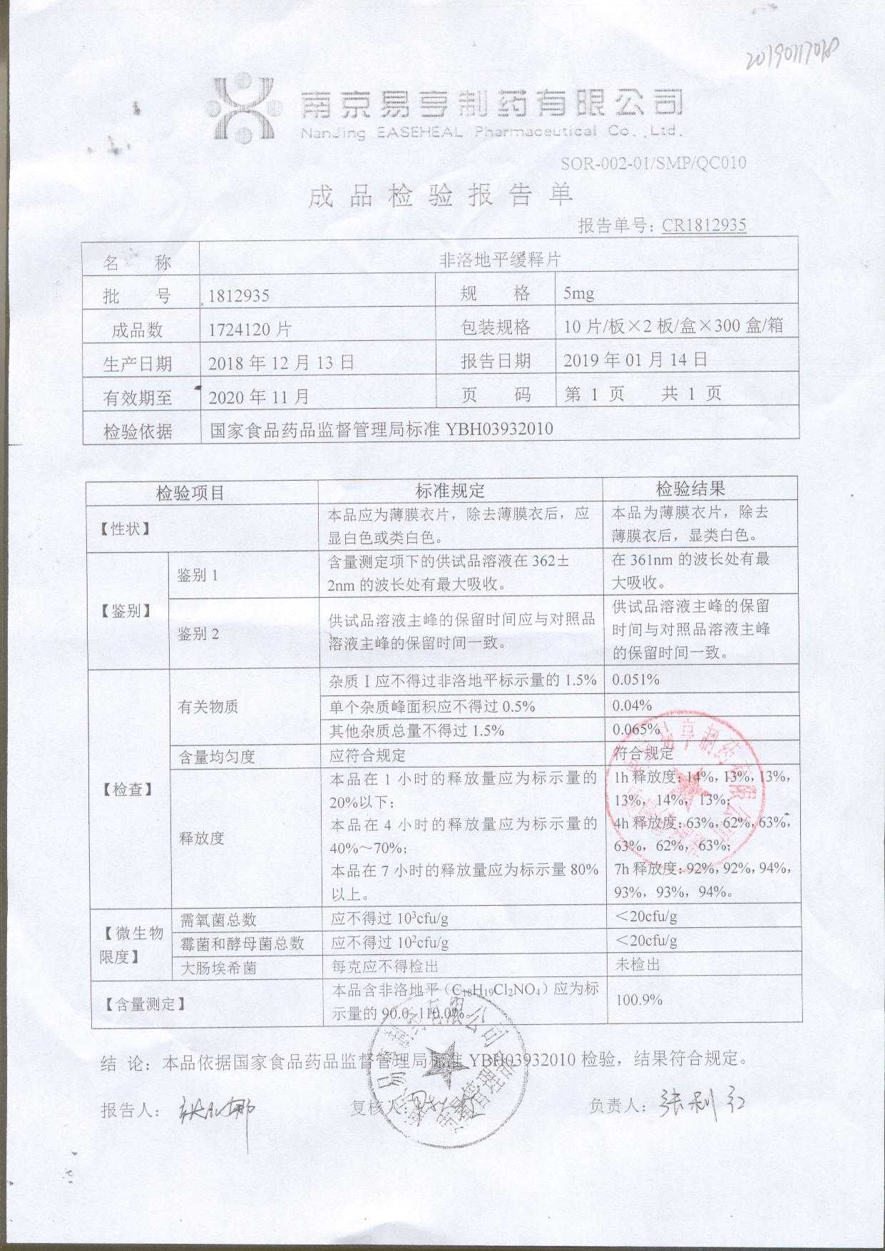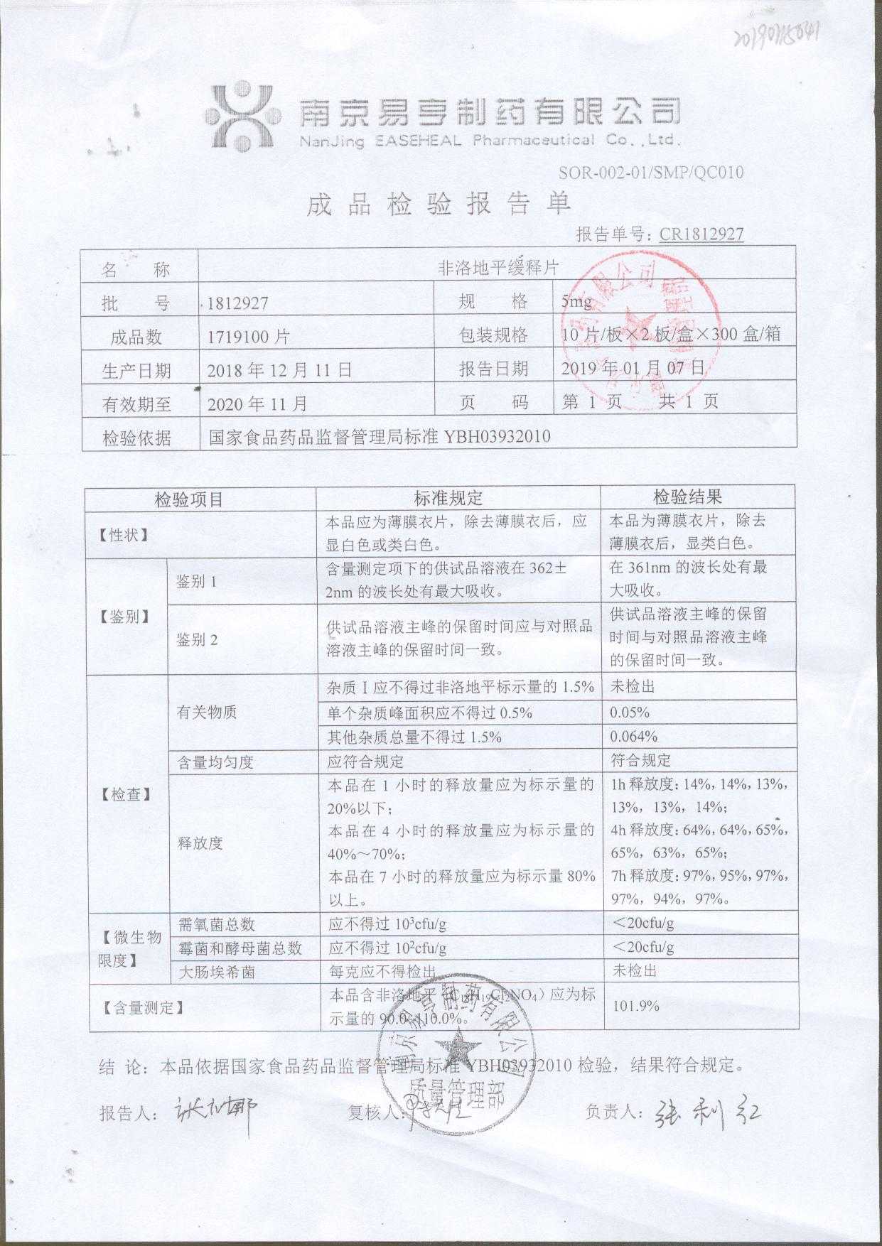 | 非洛地平緩釋片 | 5mg*20s | 2404J011 | 查看詳情 |