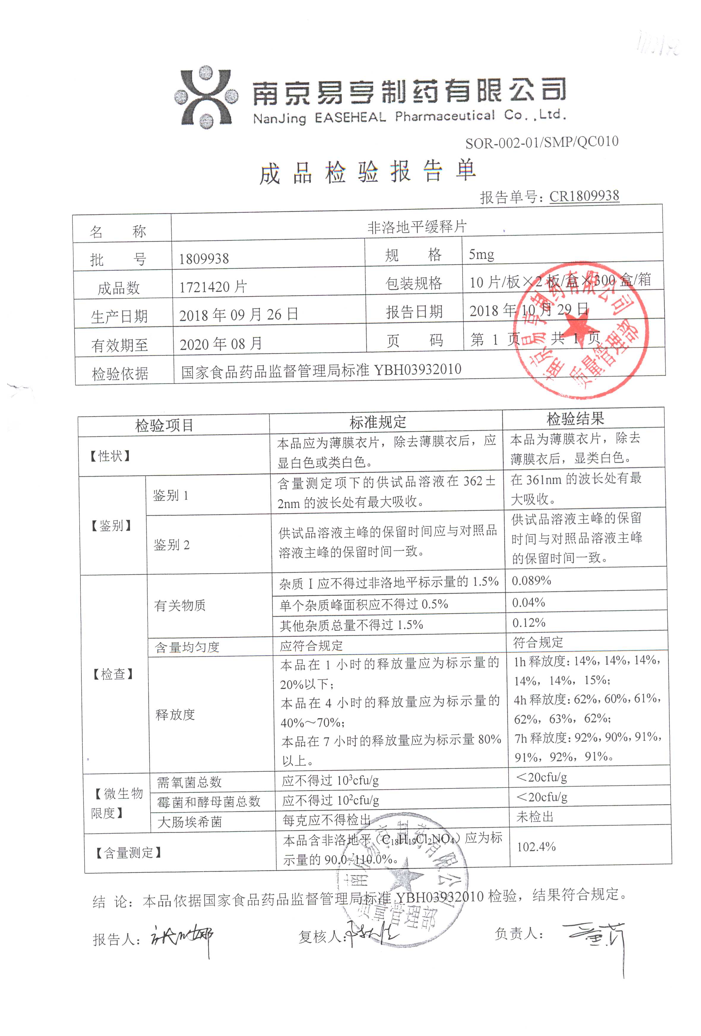 | 非洛地平緩釋片 | 5mg*20s | 1809938 | 查看詳情 |