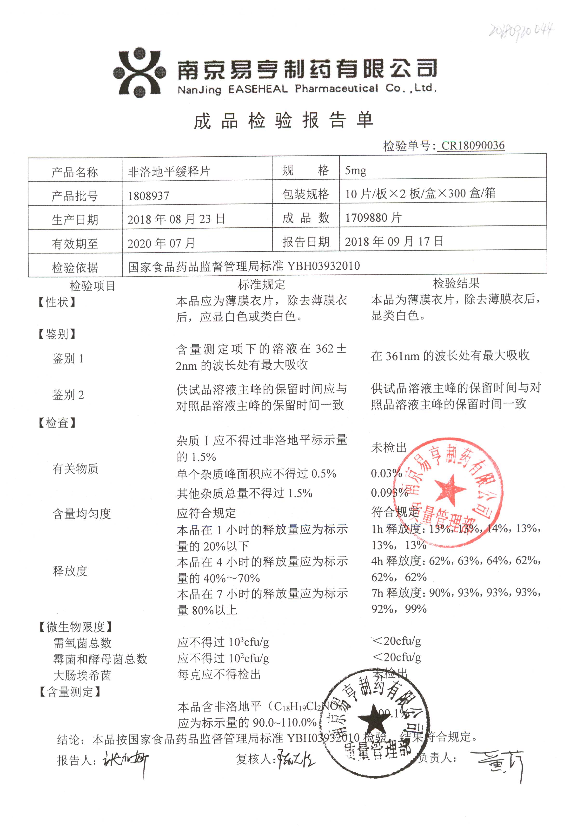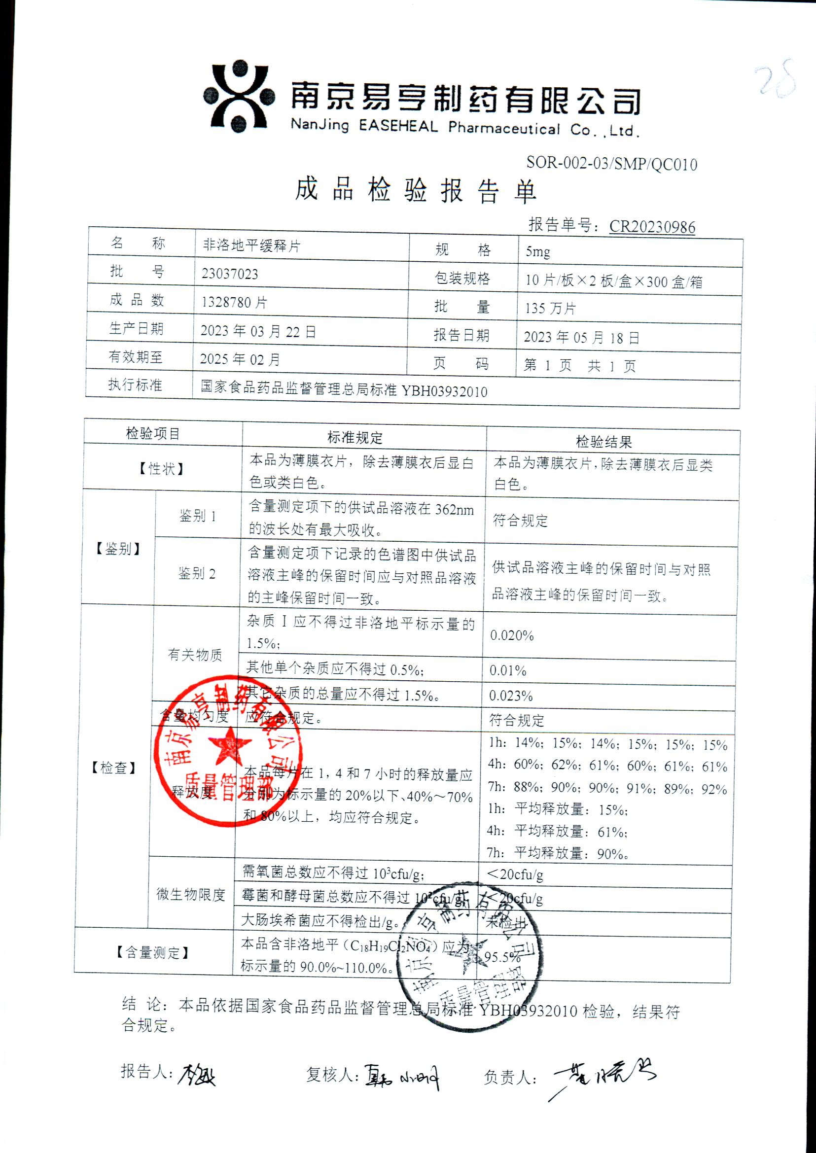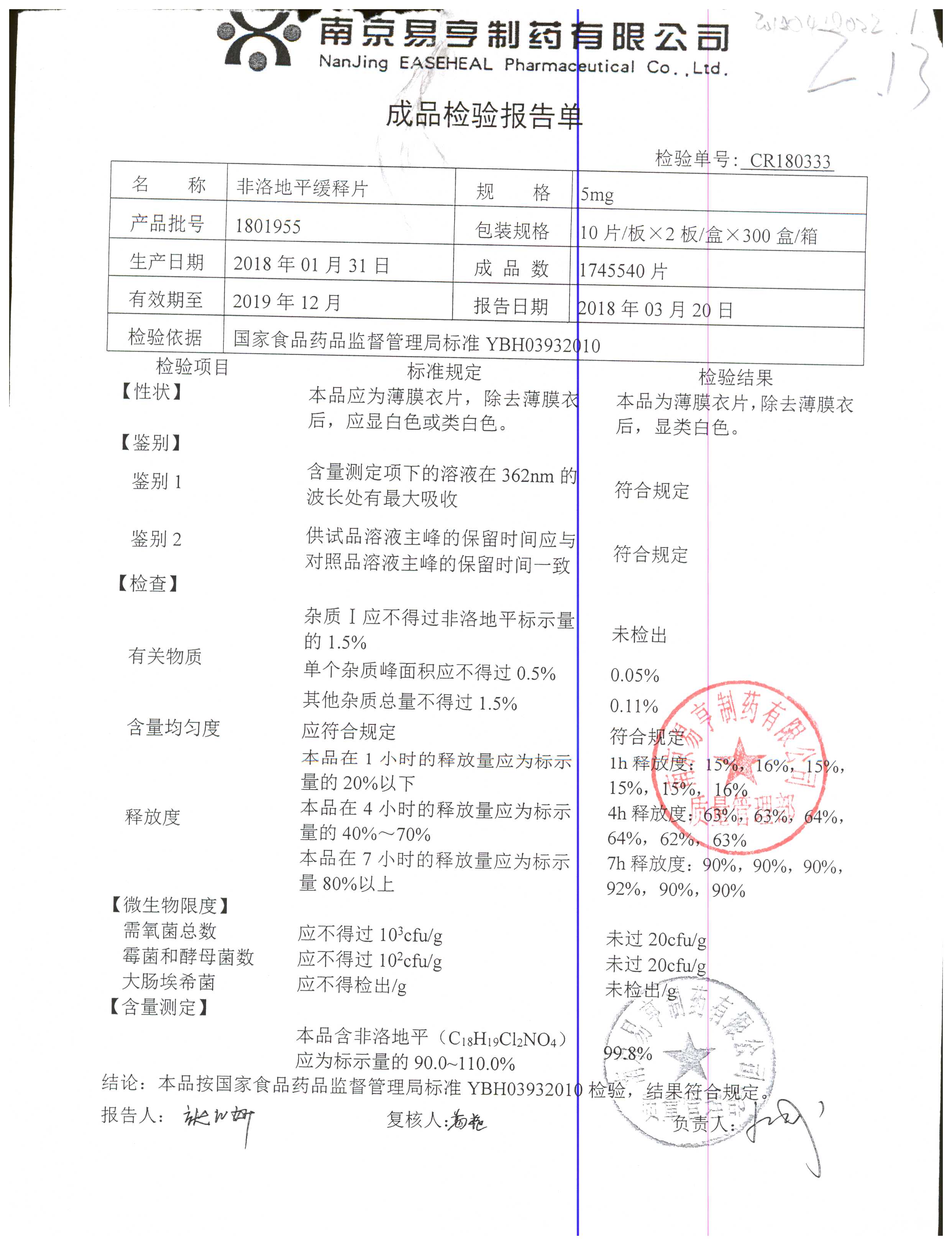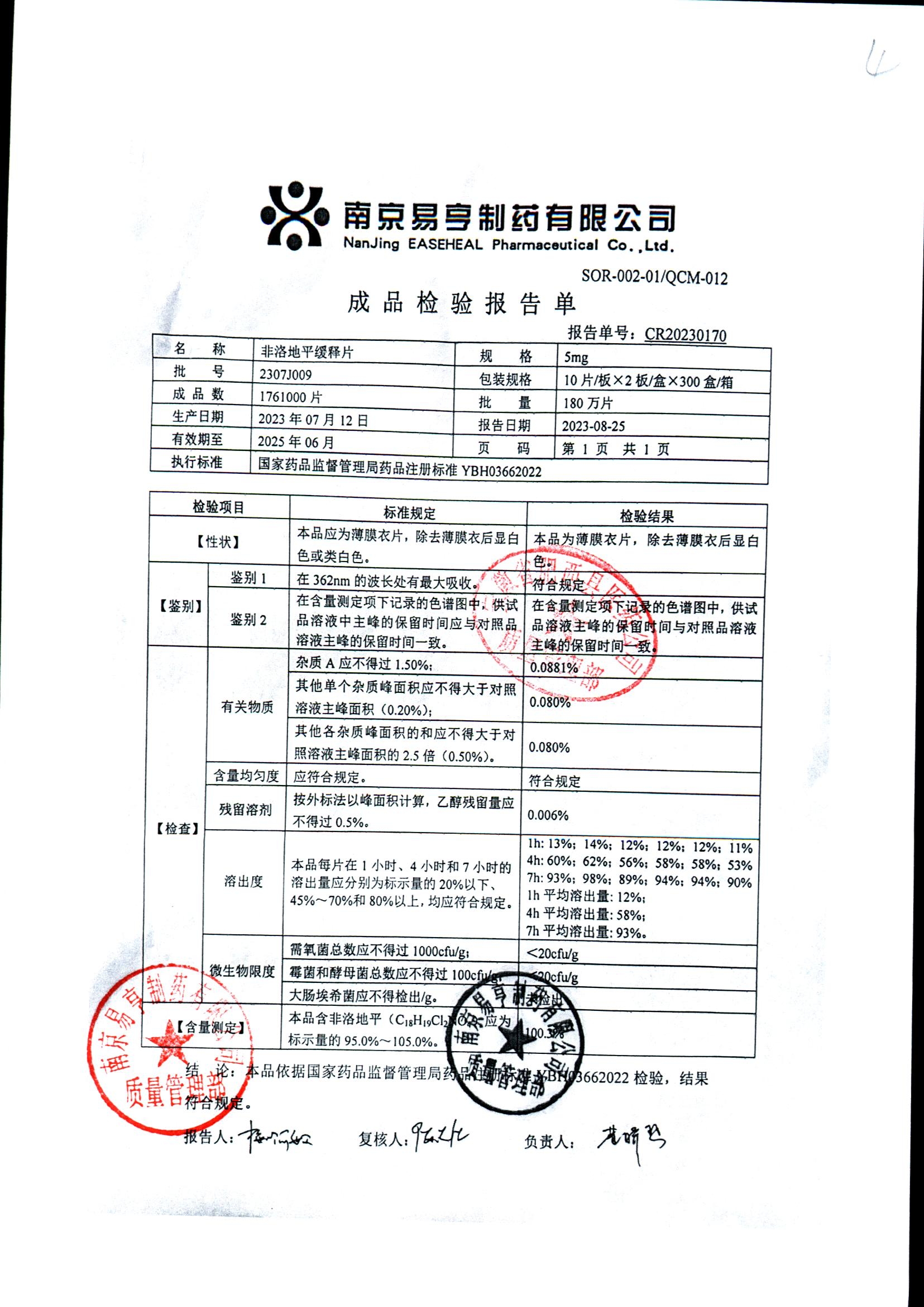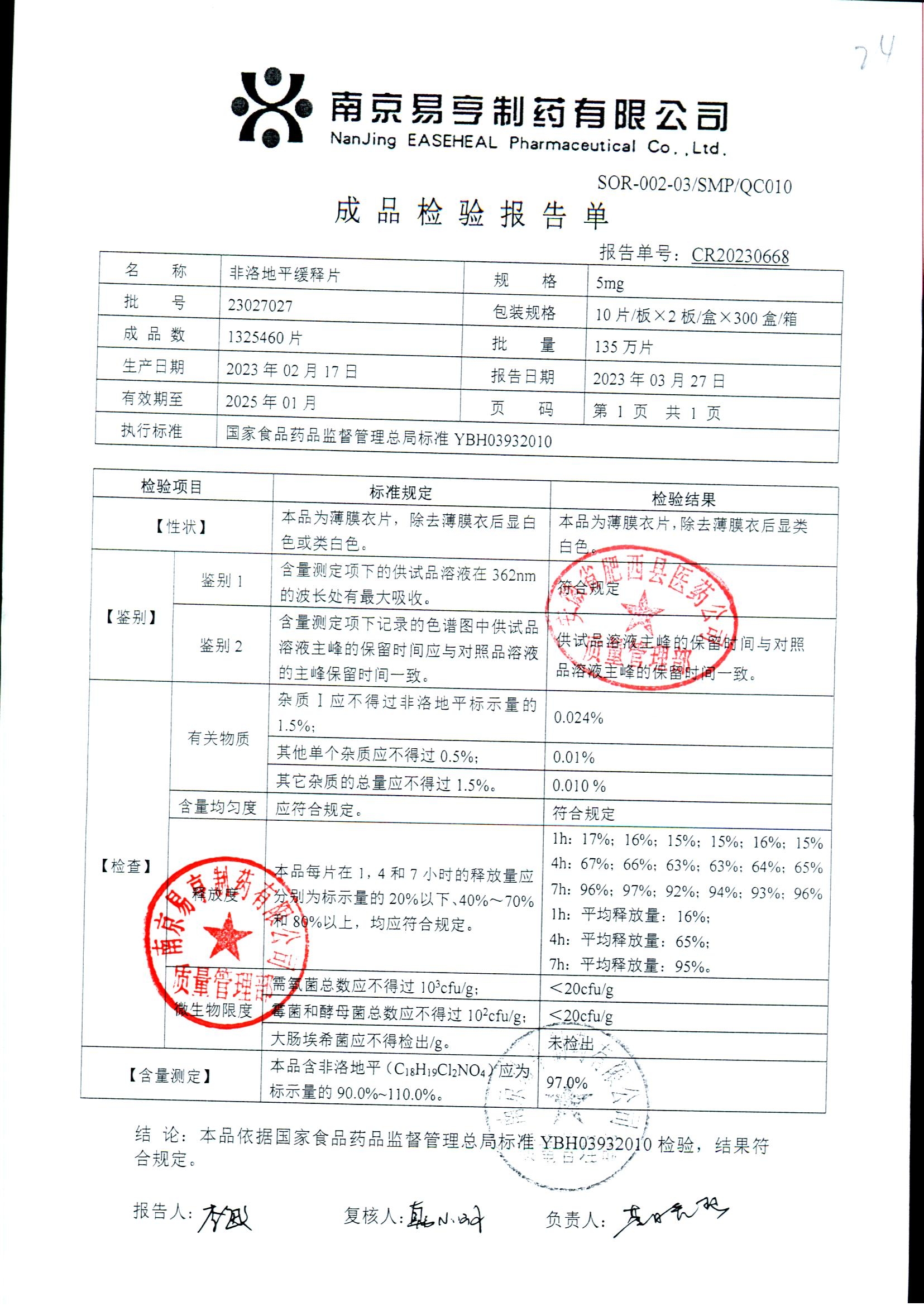 | 非洛地平緩釋片 | 5mg*20s | 2308J014 | 查看詳情 |