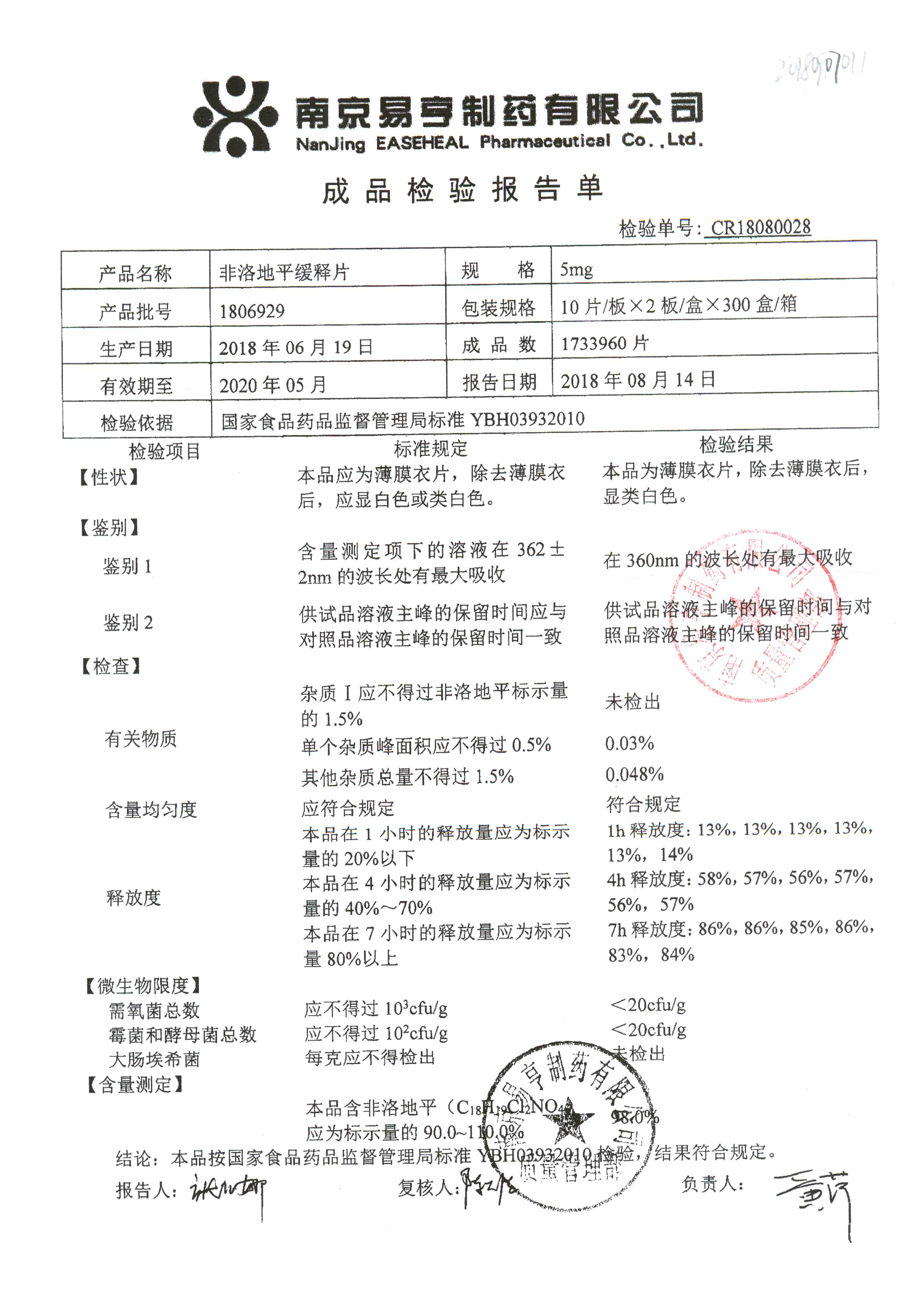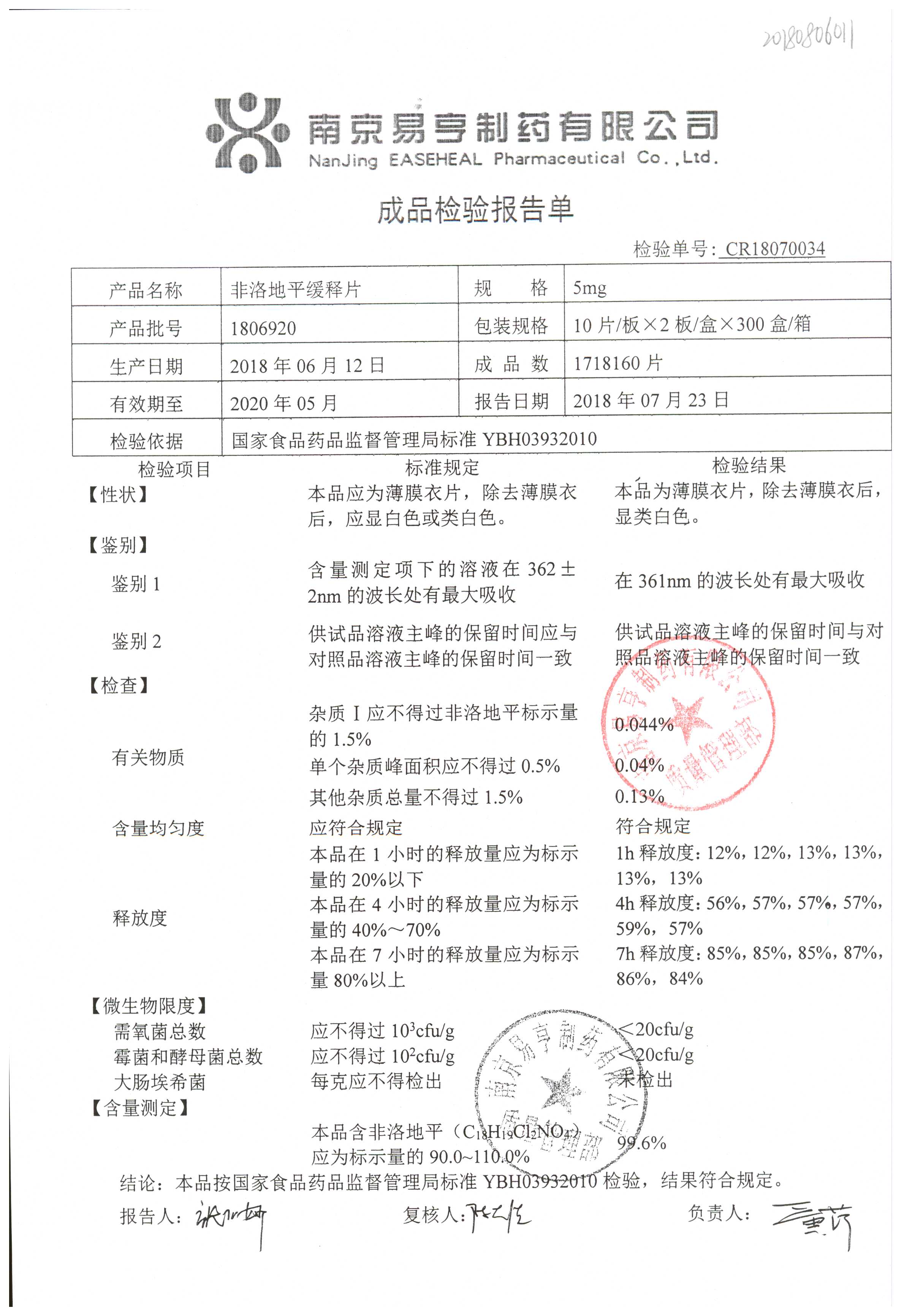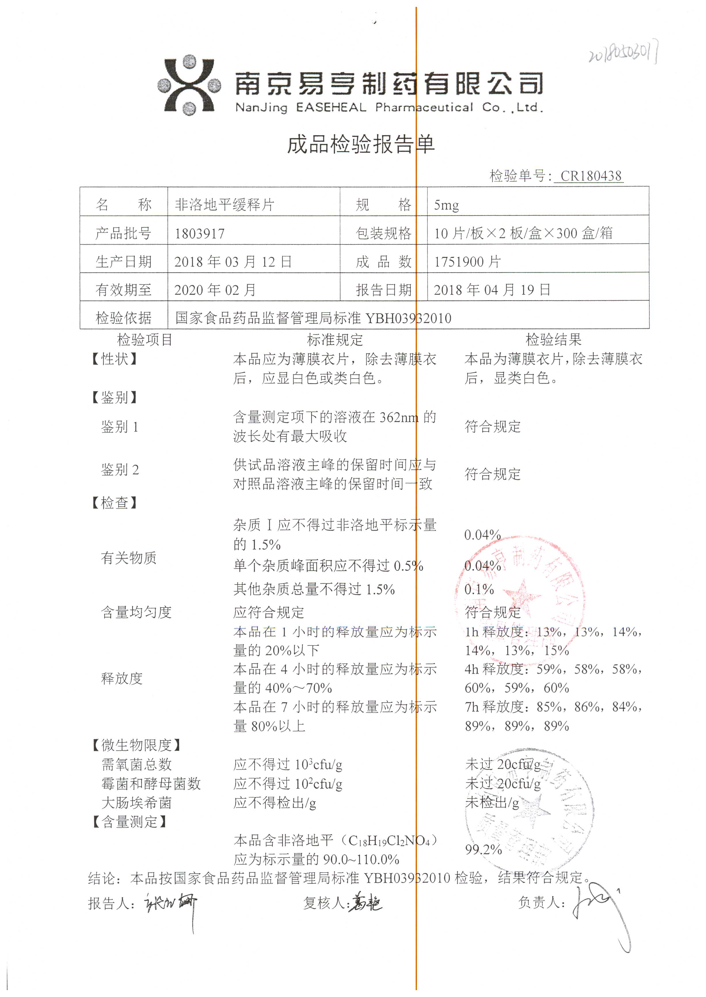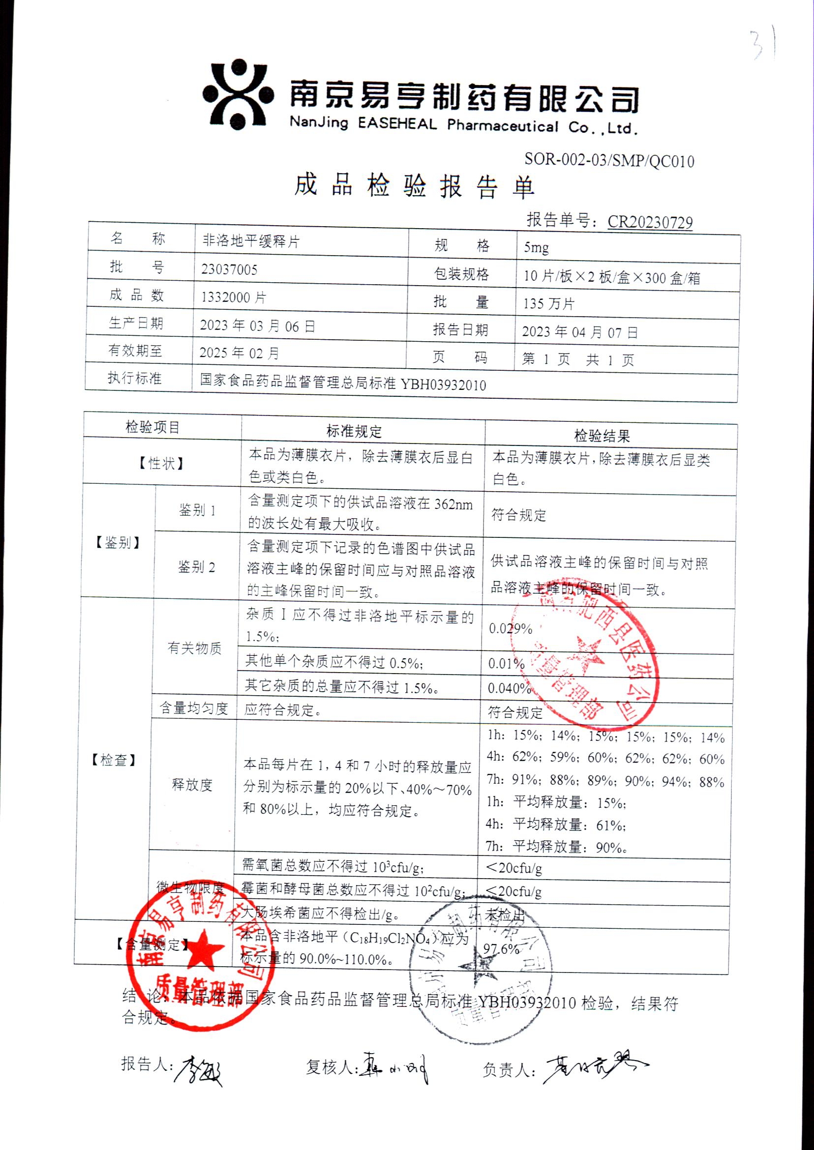 | 非洛地平緩釋片 | 5mg*20s | 2308J014 | 查看詳情 |