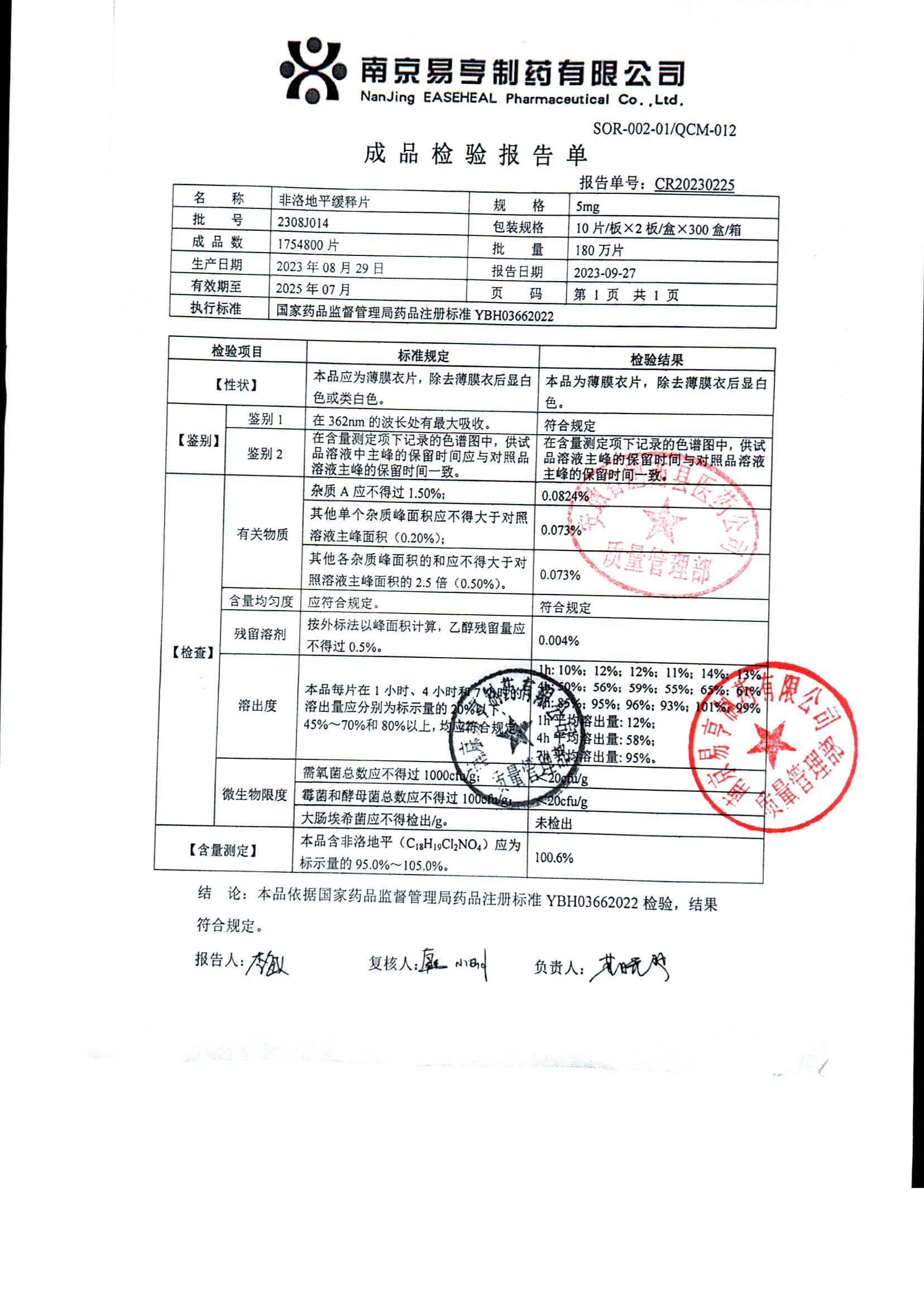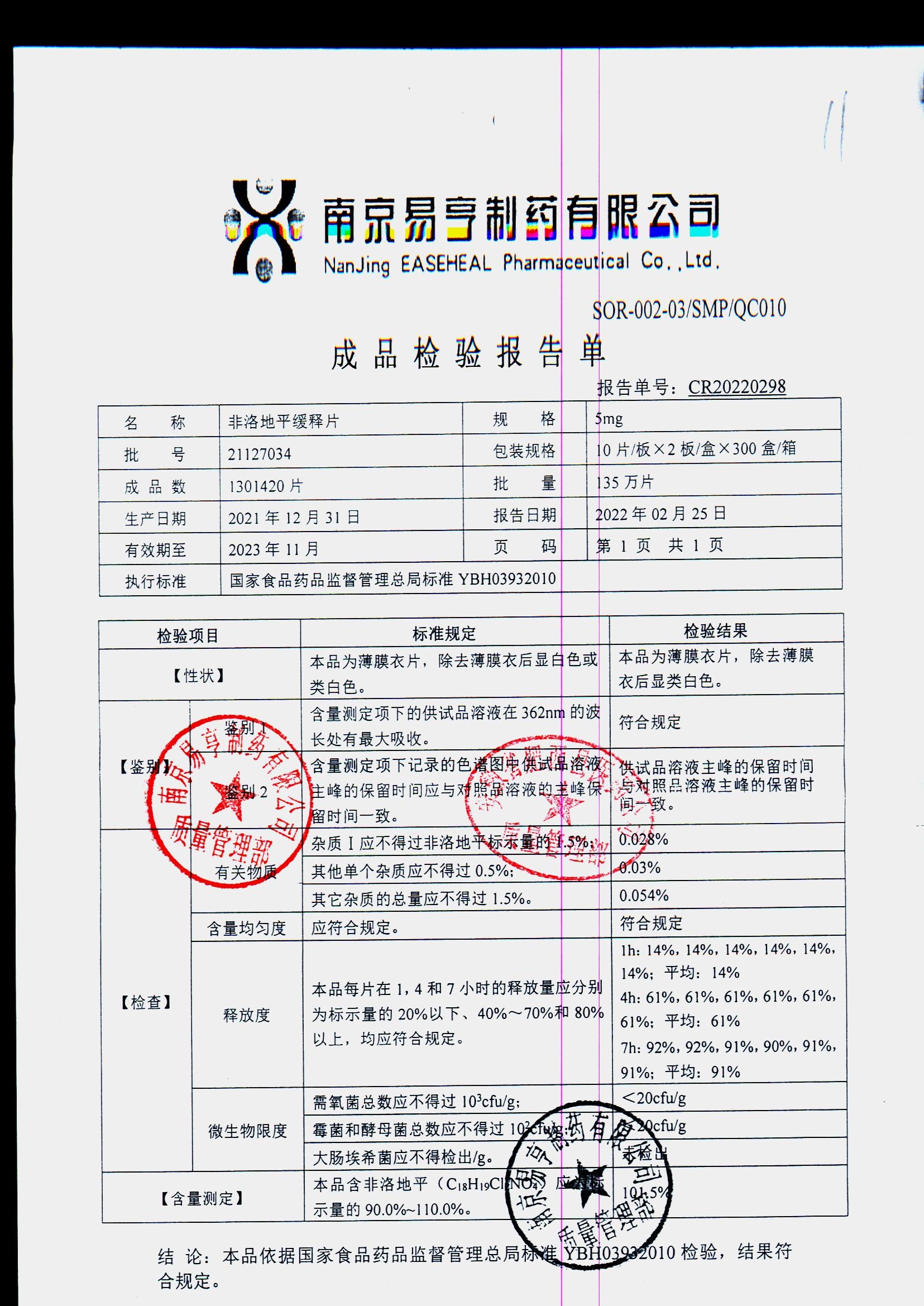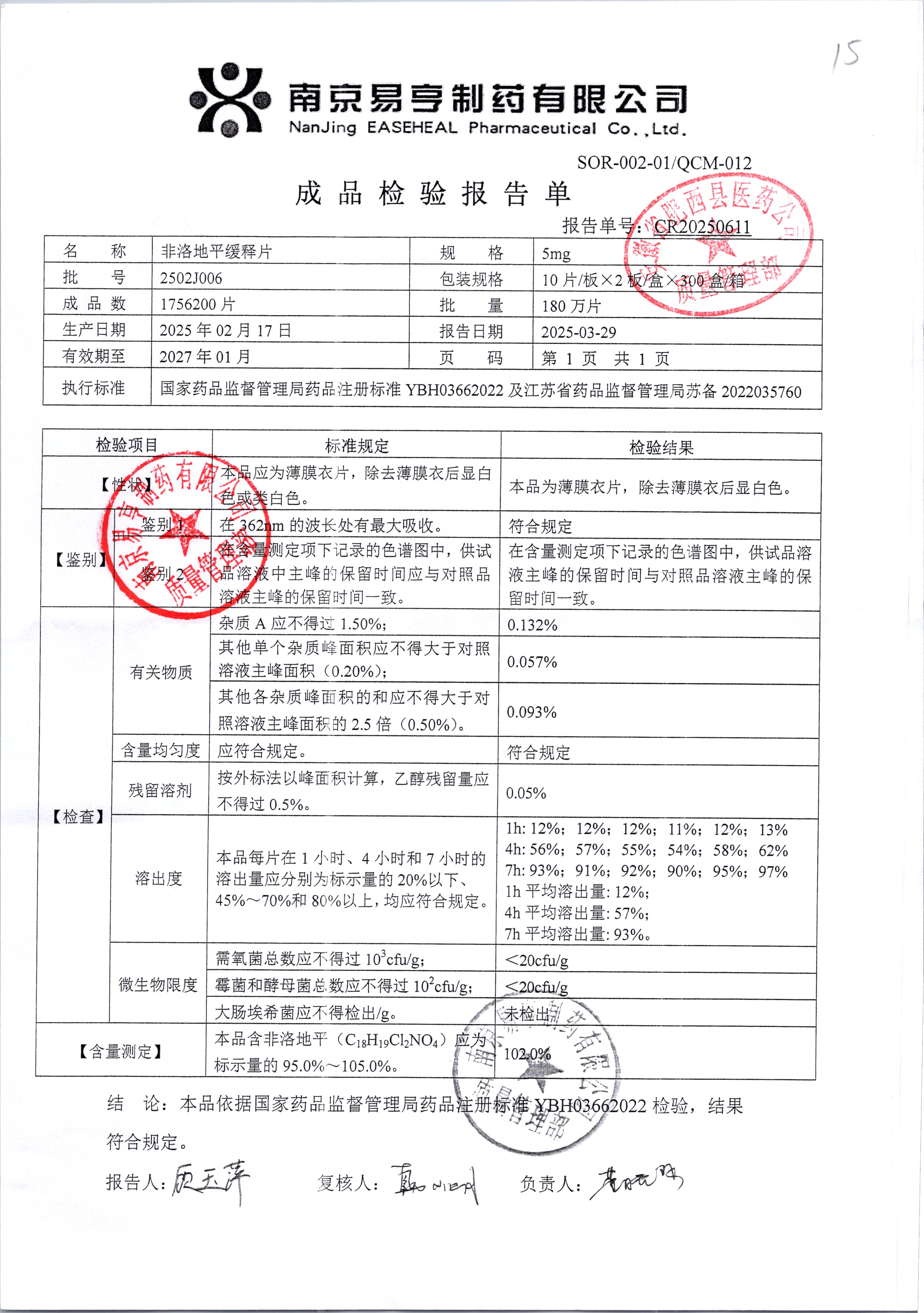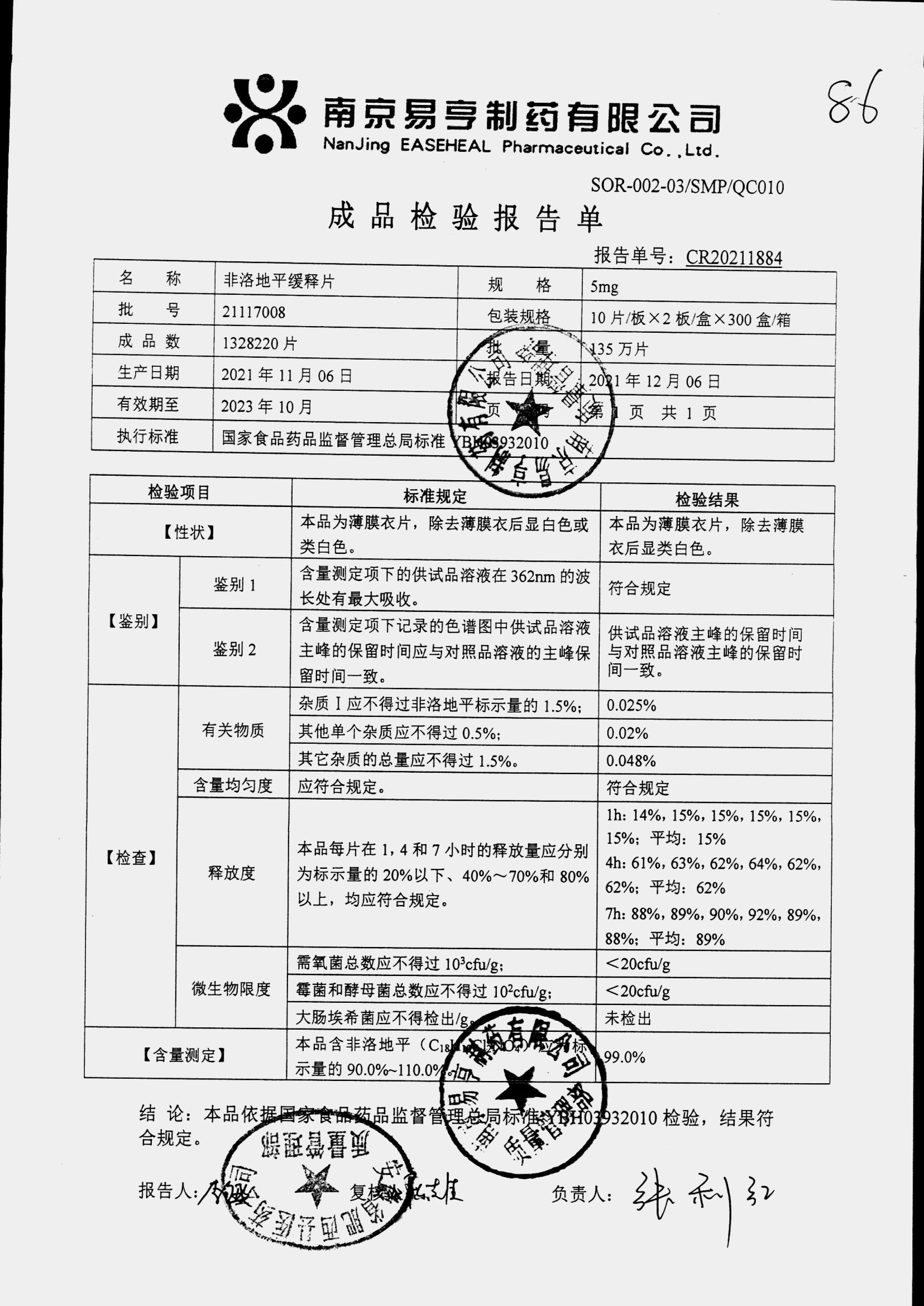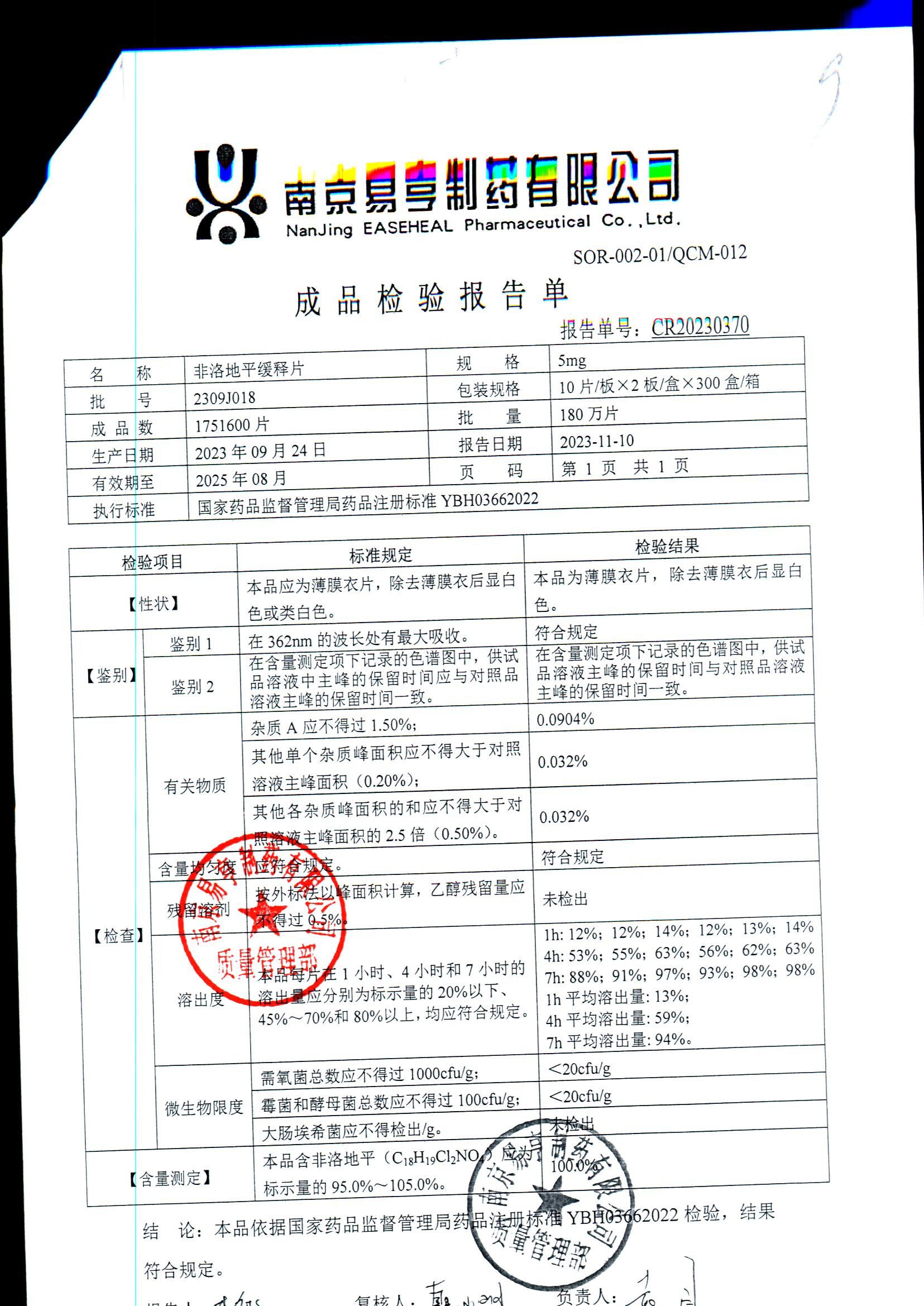 | 非洛地平緩釋片 | 5mg*20s | 2308J014 | 查看詳情 |