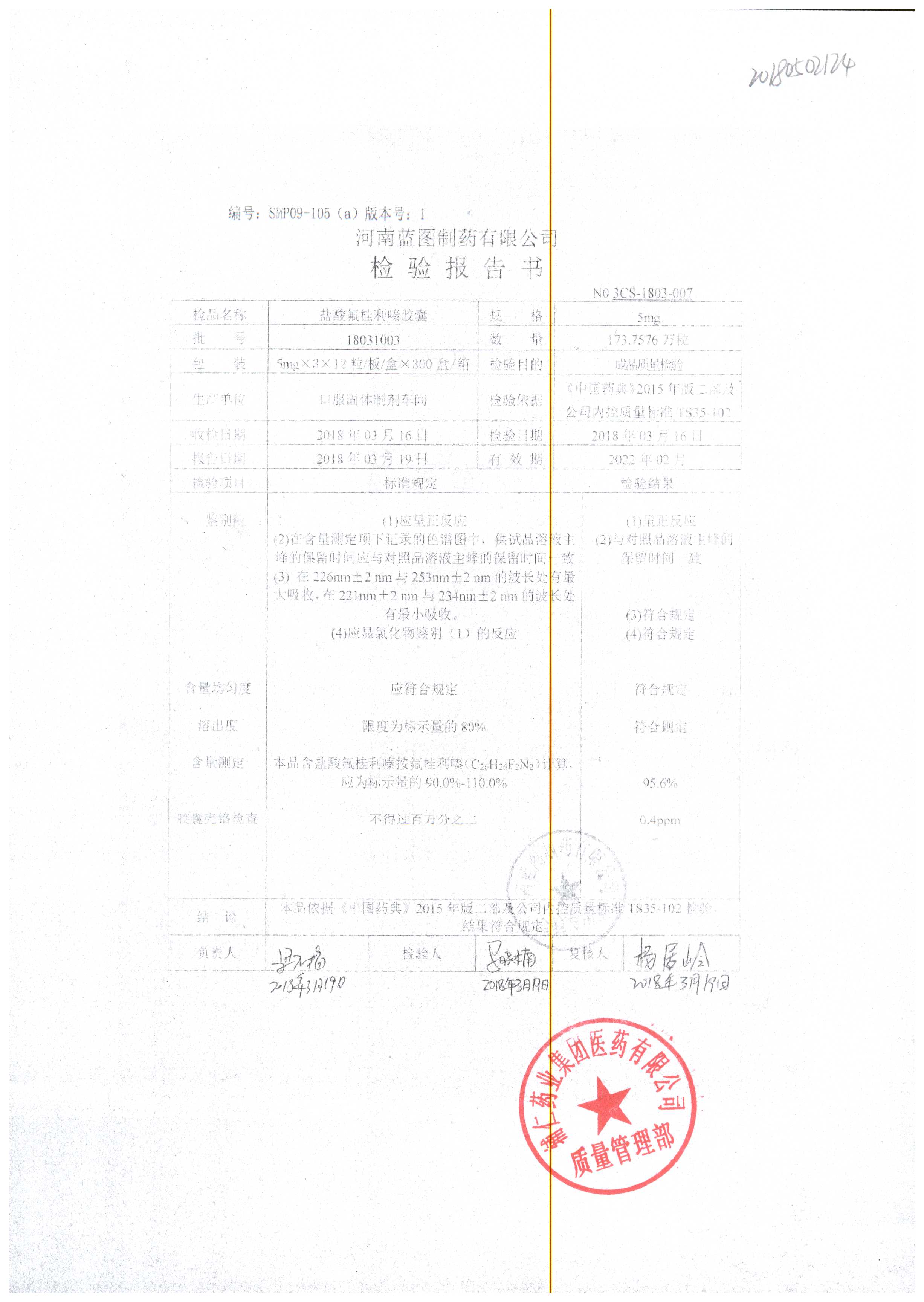 鹽酸氟桂利嗪膠囊 5mg*36粒 18030802 查看詳情