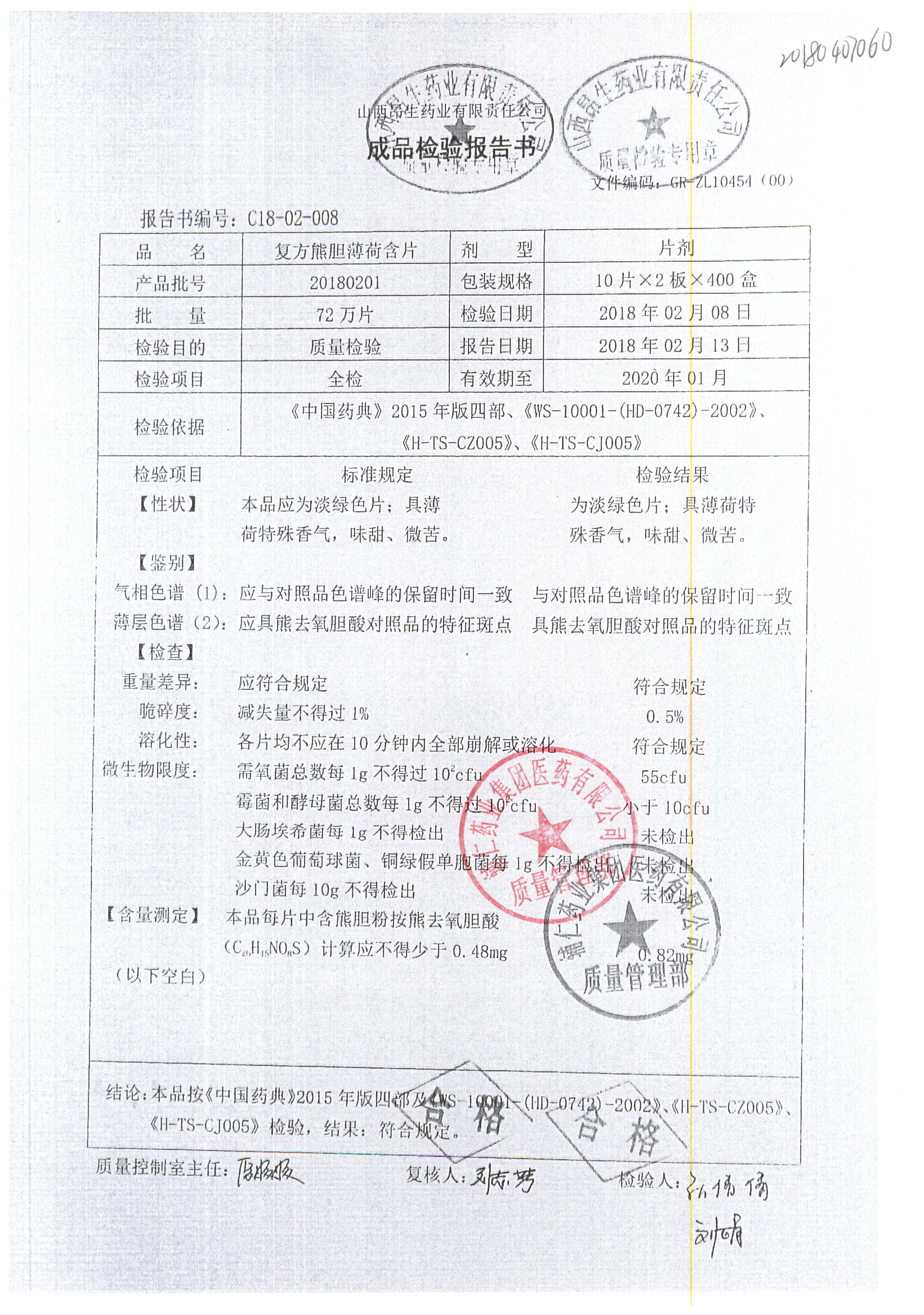 復(fù)方熊膽薄荷含片 20片 20180201 查看詳情