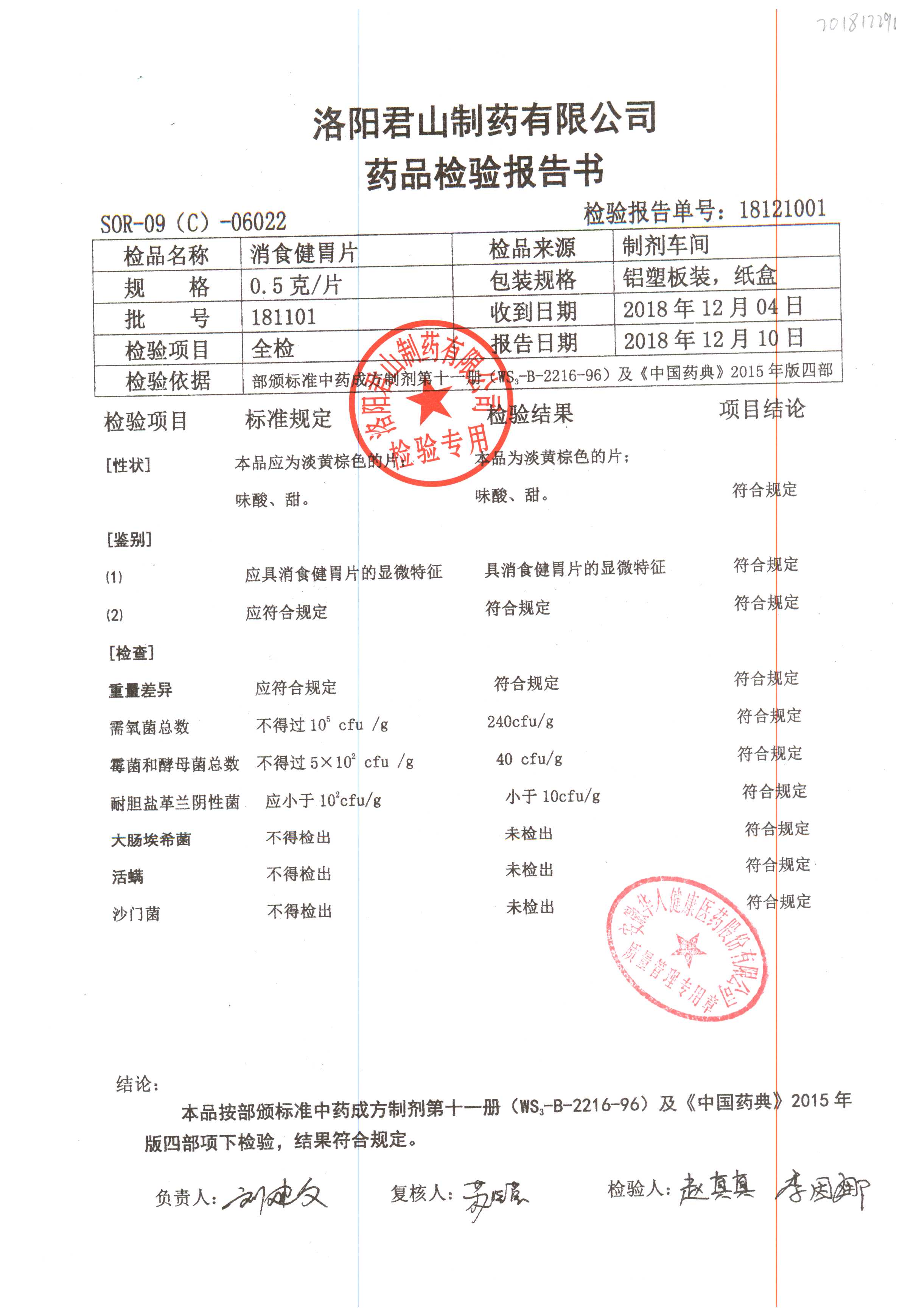 | 消食健胃片 | 0.5g | 181101 | 查看詳情 |