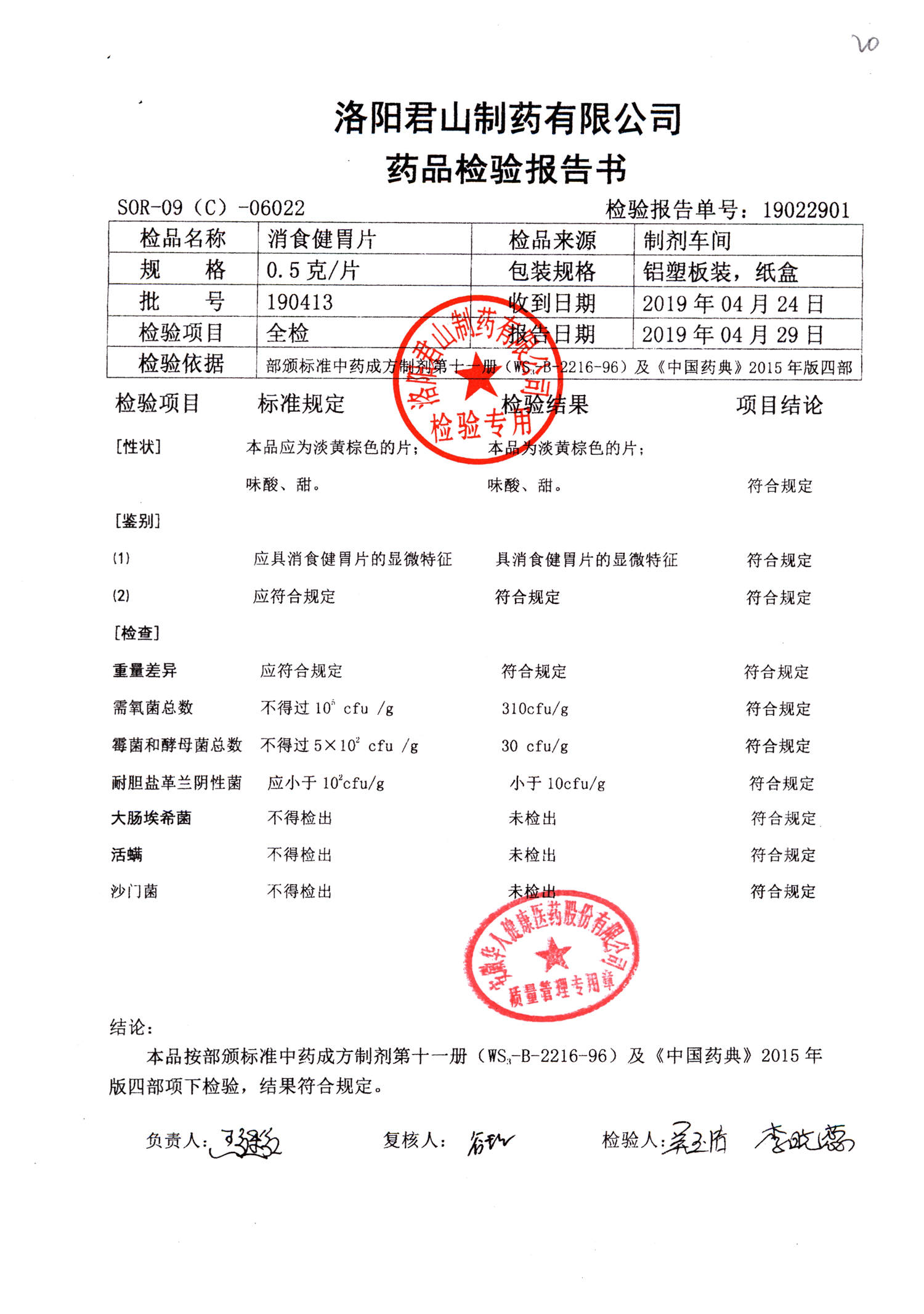 | 消食健胃片 | 0.5g | 190413 | 查看詳情 |