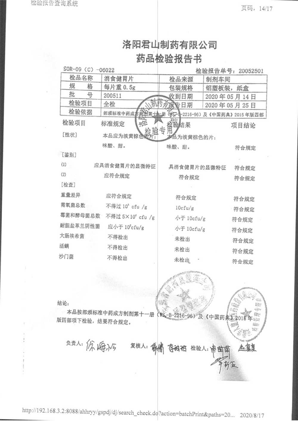 | 消食健胃片 | 0.5g | 170601 | 查看詳情 |