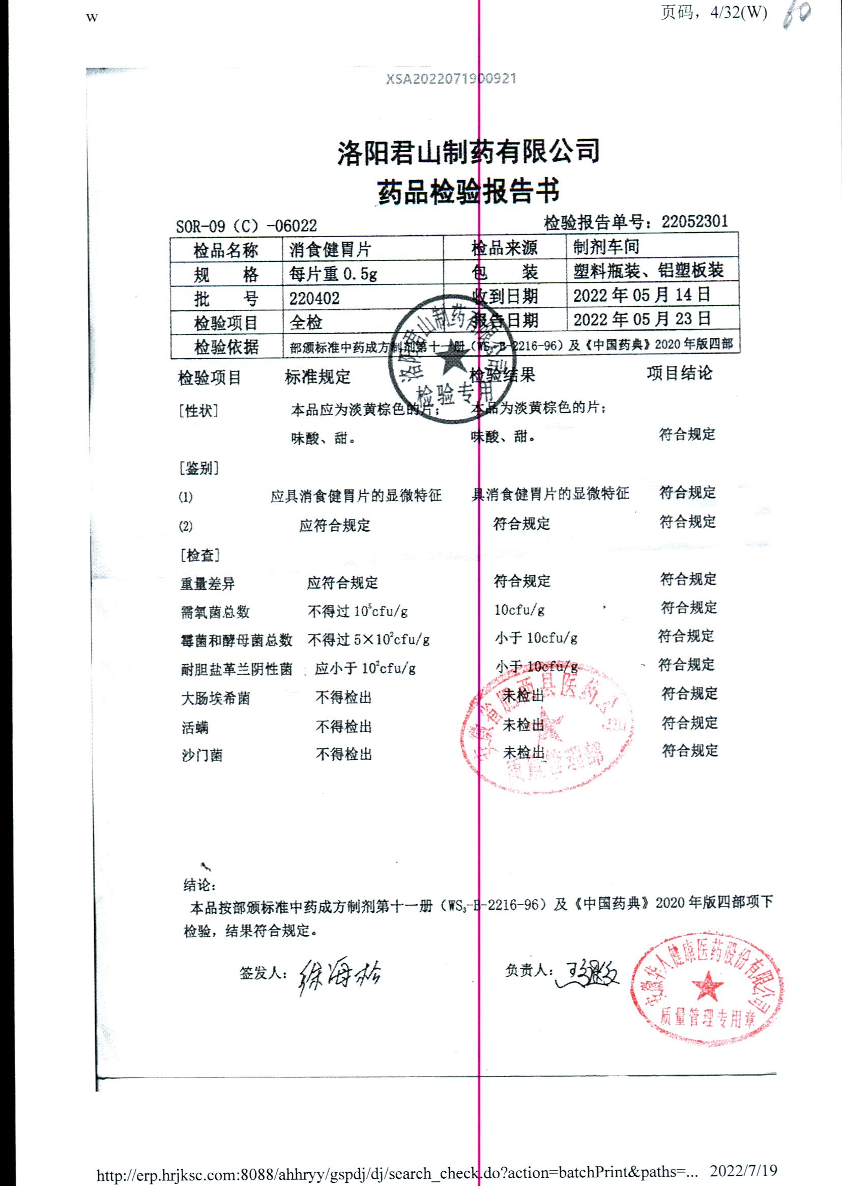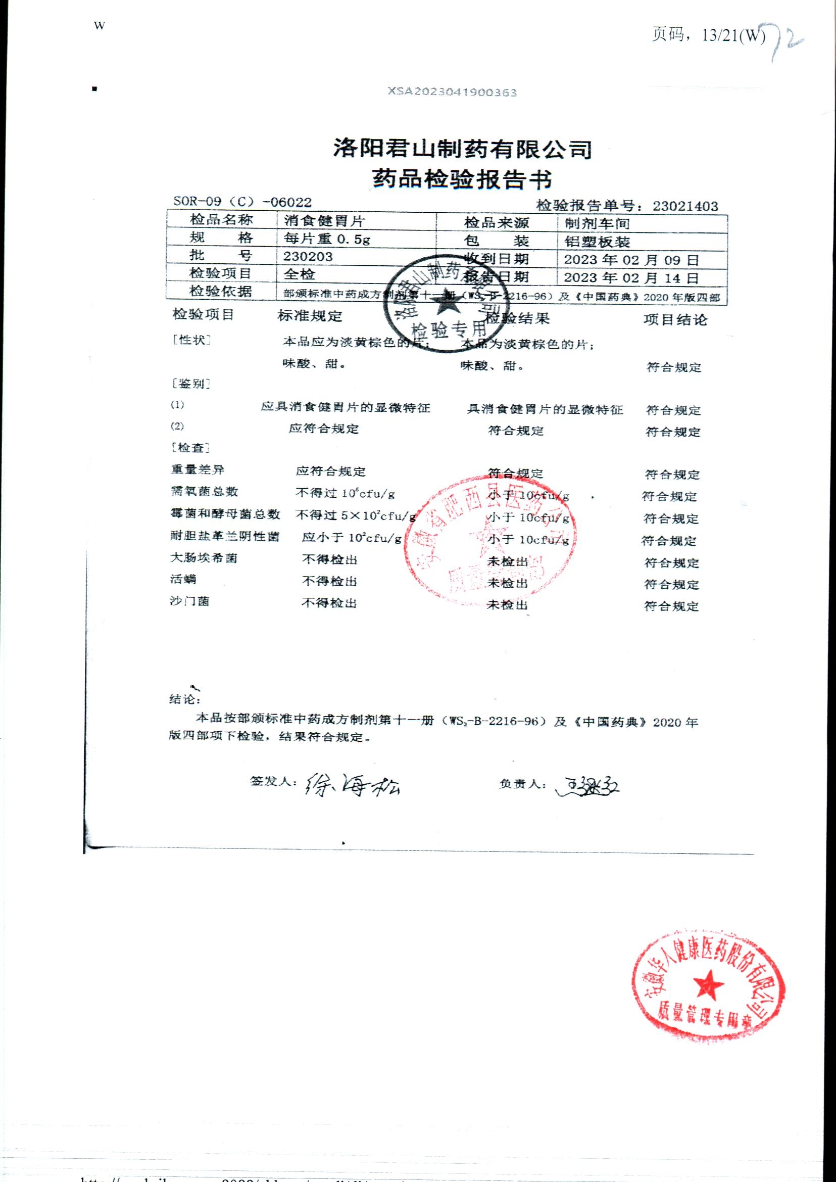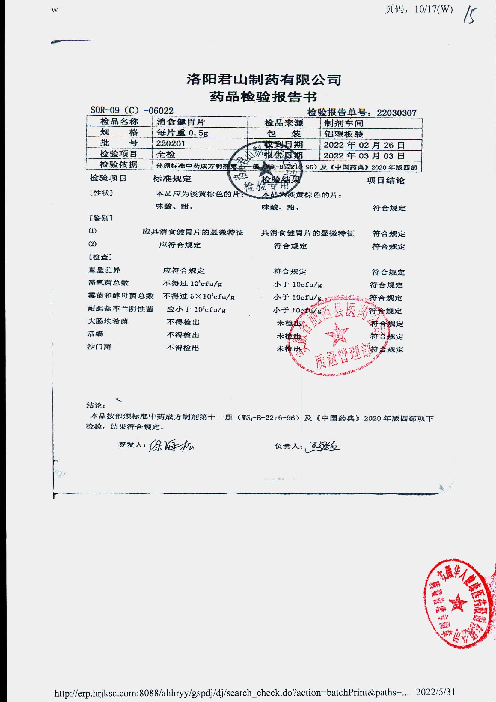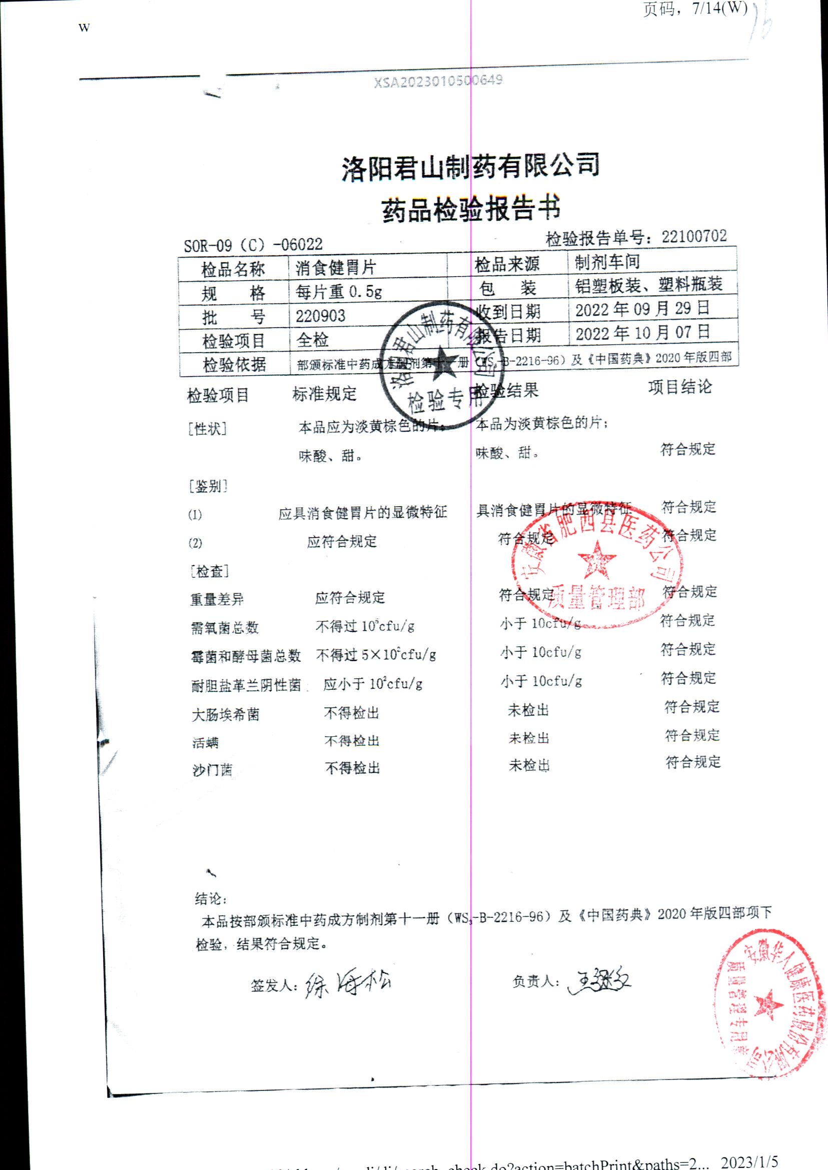 | 消食健胃片 | 0.5g | 220201 | 查看詳情 |