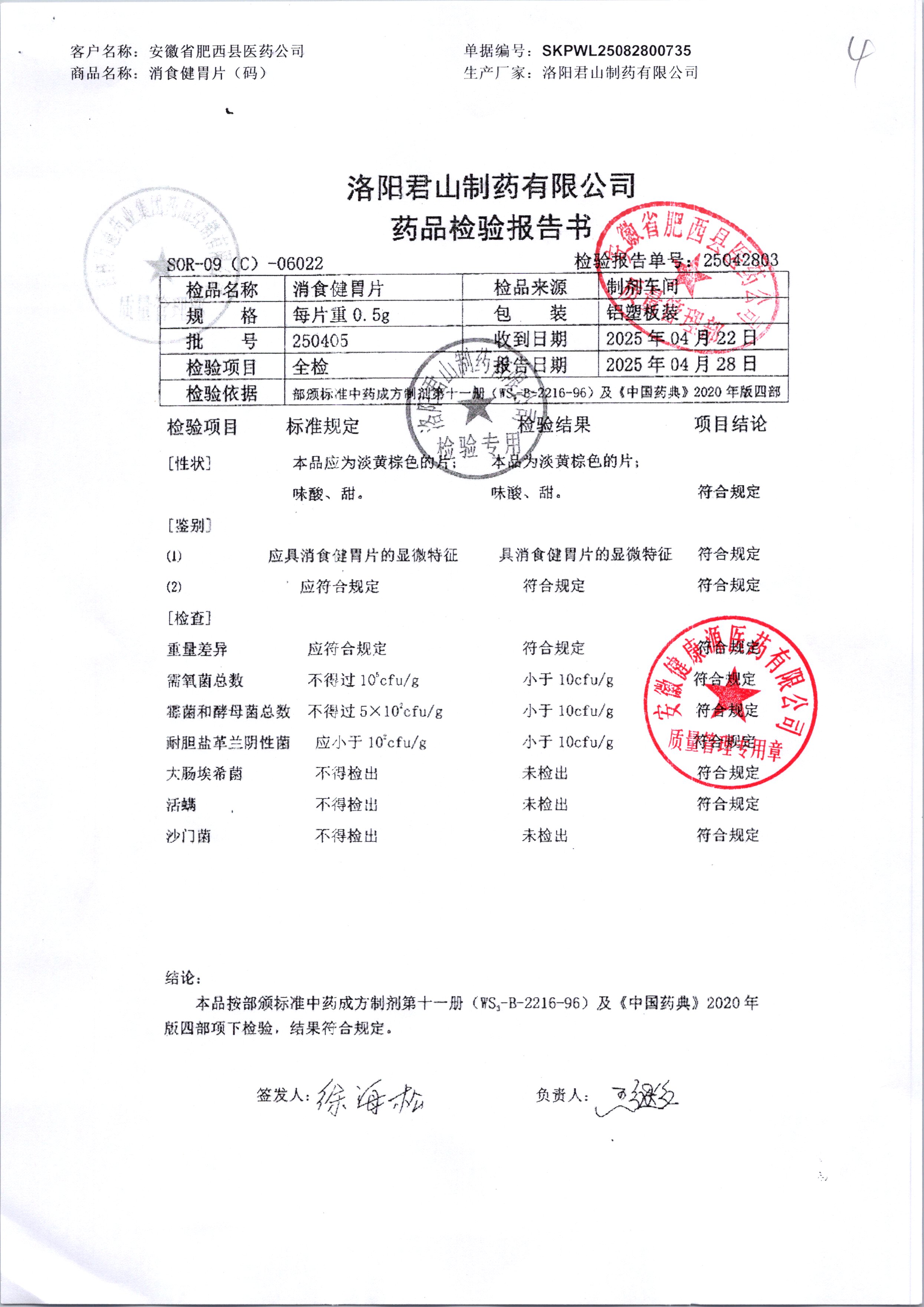 | 消食健胃片 | 0.5g | 250405 | 查看詳情 |