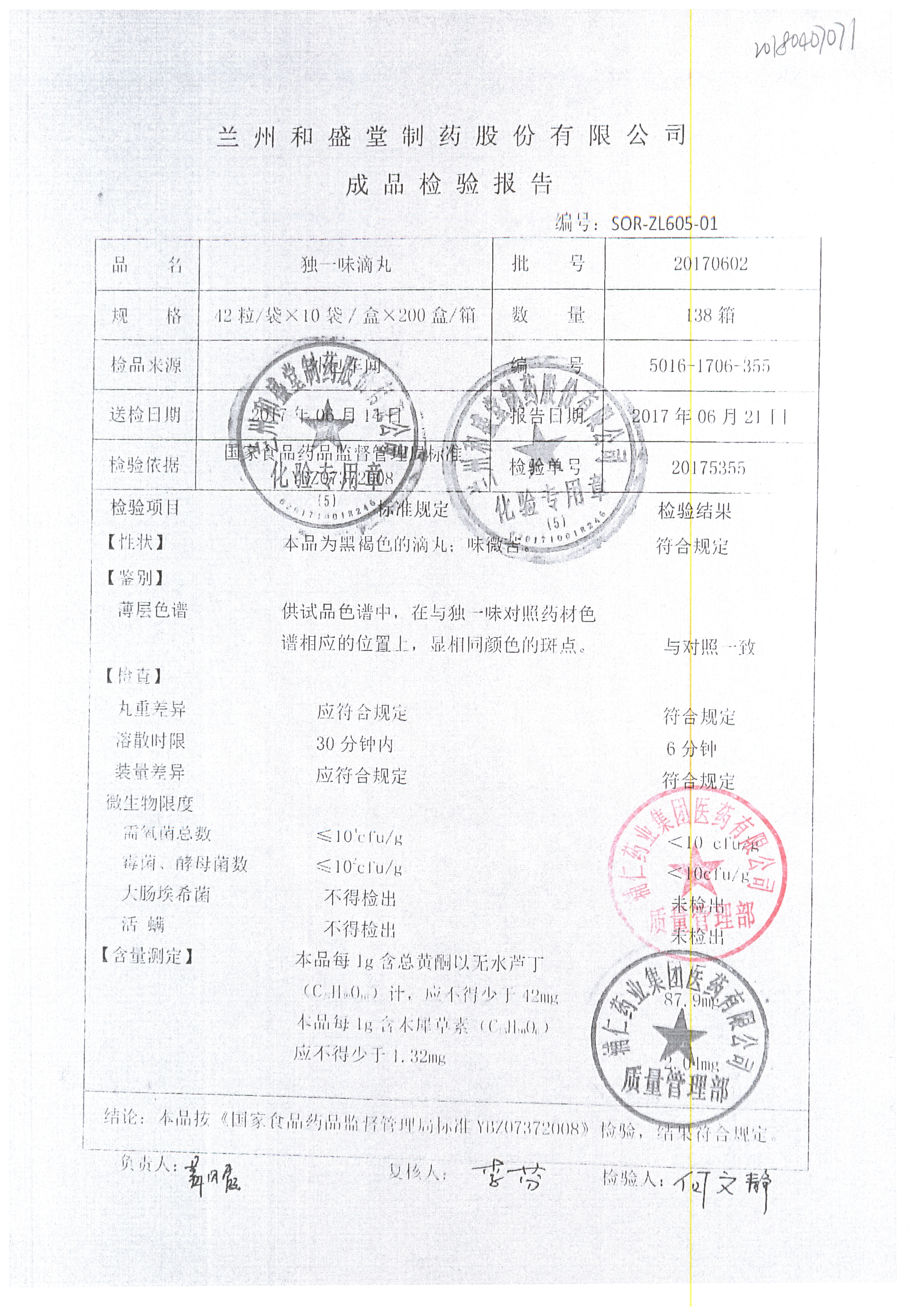 獨(dú)一味滴丸 12粒*10袋 20170602 查看詳情