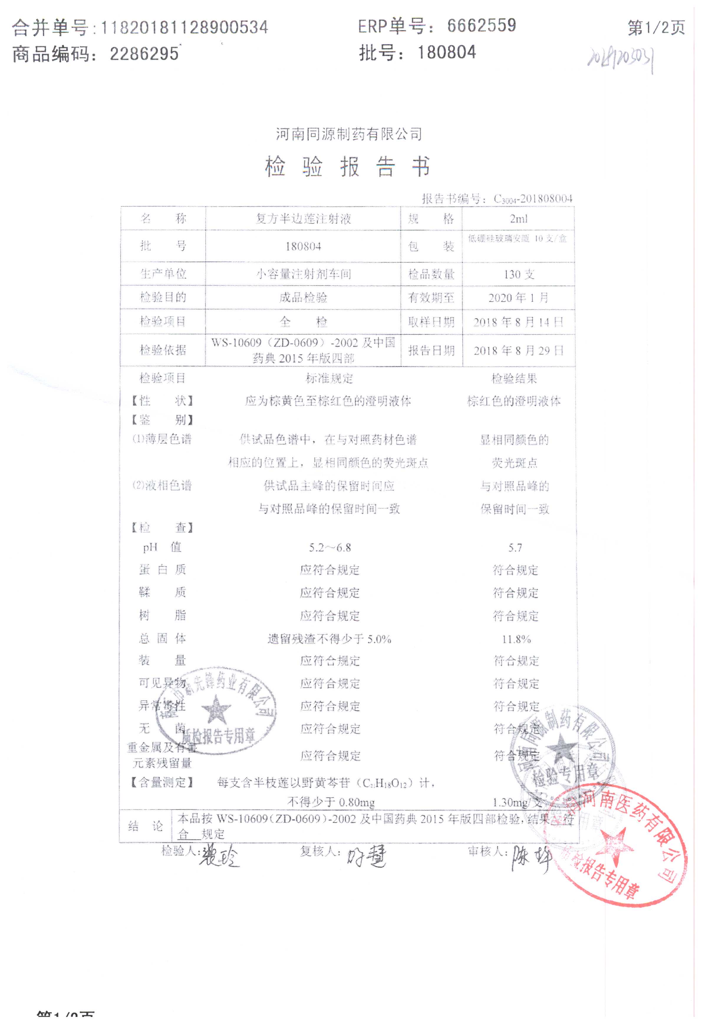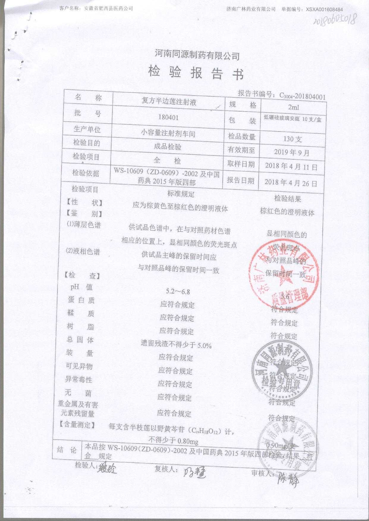 | 復方半邊蓮注射液 | 2ml | 180804 | 查看詳情 |