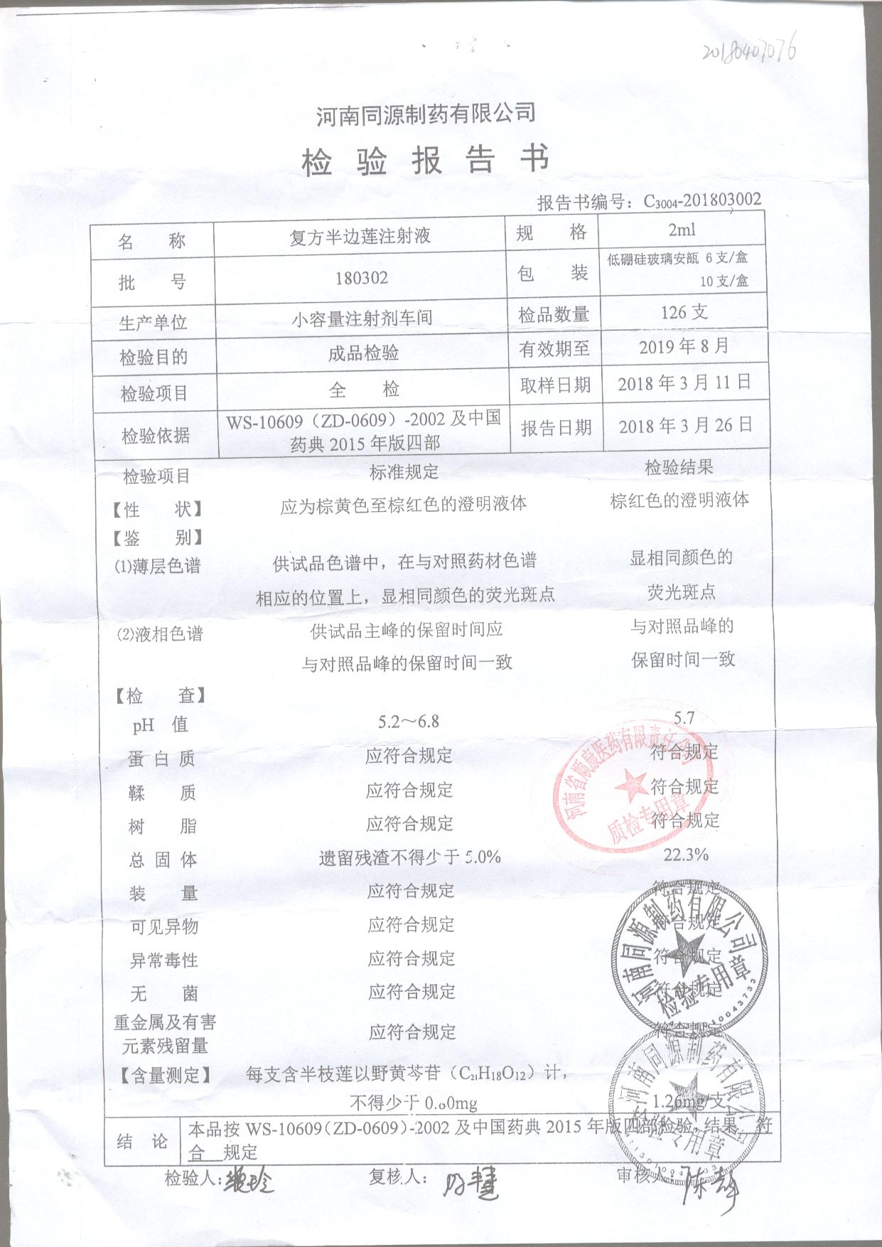 | 復方半邊蓮注射液 | 2ml | 180302 | 查看詳情 |