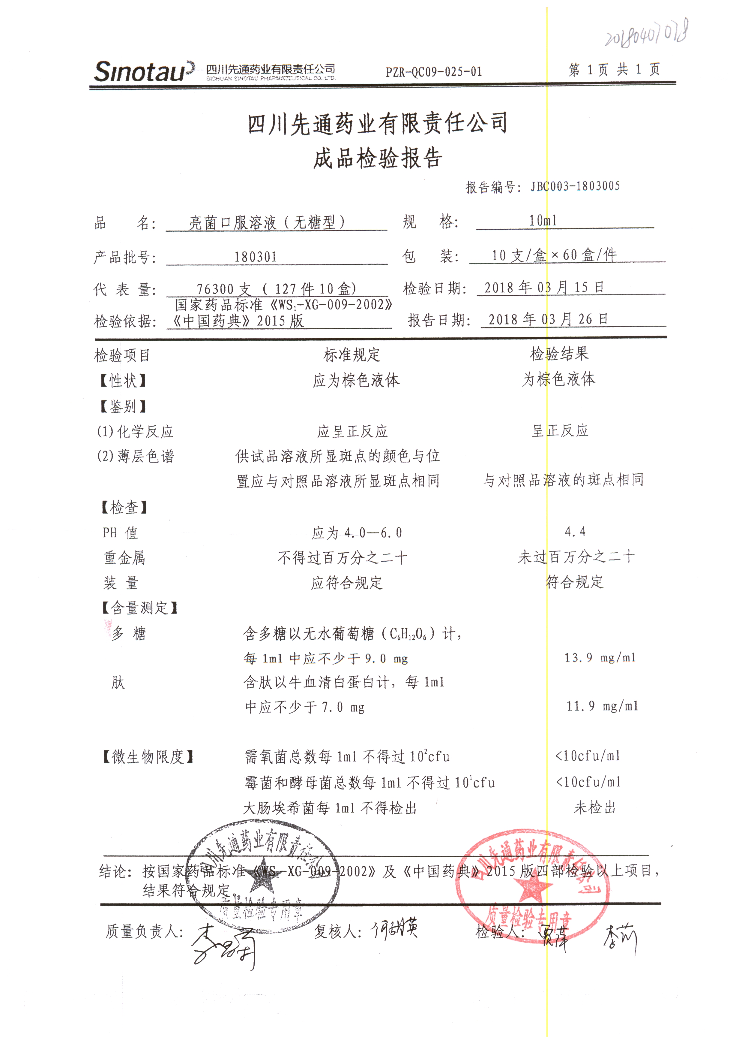 | 亮菌口服溶液 | 10ml*10支 | 180301 | 查看詳情 |