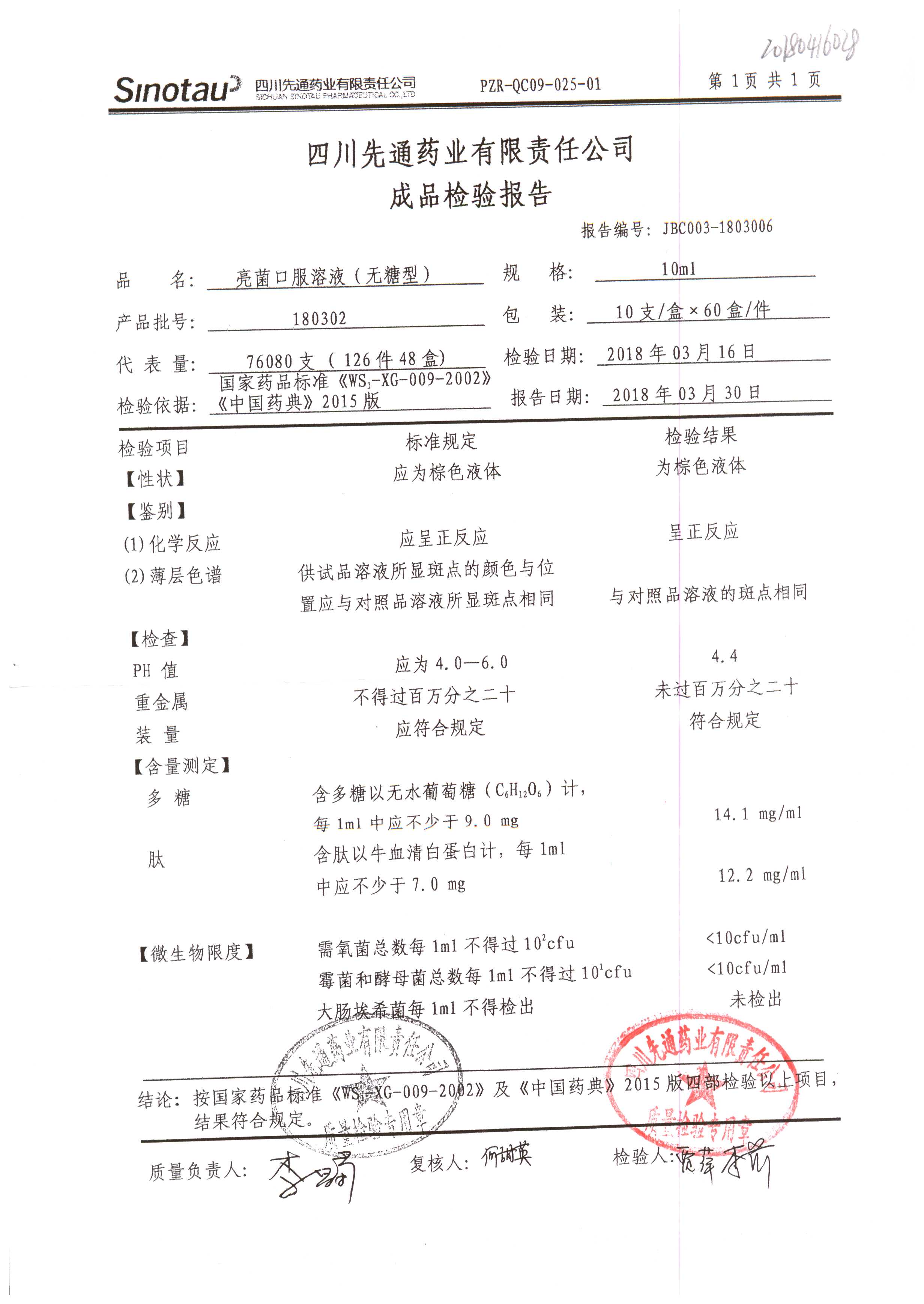 | 亮菌口服溶液 | 10ml*10支 | 180804 | 查看詳情 |