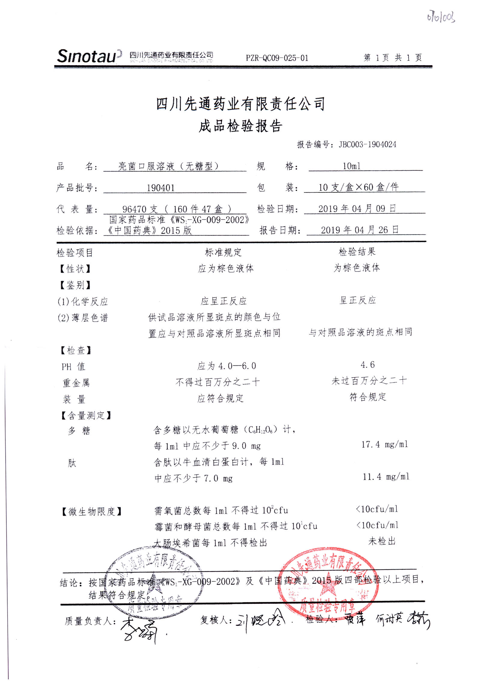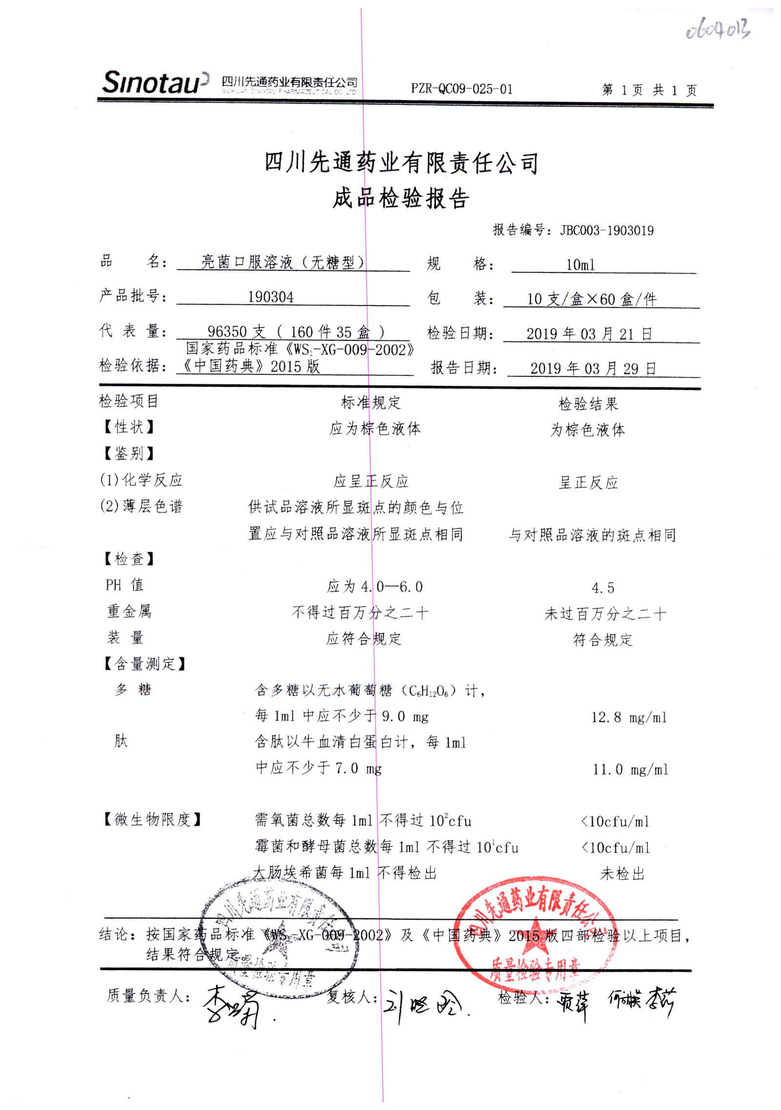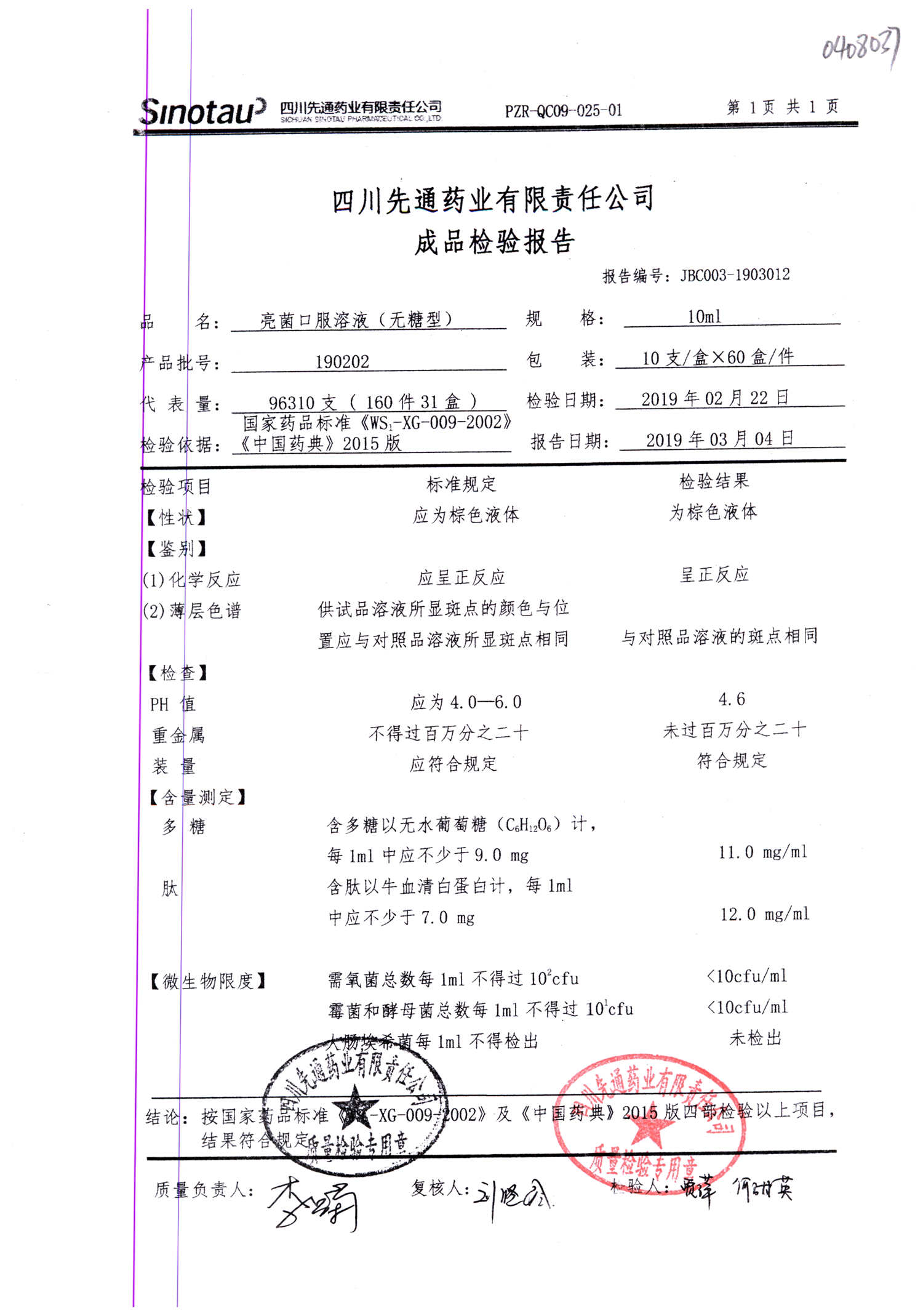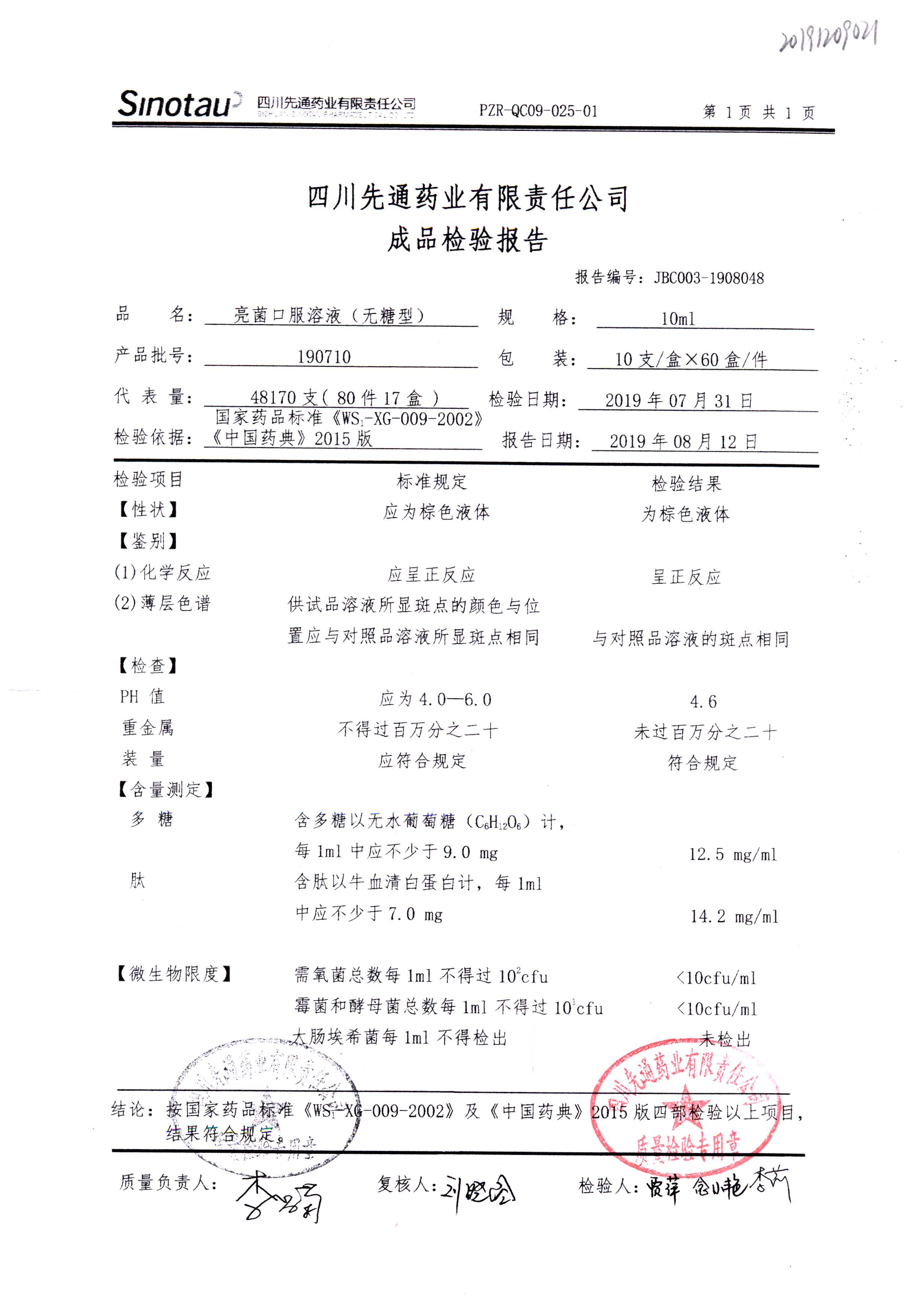 | 亮菌口服溶液 | 10ml*10支 | 190401 | 查看詳情 |