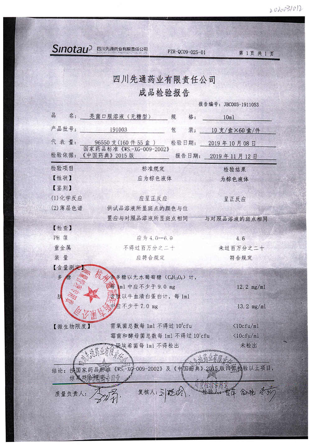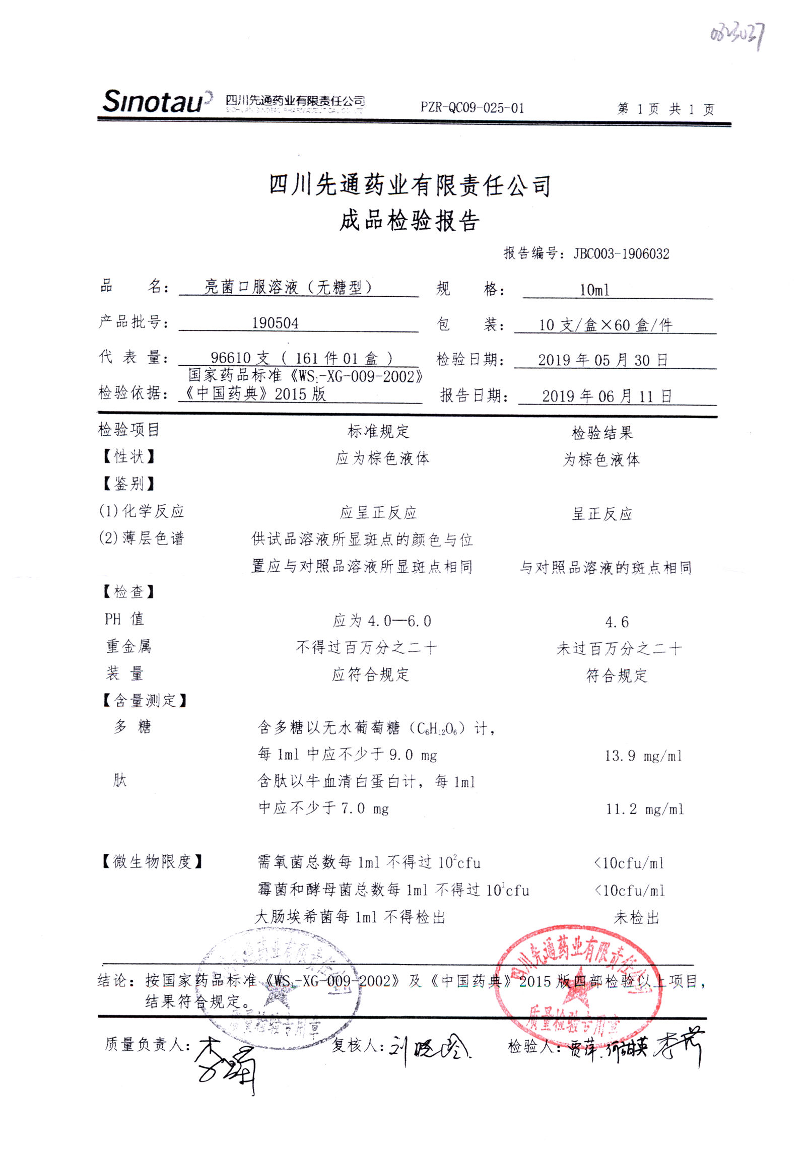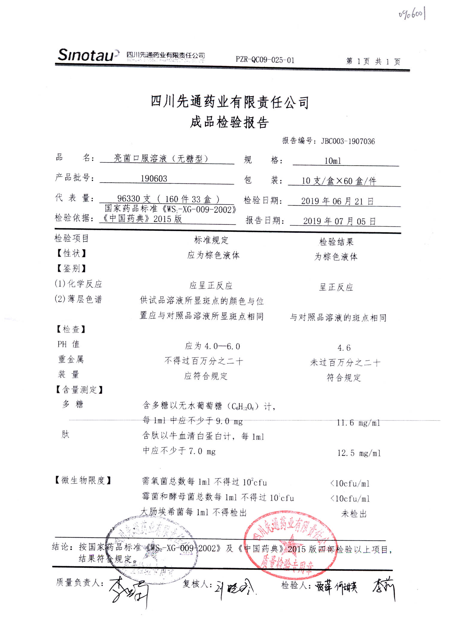 | 亮菌口服溶液 | 10ml*10支 | 190603 | 查看詳情 |