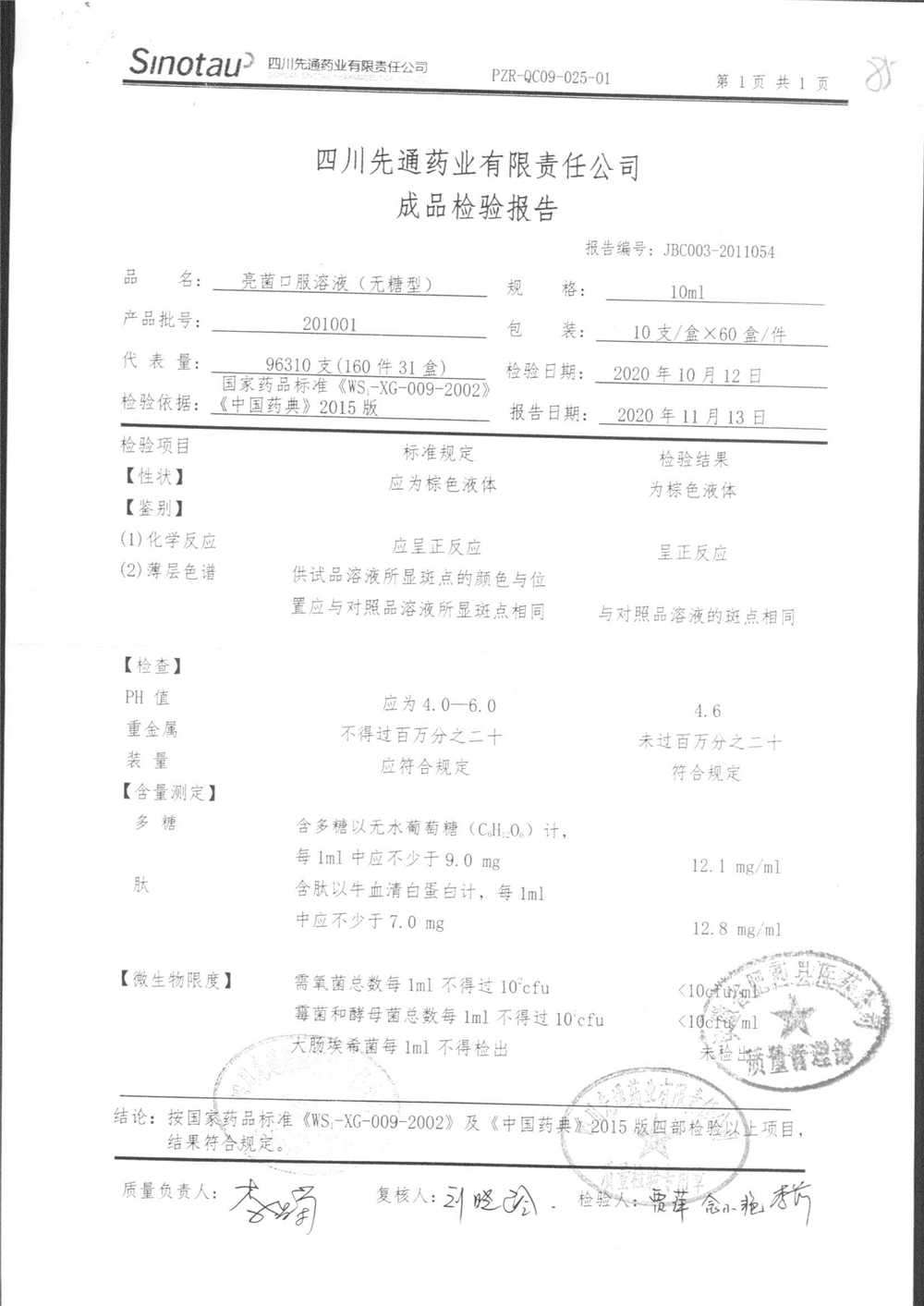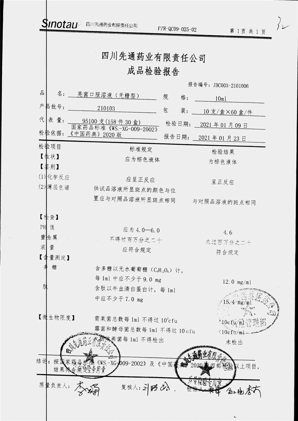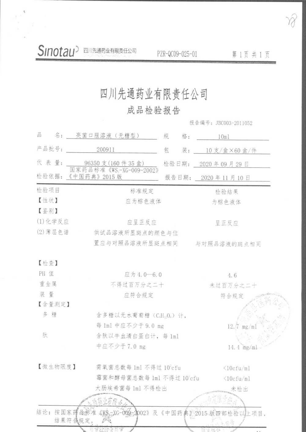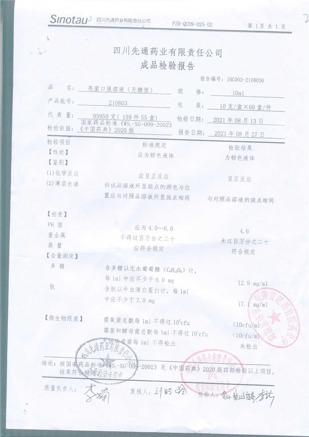 | 亮菌口服溶液 | 10ml*10支 | 210903 | 查看詳情 |