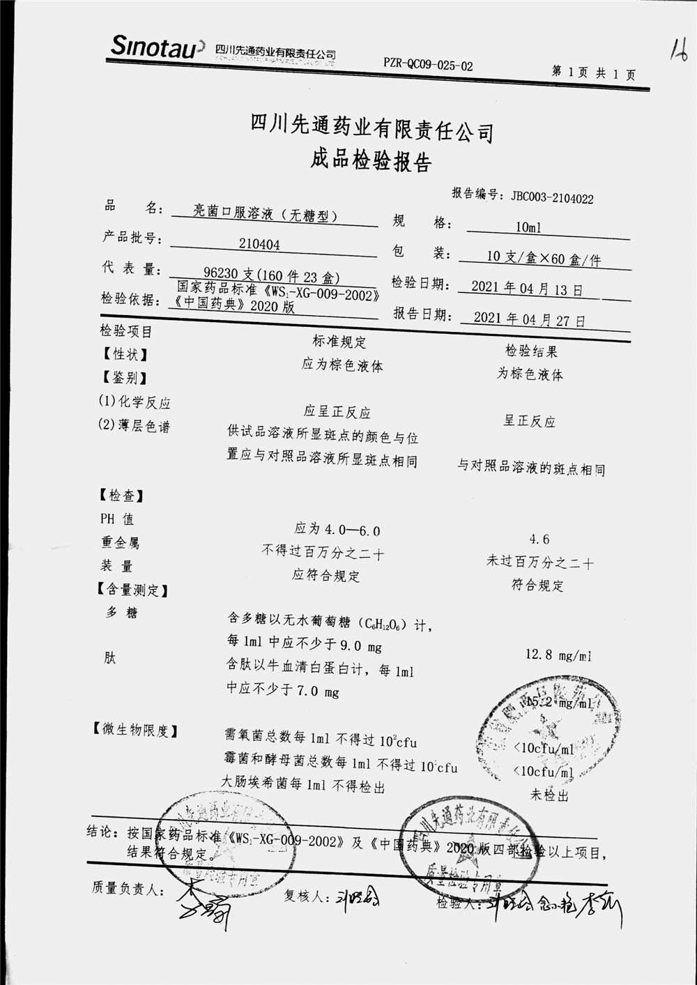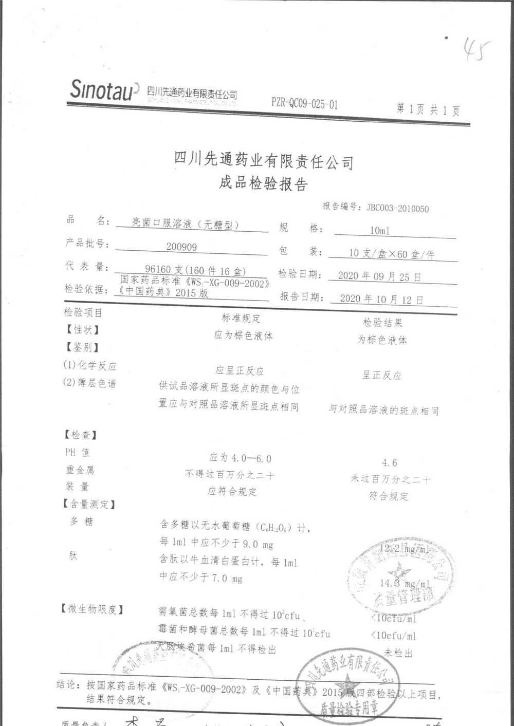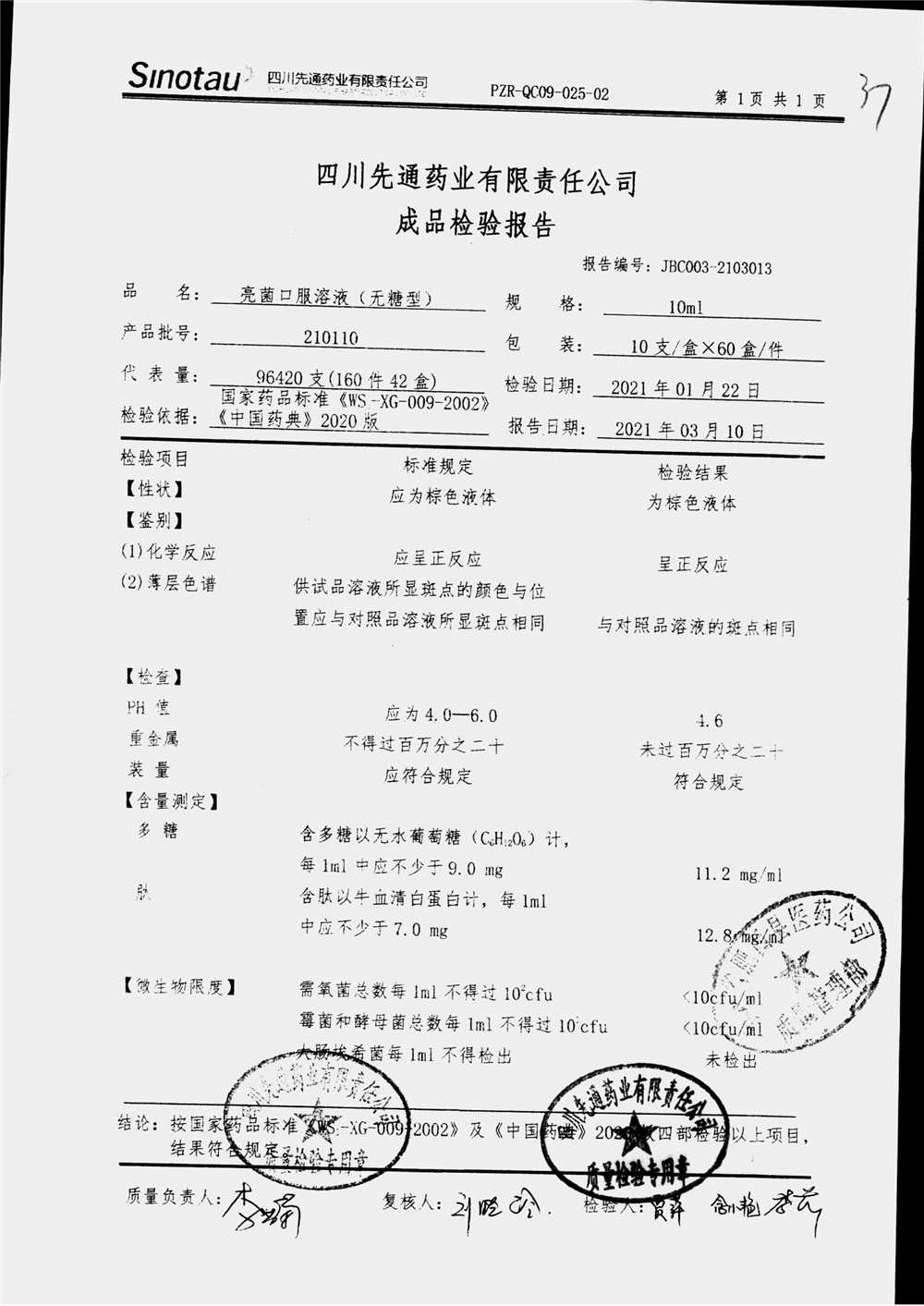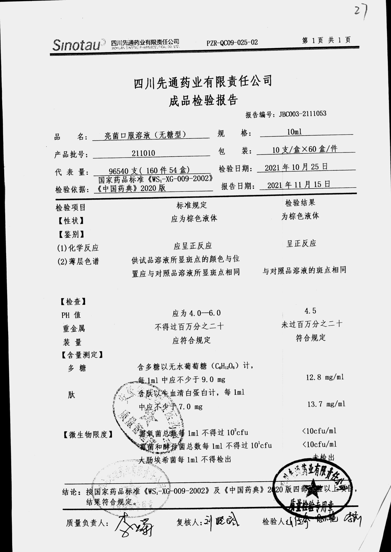 | 亮菌口服溶液 | 10ml*10支 | 210903 | 查看詳情 |