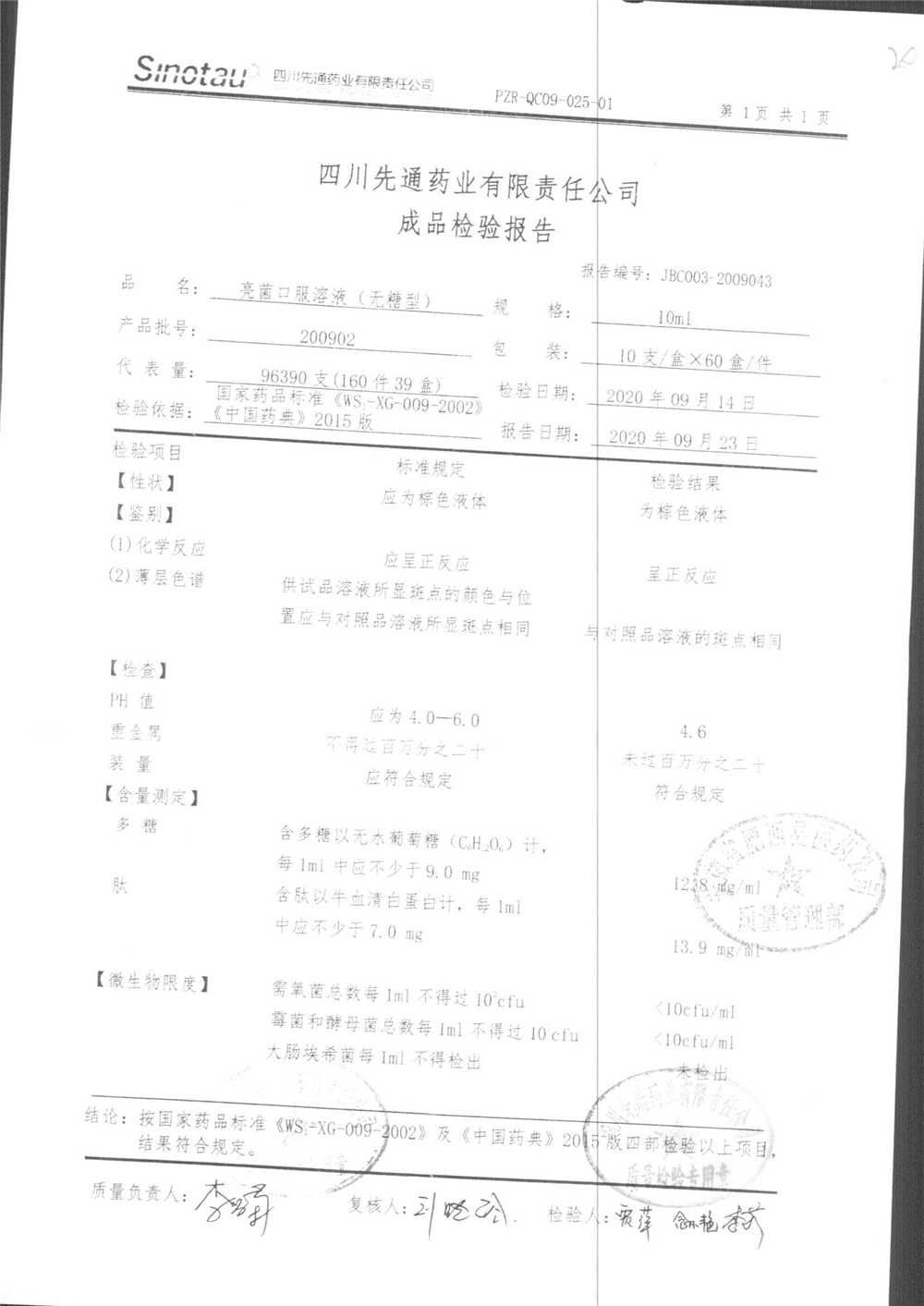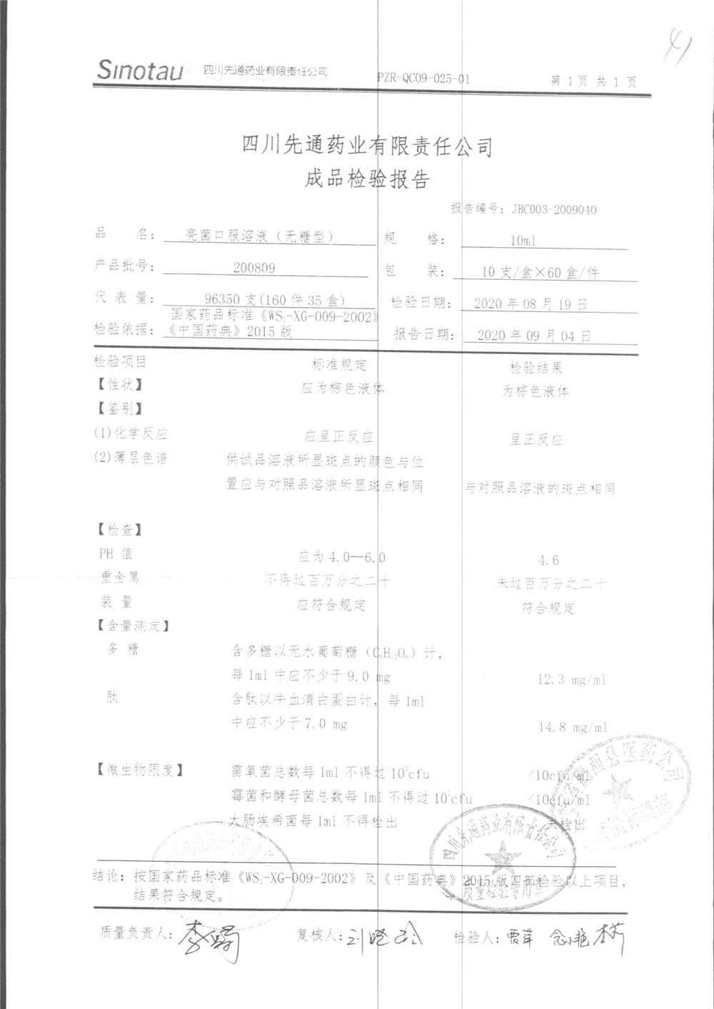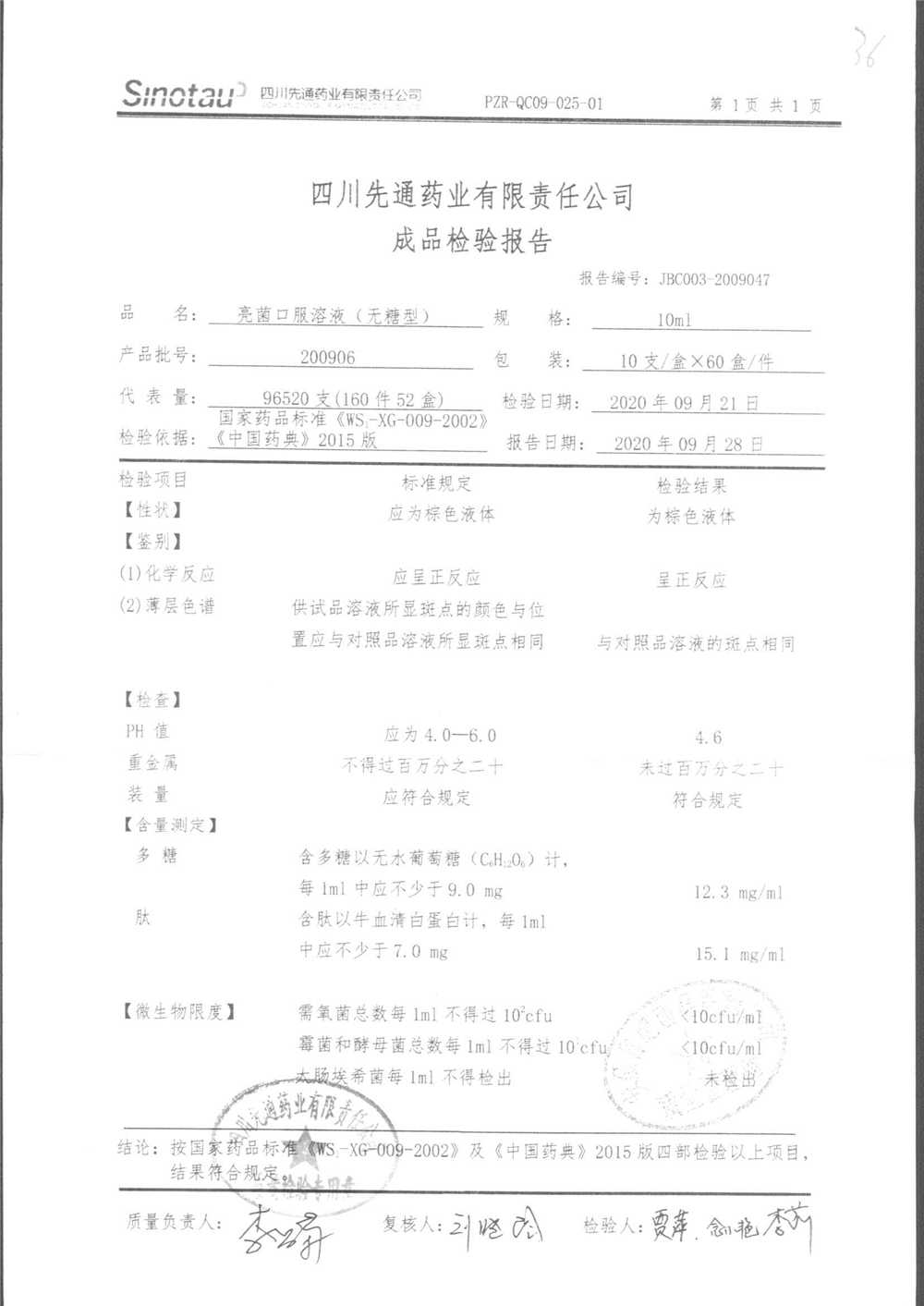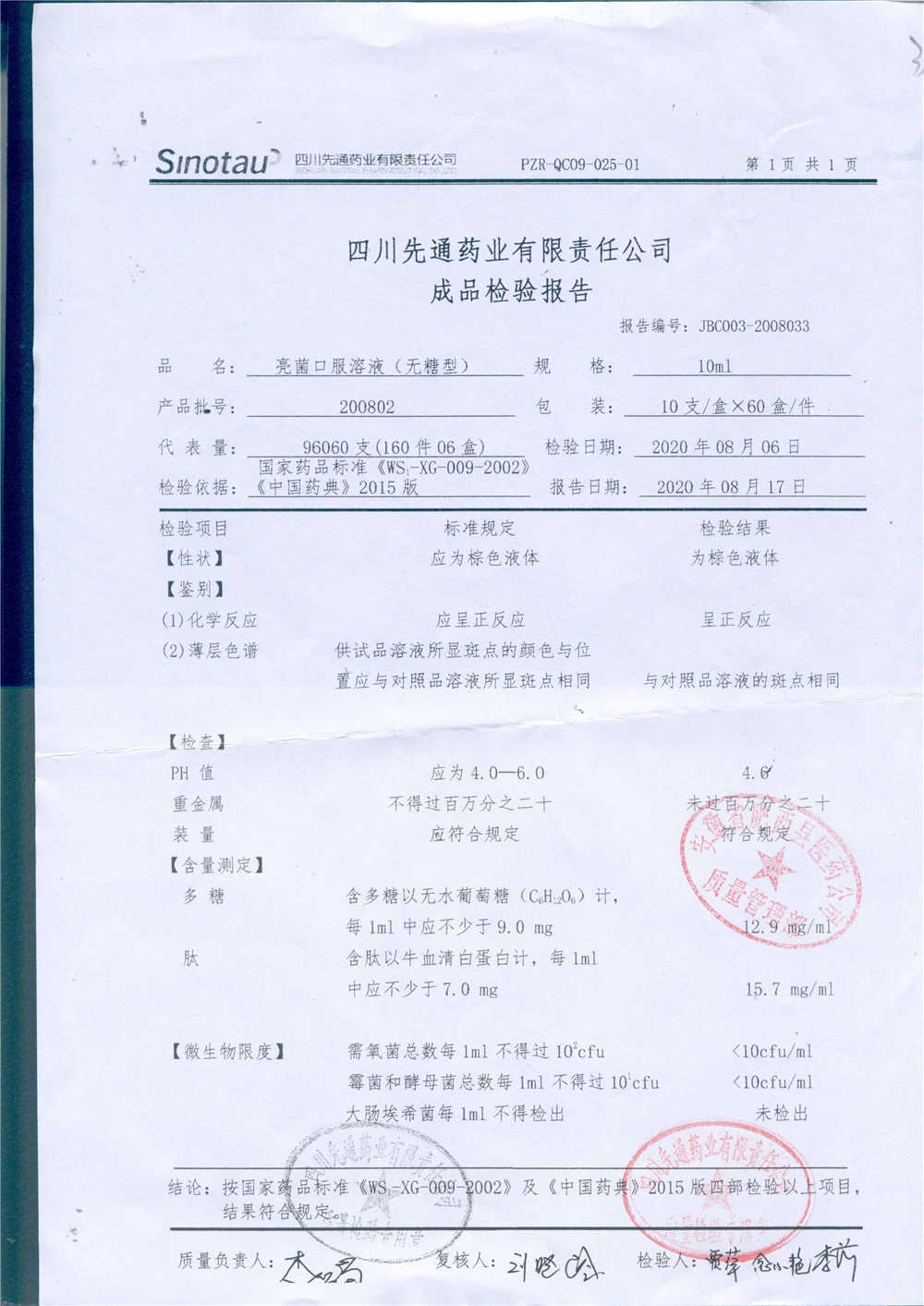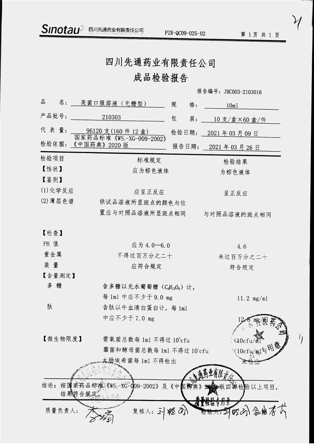 | 亮菌口服溶液 | 10ml*10支 | 210903 | 查看詳情 |