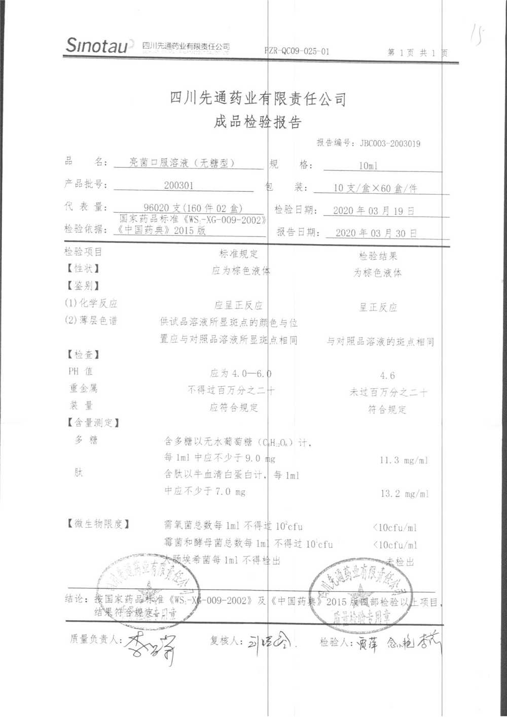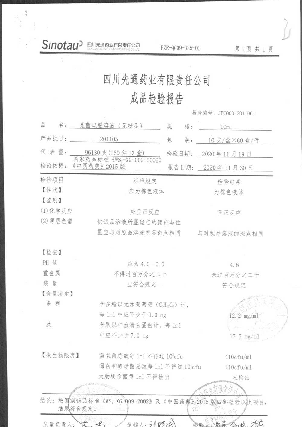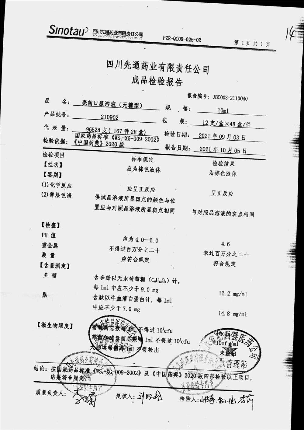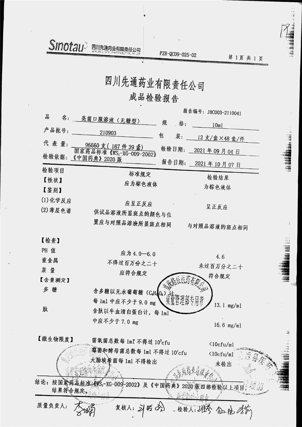 | 亮菌口服溶液 | 10ml*10支 | 210903 | 查看詳情 |