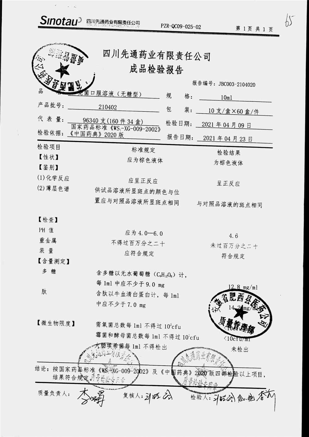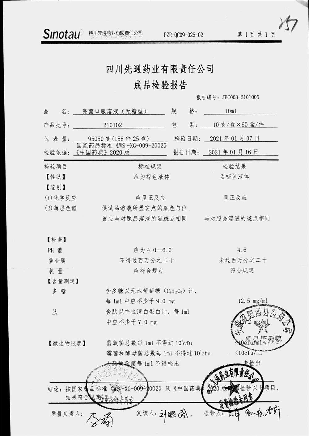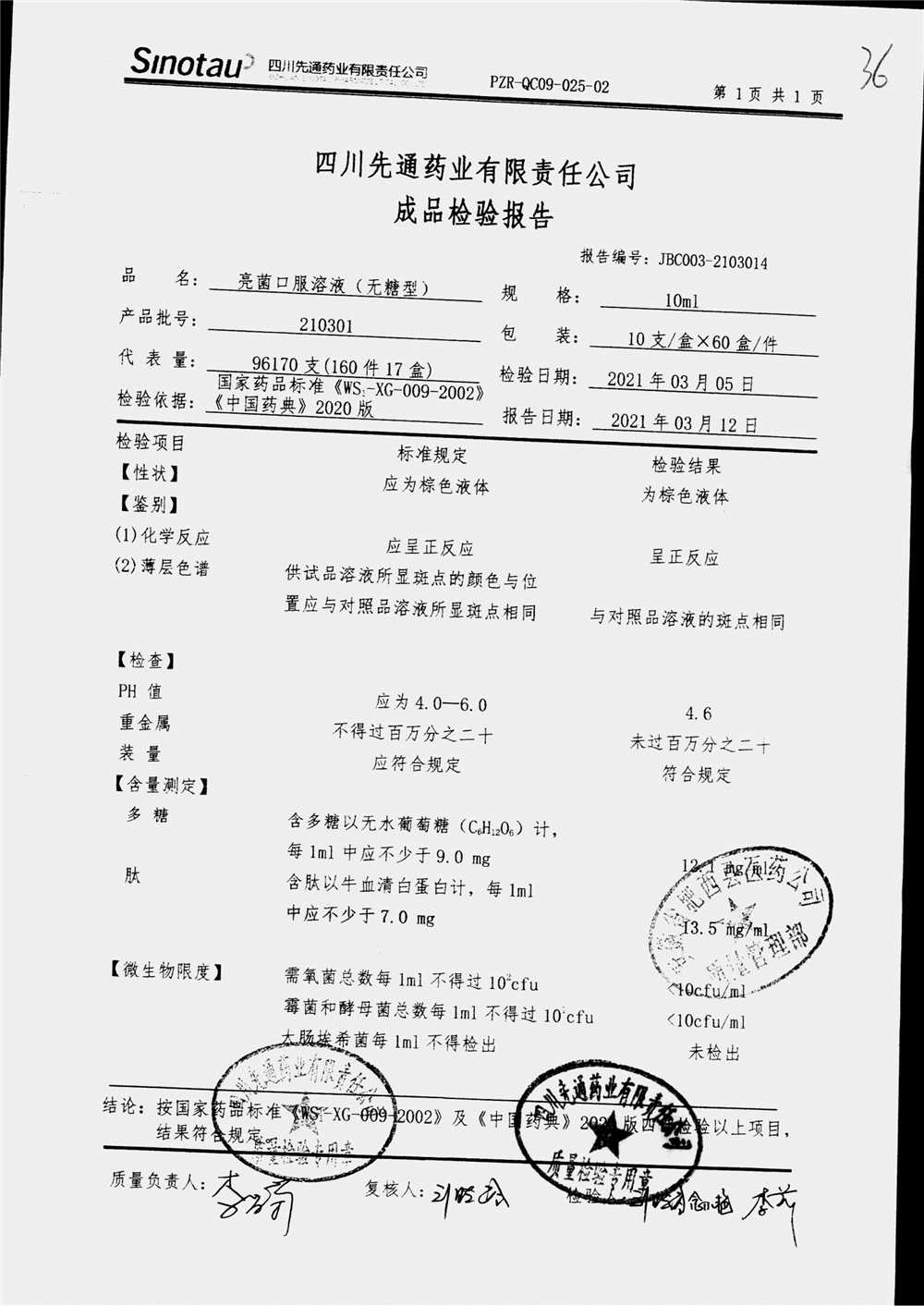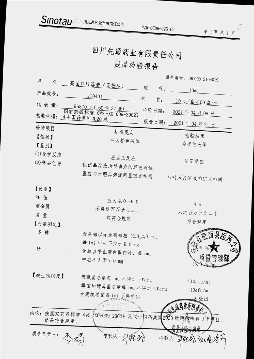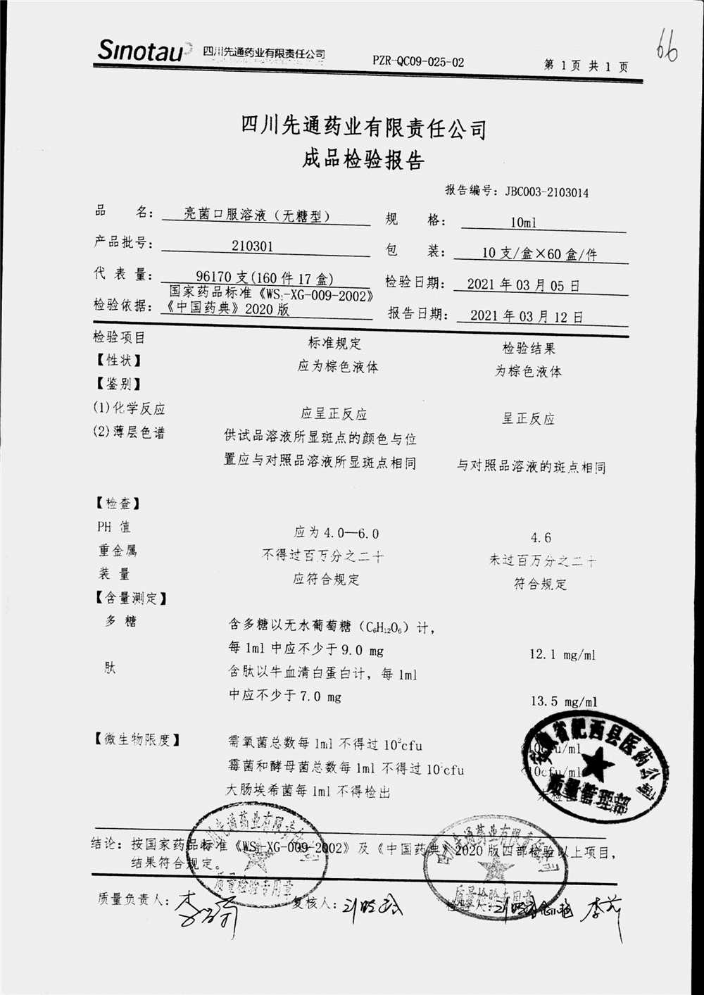 | 亮菌口服溶液 | 10ml*10支 | 210401 | 查看詳情 |