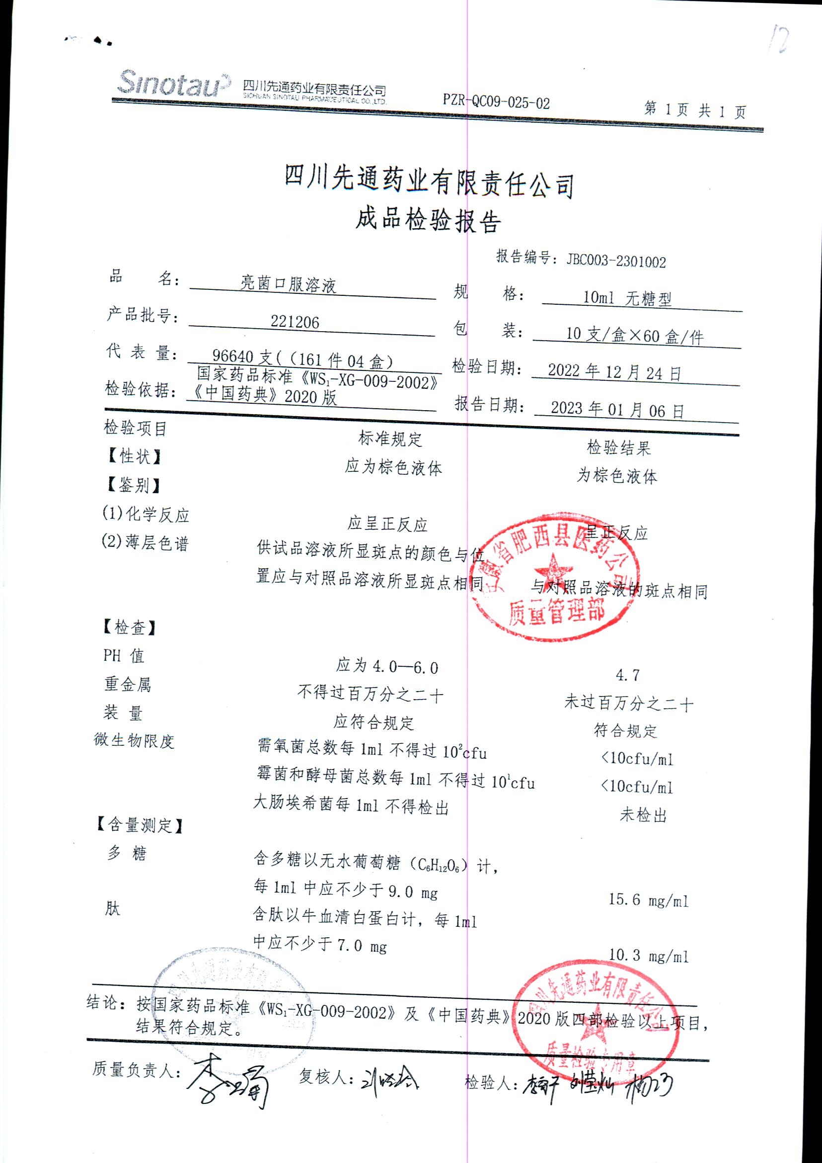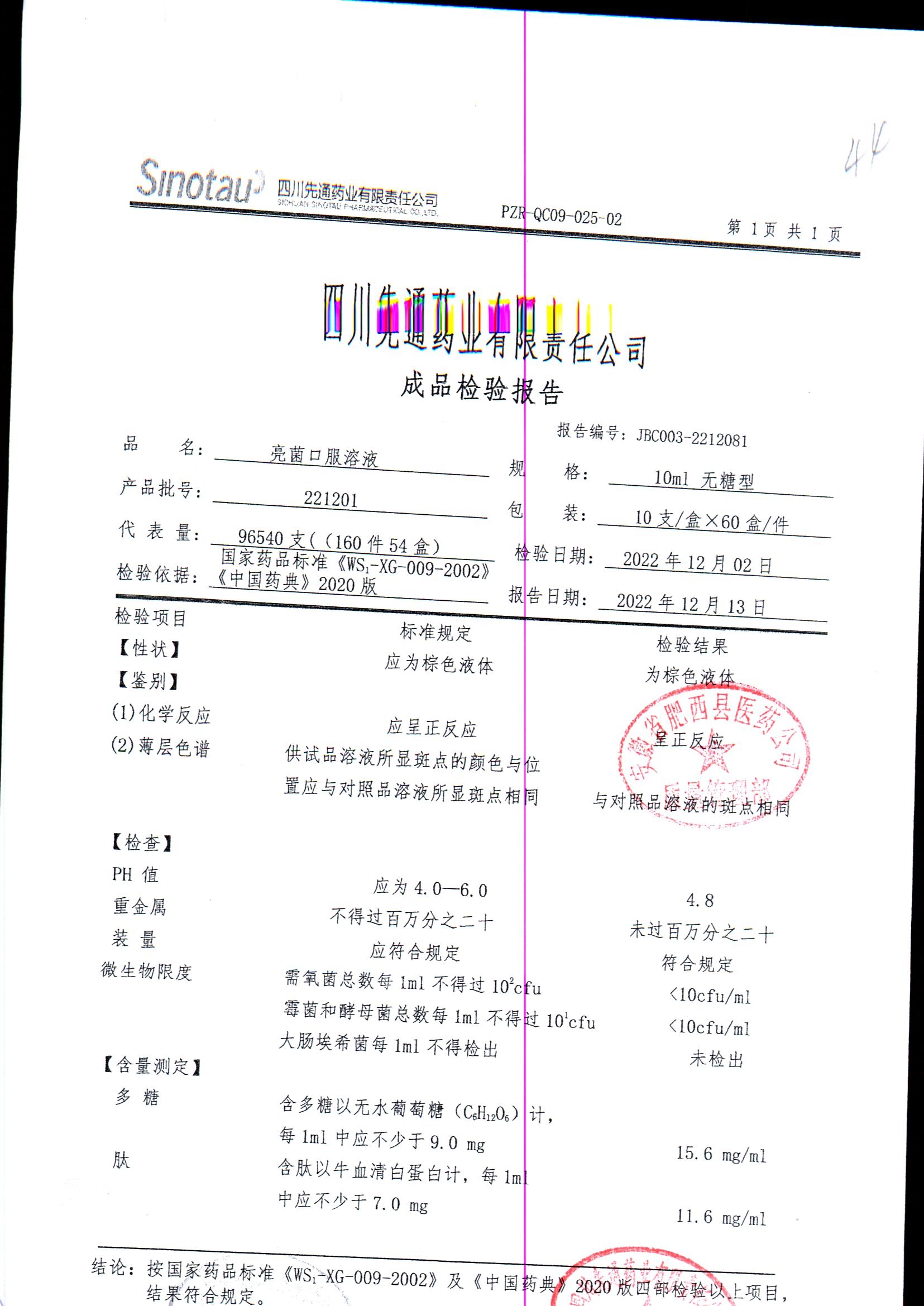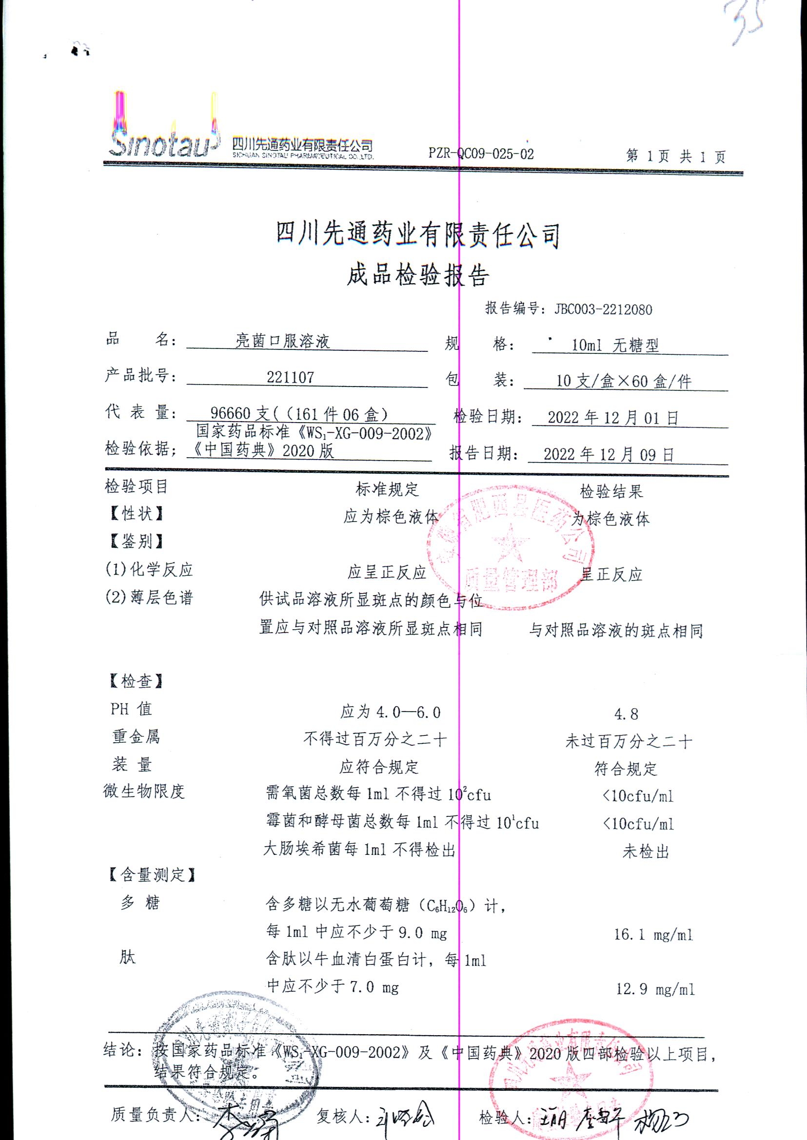 | 亮菌口服溶液 | 10ml*10支 | 220807 | 查看詳情 |