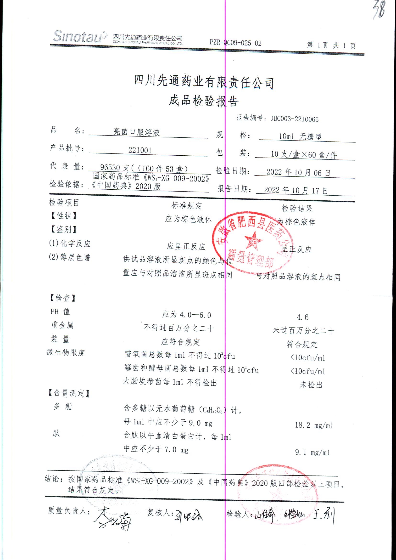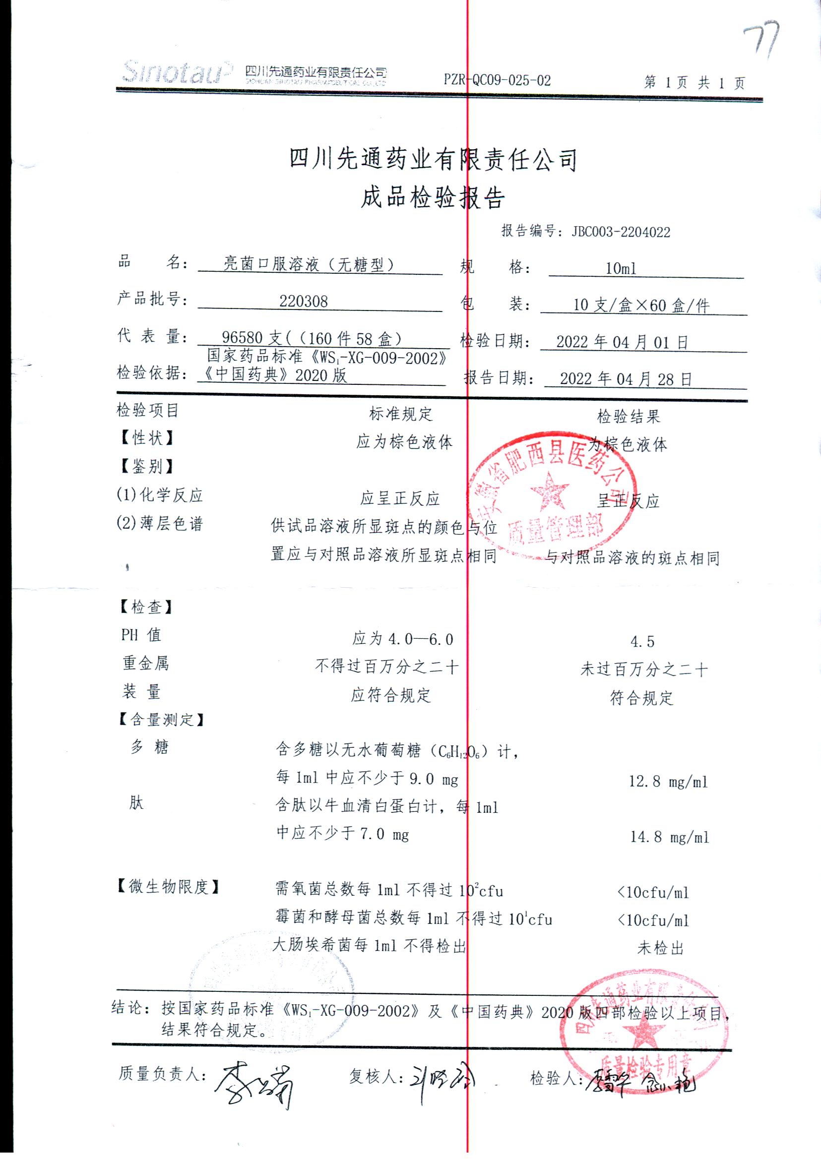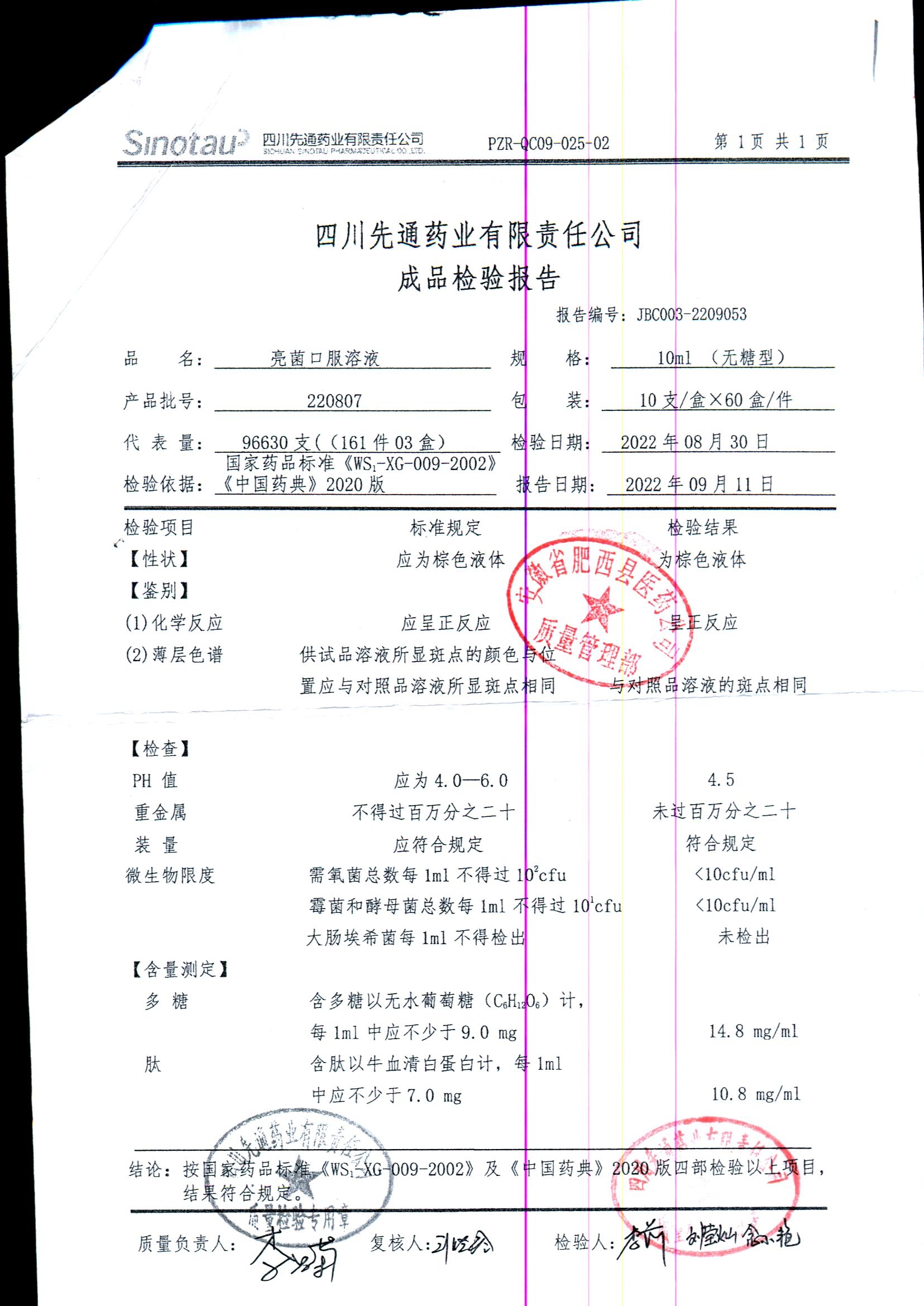 | 亮菌口服溶液 | 10ml*10支 | 220807 | 查看詳情 |
