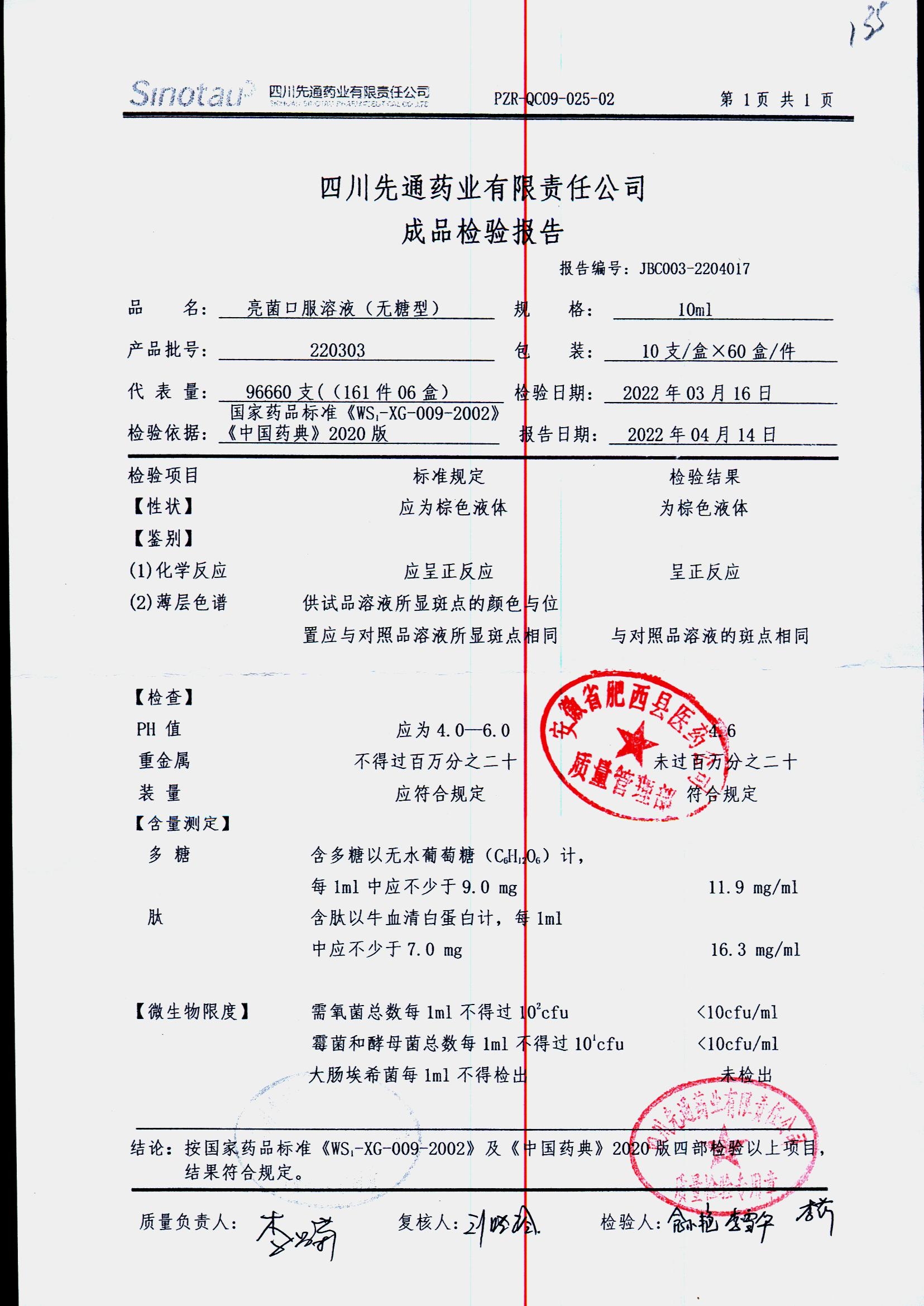 | 亮菌口服溶液 | 10ml*10支 | 220303 | 查看詳情 |